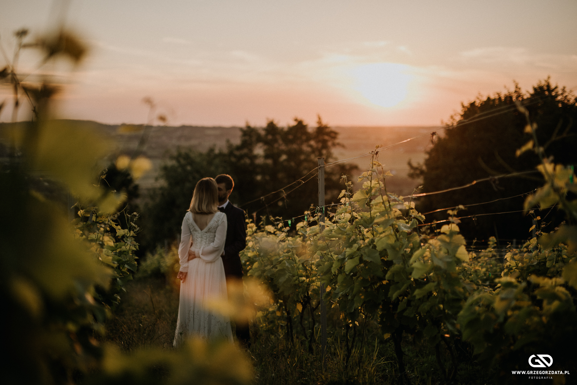 Wesele to jednak nie był koniec mojej przygody z Zuzanną i Mikołajem, bo kilkanaście dni później wyskoczyliśmy do romantycznej winnicy na kolejną sesję. Zachodzące słońce, wspaniałe otoczenie, pełna miłości para – trudno o bardziej idealne warunki do pracy!