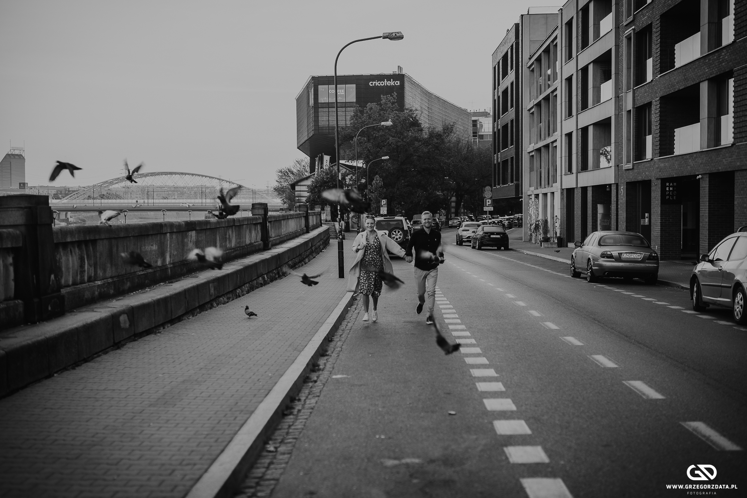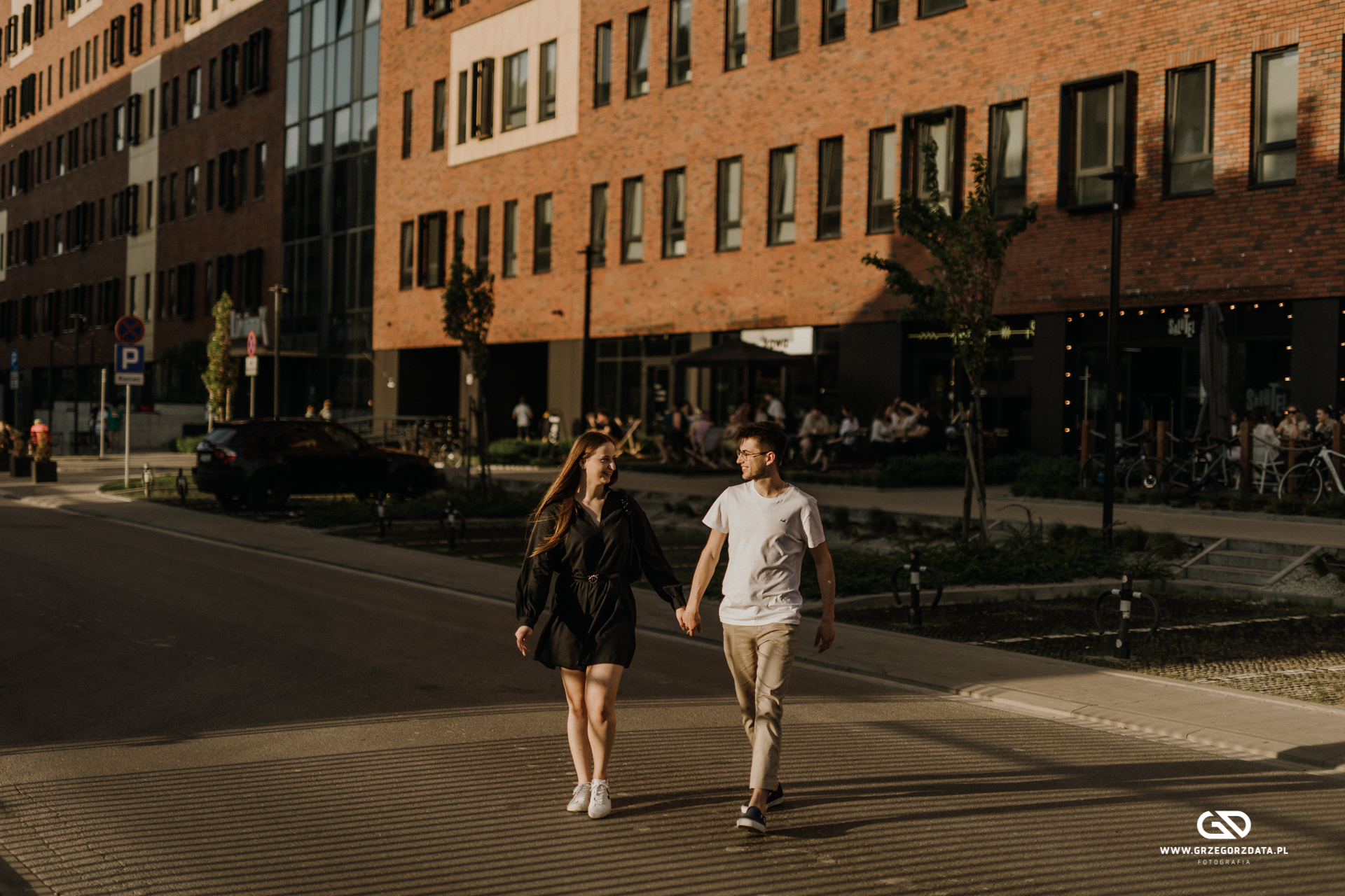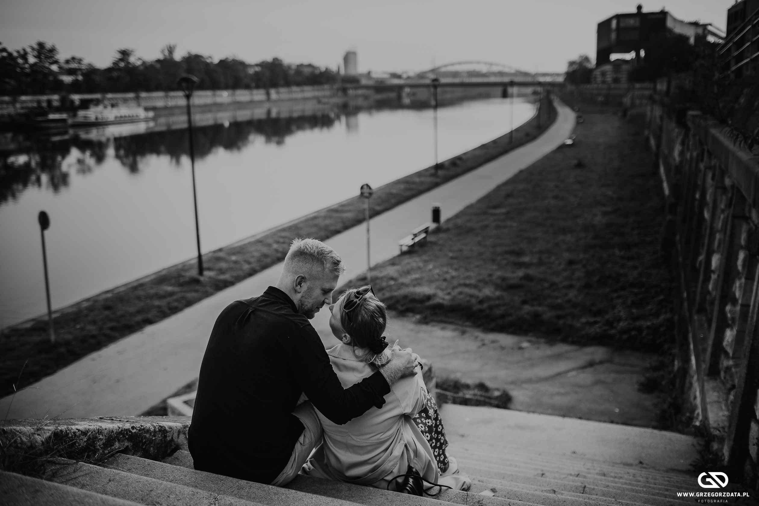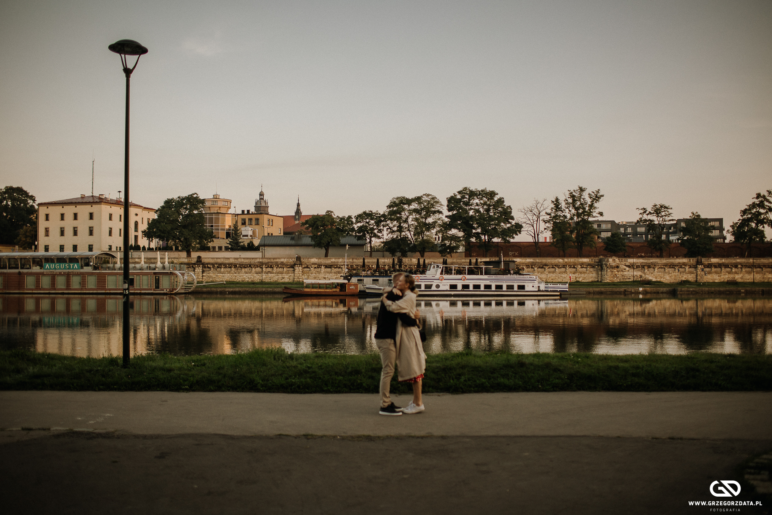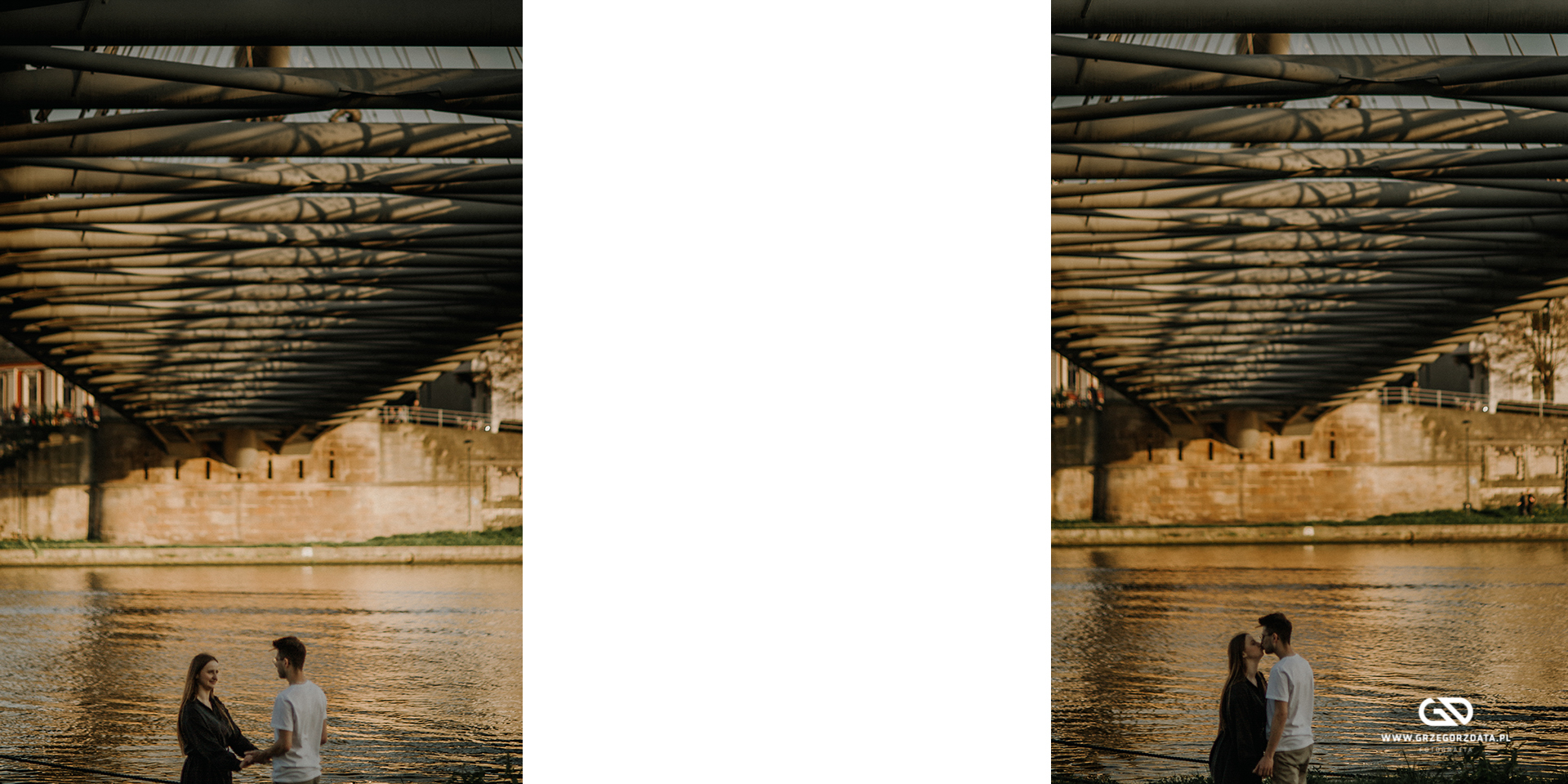 Gdziekolwiek prowadziły nas emocje, odkrywaliśmy nowe miejsca, wśród których warto było zrobić chociaż jedno, nierzadko spontaniczne zdjęcie. Zabłocie, którego nazwa pochodzi od słów „za błotem”, przyjęło nas z tym, co najpiękniejsze. W średniowieczu to tutaj rozwijał się przemysł i port rzeczny, który służył do spławiania soli z Wieliczki. Później to miejsce stało się idealnym terenem strategicznym. Aktualnie na zakolu Wisły można poczuć idealną do fotografowania przestrzeń w industrialnym klimacie. Podczas sesji zdjęciowej w tym miejscu nie zabrakło radości i delikatnych gestów miłości.