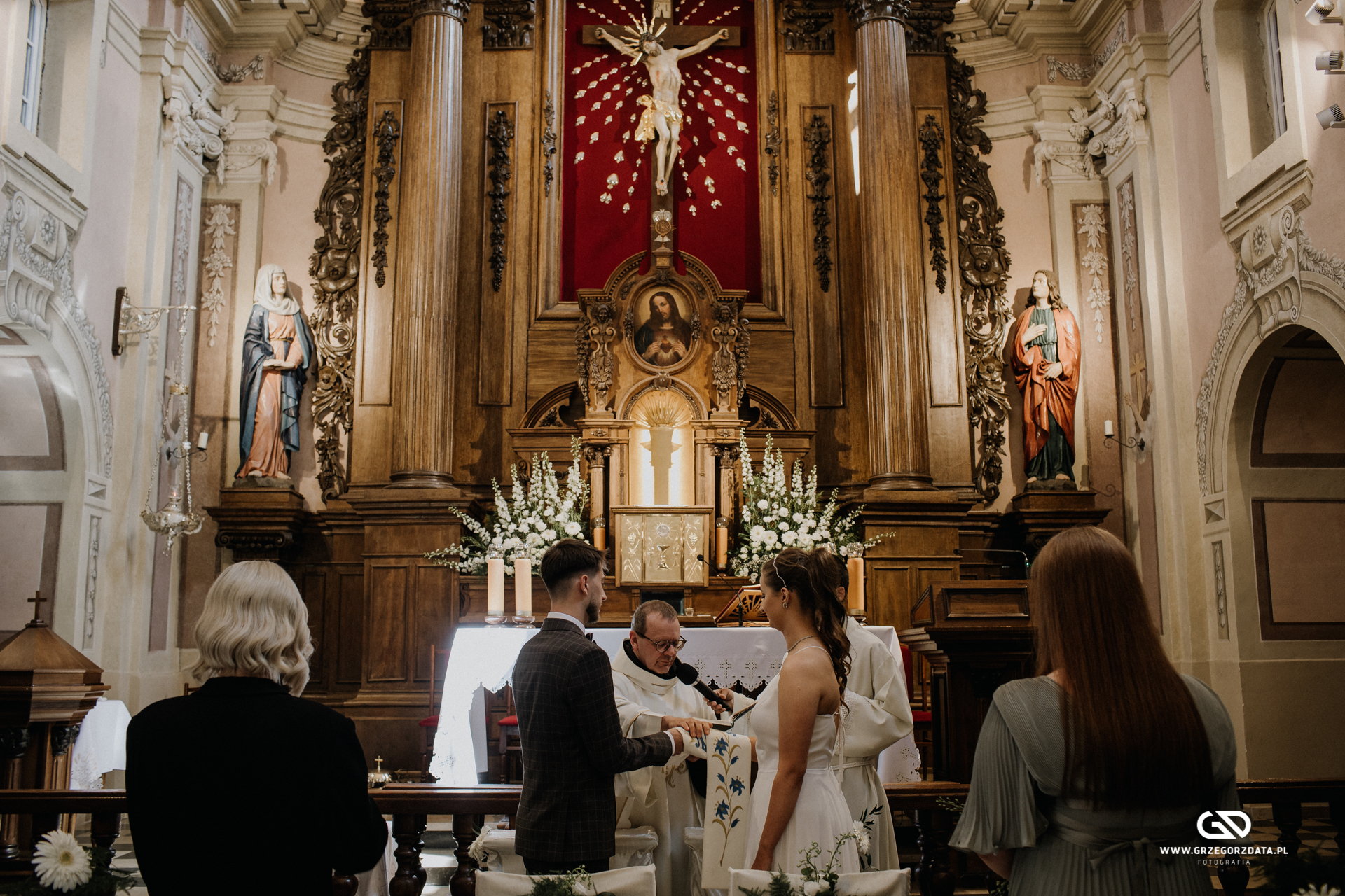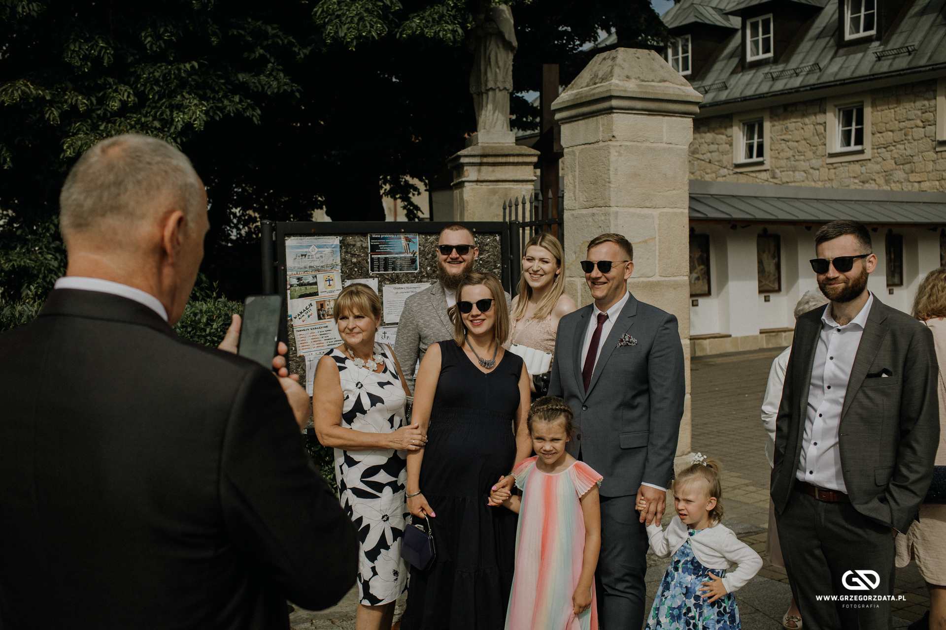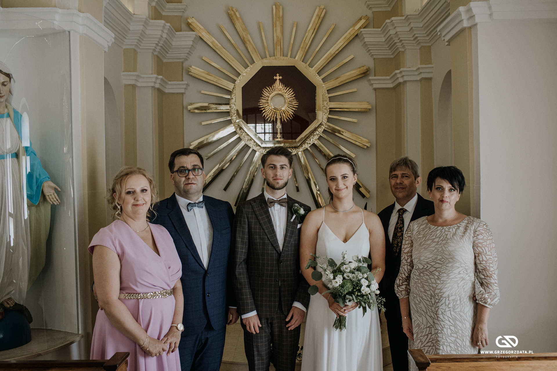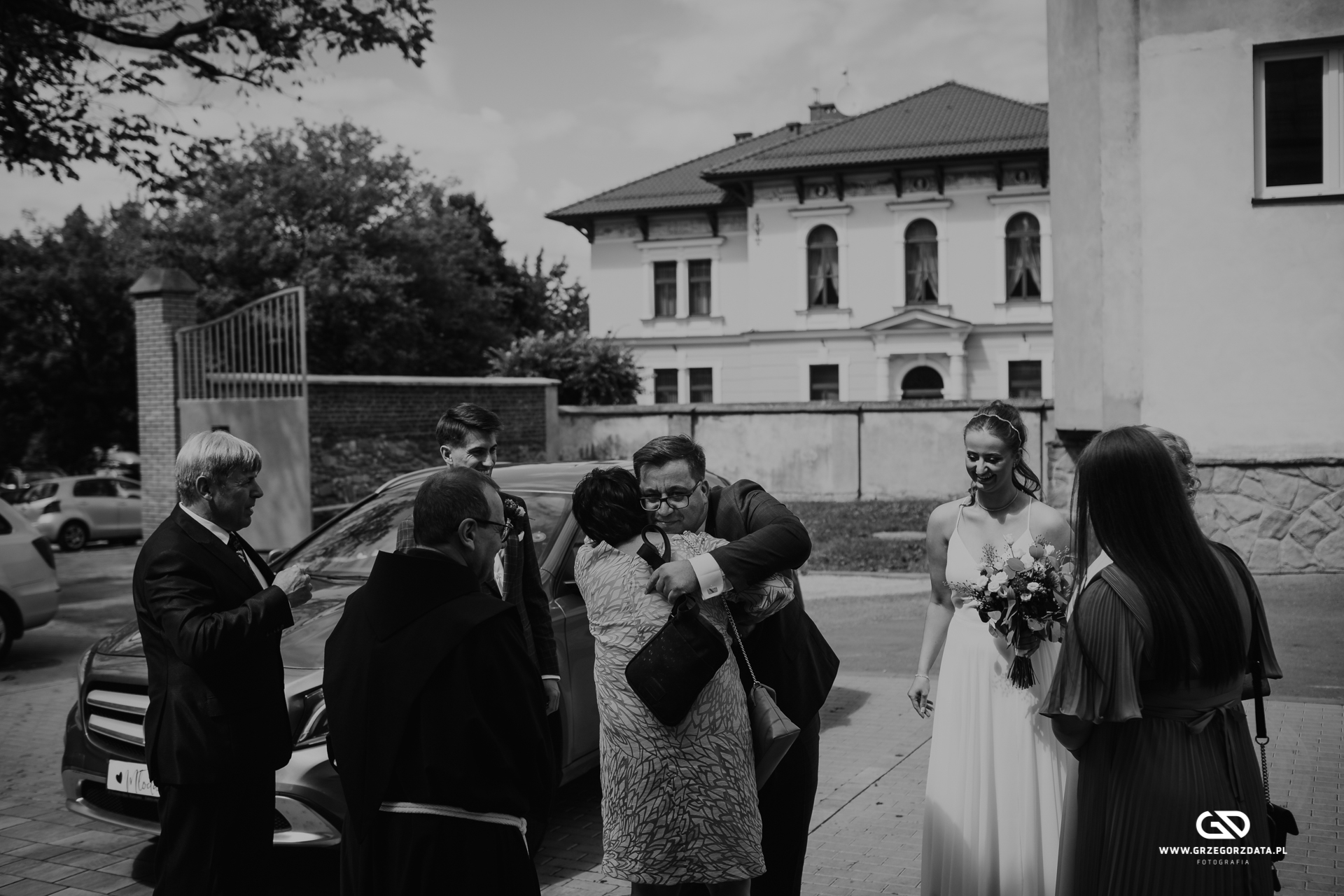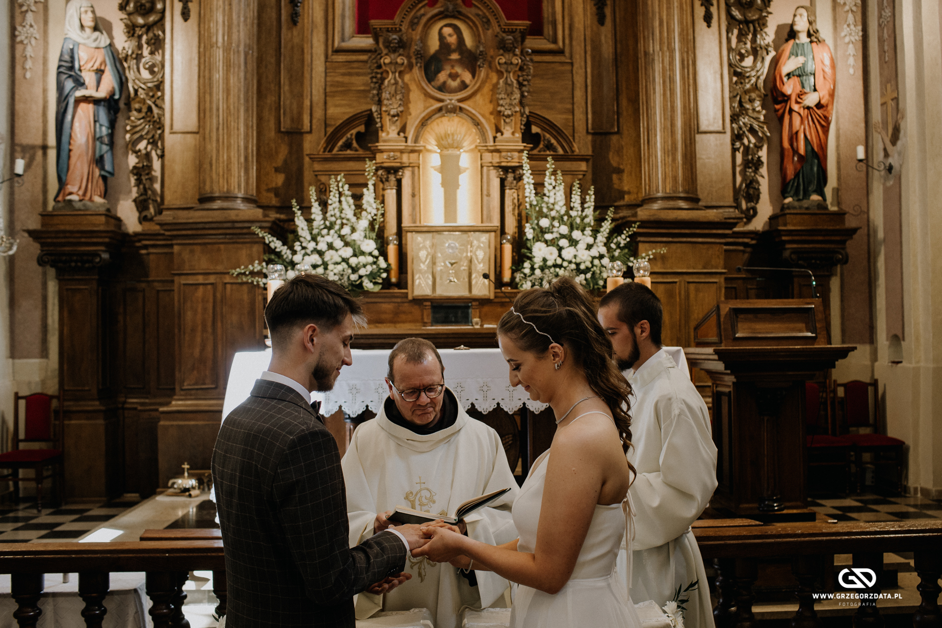 Chwilę później jechaliśmy już do kościoła. Prowadziła Zuzanna, a sama droga dostarczyła nam widoków pięknej panoramy Krosna. Na miejscu wszyscy w poruszeniu czekali na młodych. Dużo emocji, szczególnie u rodziców. Tutaj wszystko grało – światło, kameralność, a wreszcie i muzyka. Ta było wyjątkowa, bo w kościelnym zespole udzielały się siostry pana młodego. Miałem ciarki - fajnie kiedy po kilkunastu sezonach ślubnych nadal czujesz takie emocje na ślubie!
