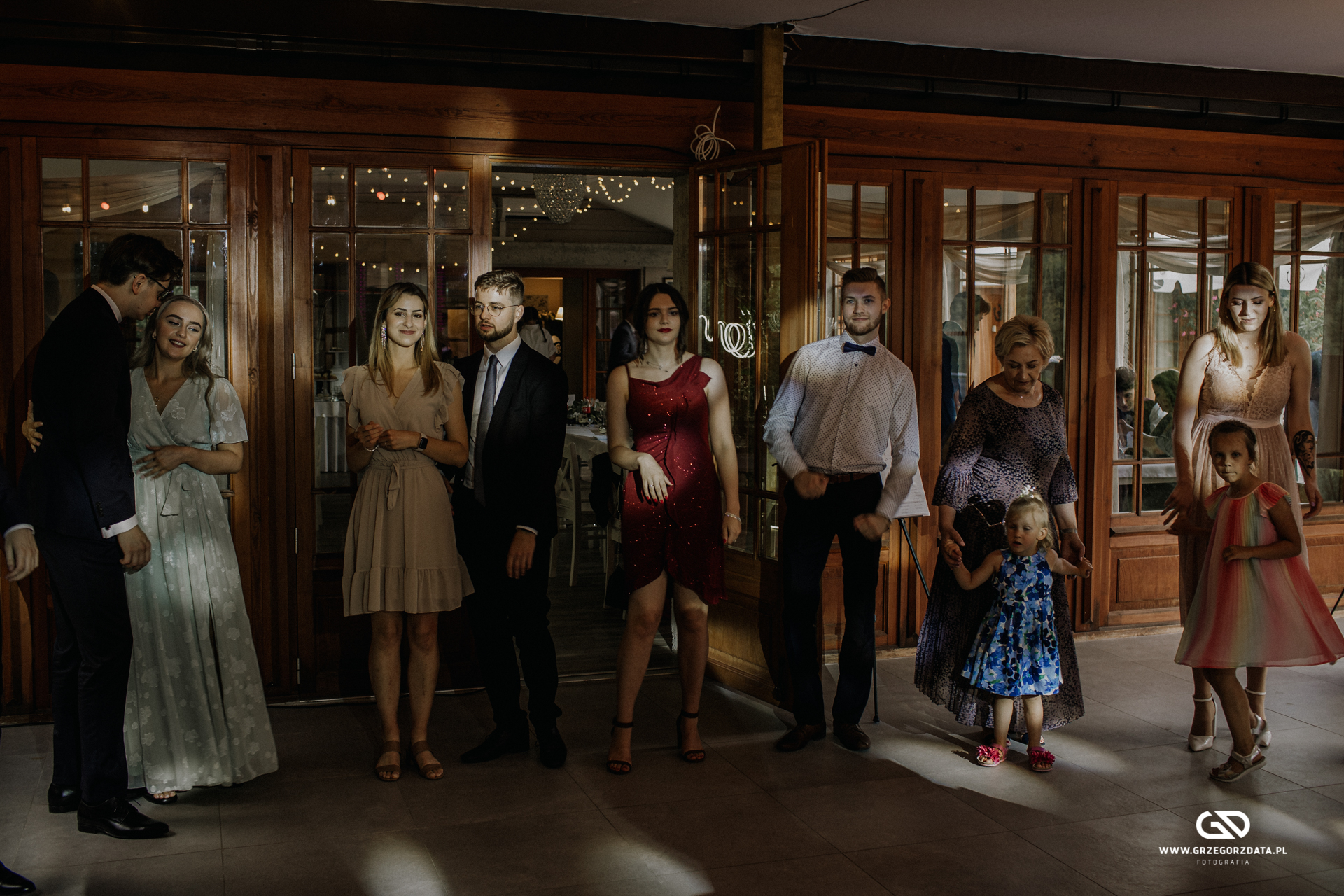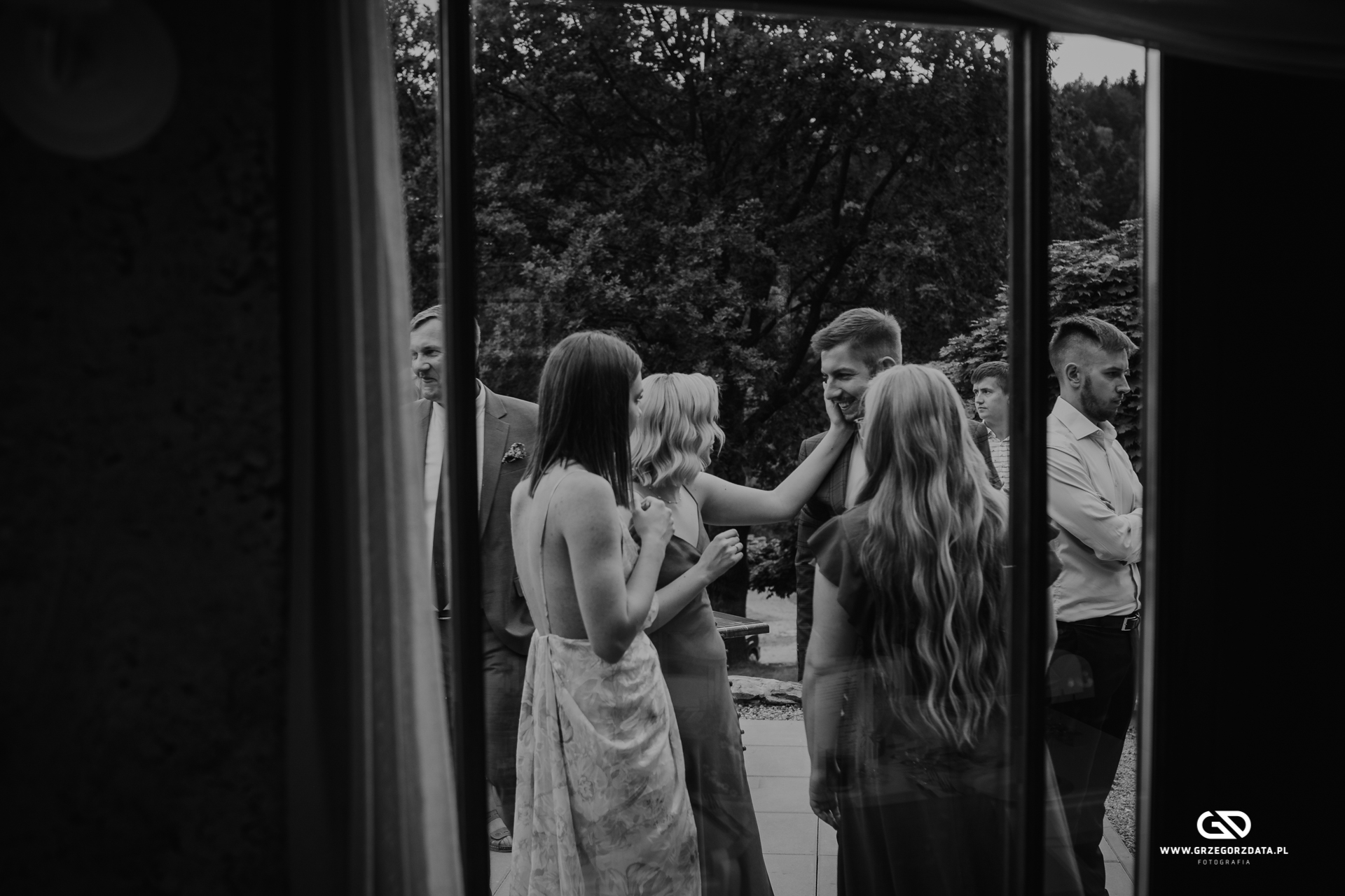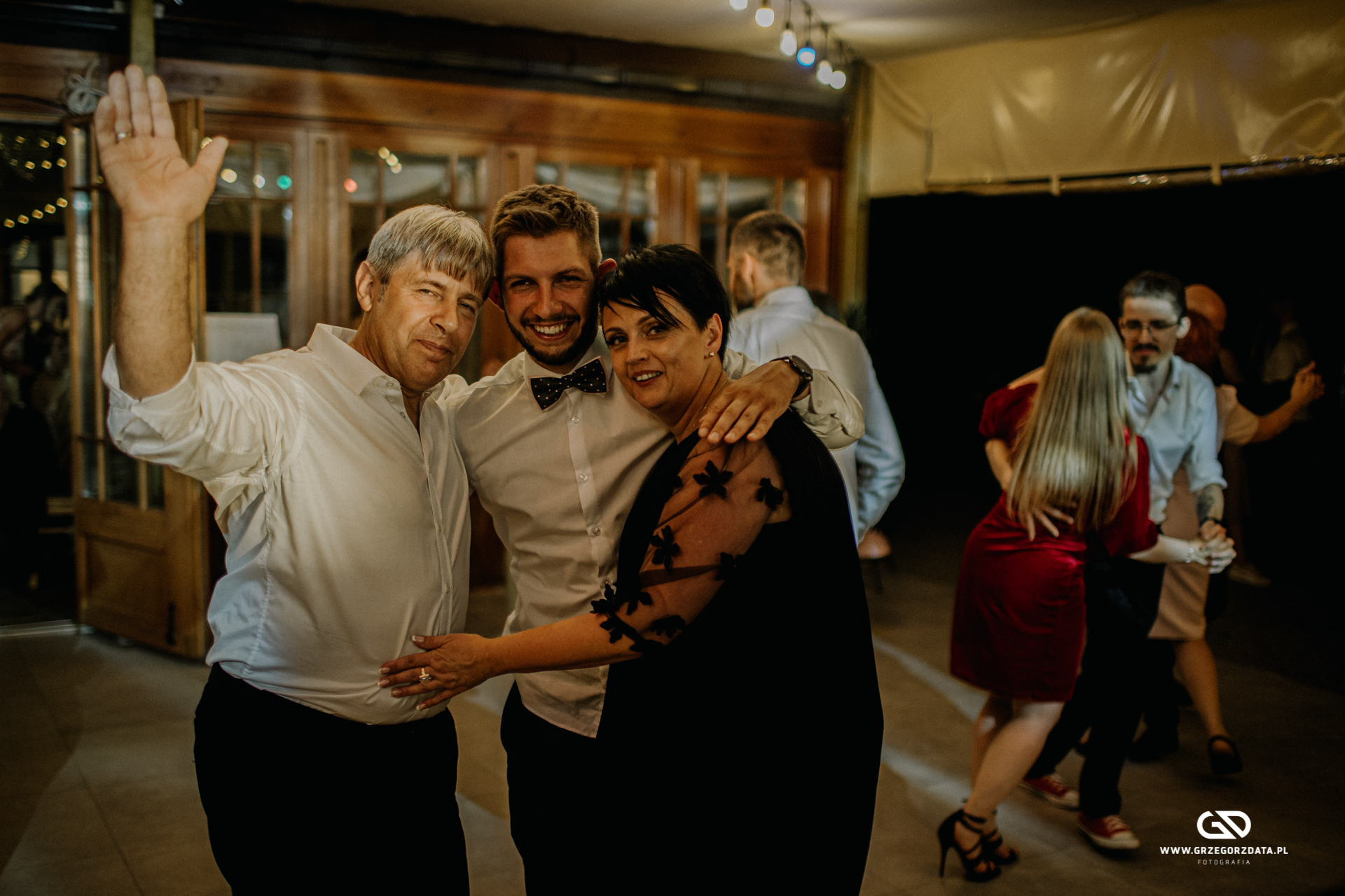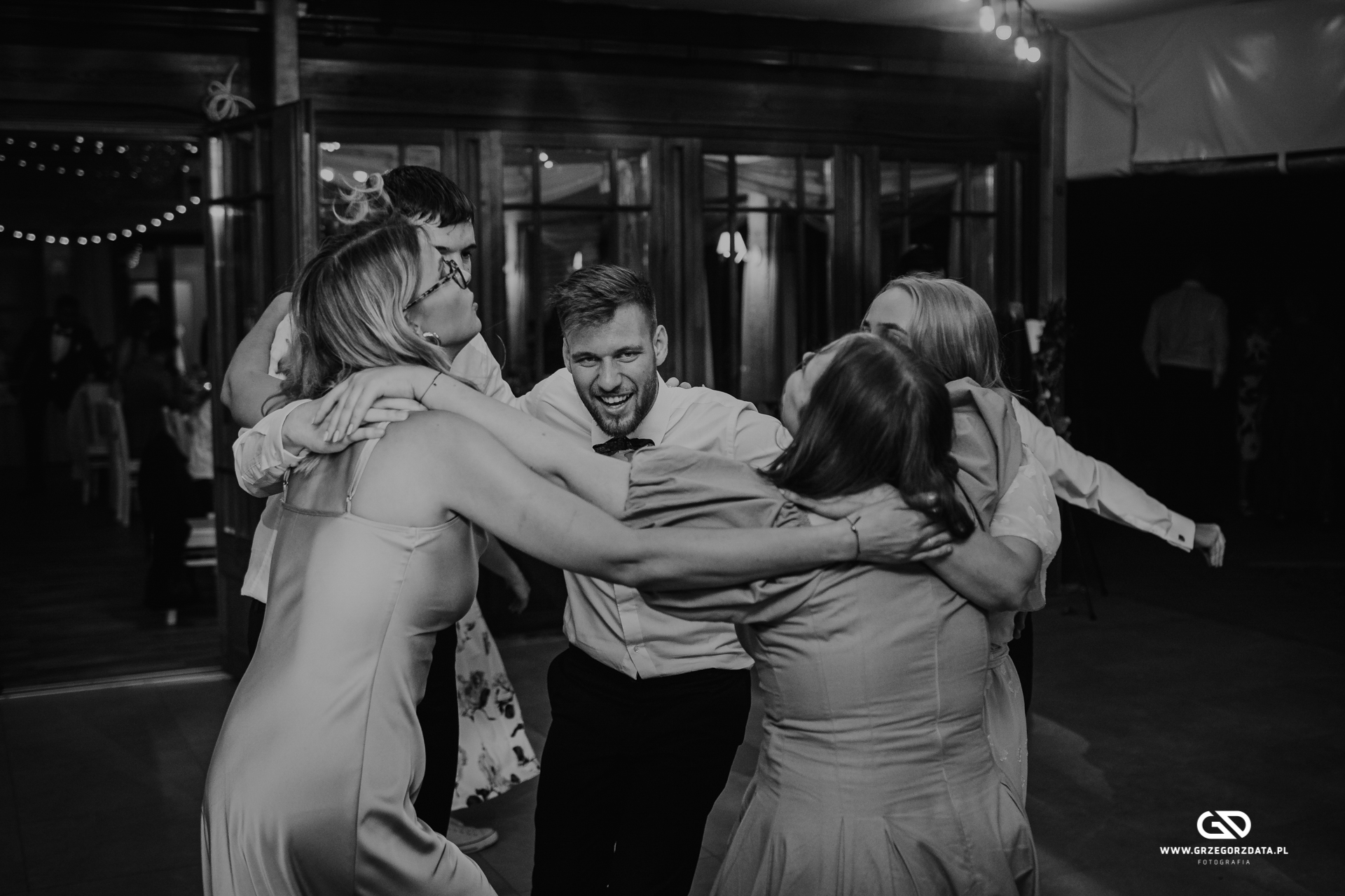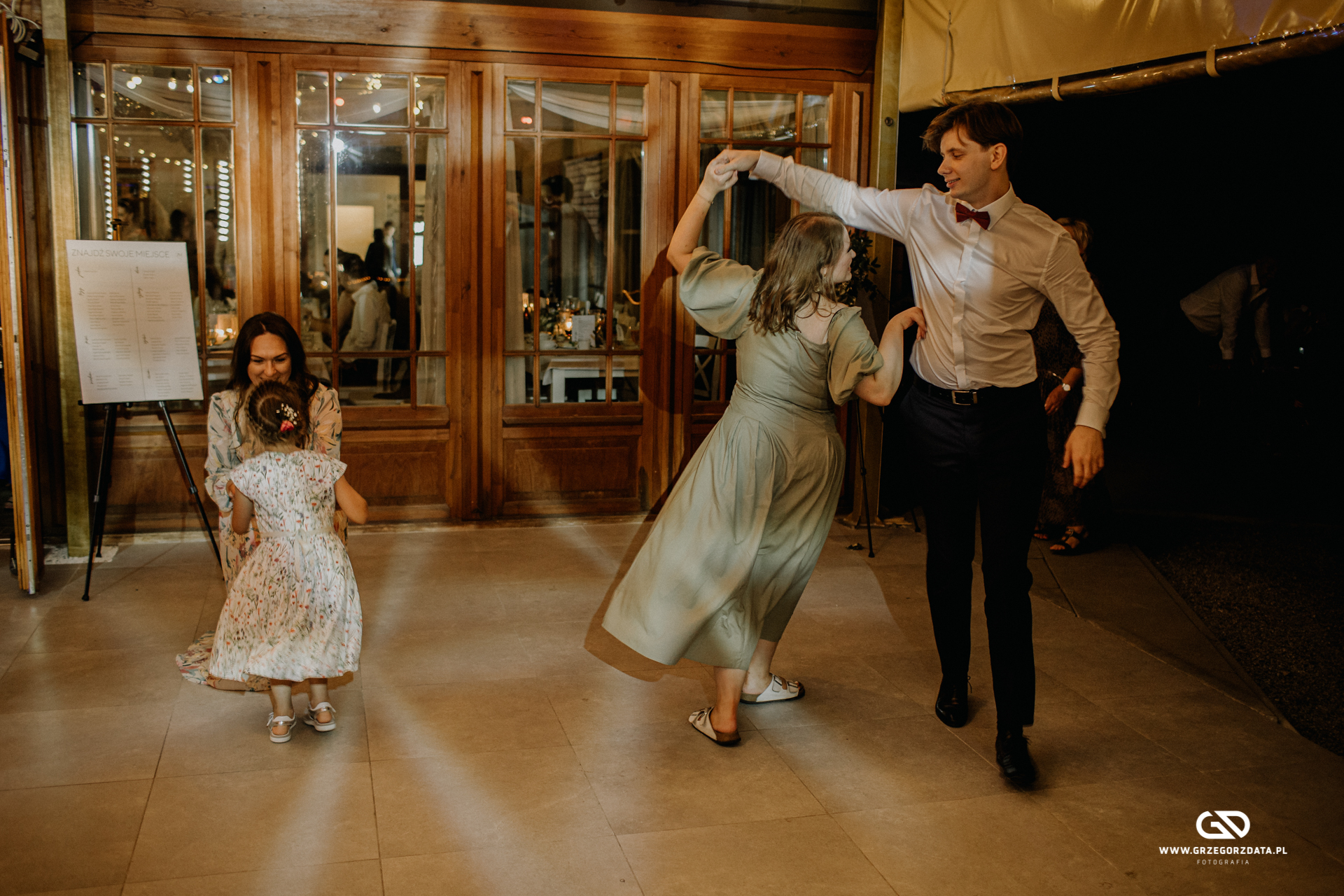 Po ślubie pora na zabawę. Uroczysko dostarczyło luźnej atmosfery – tak potrzebnej na tego typu weselach. Wszystko zgrało się idealnie, a ja dostałem od młodych tak dużą swobodę, że byłem wzruszony. Usłyszałem: “ufamy Ci w stu procentach, rób zdjęcia tak, jak czujesz” i niesionym tymi słowami postawiłem na uwiecznienie magii chwili. Bez nudnych, typowych kadrów, za to m.in. ze zdjęciami grupowymi w pięknym, zielonym otoczeniu w plenerze.