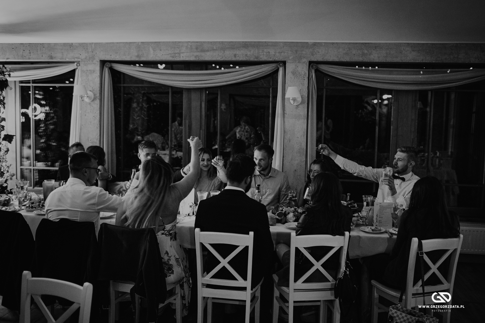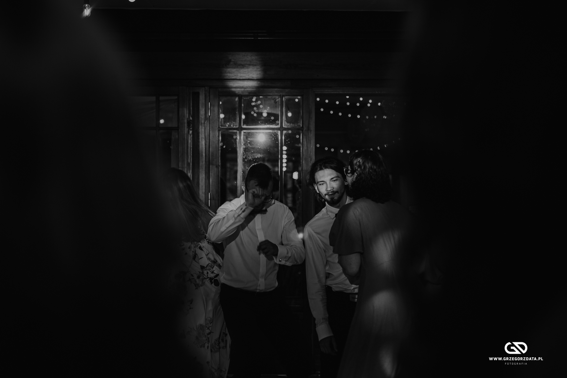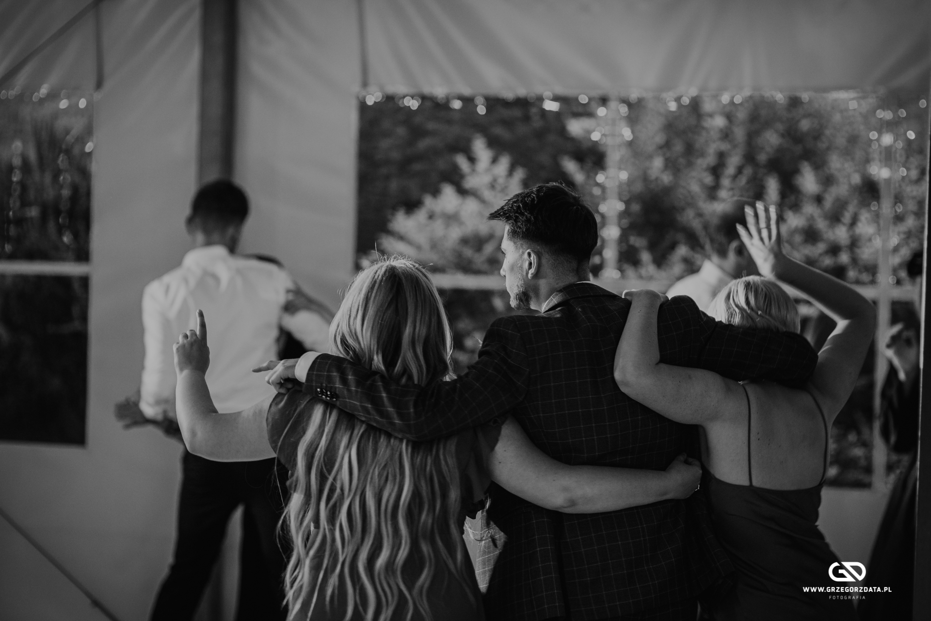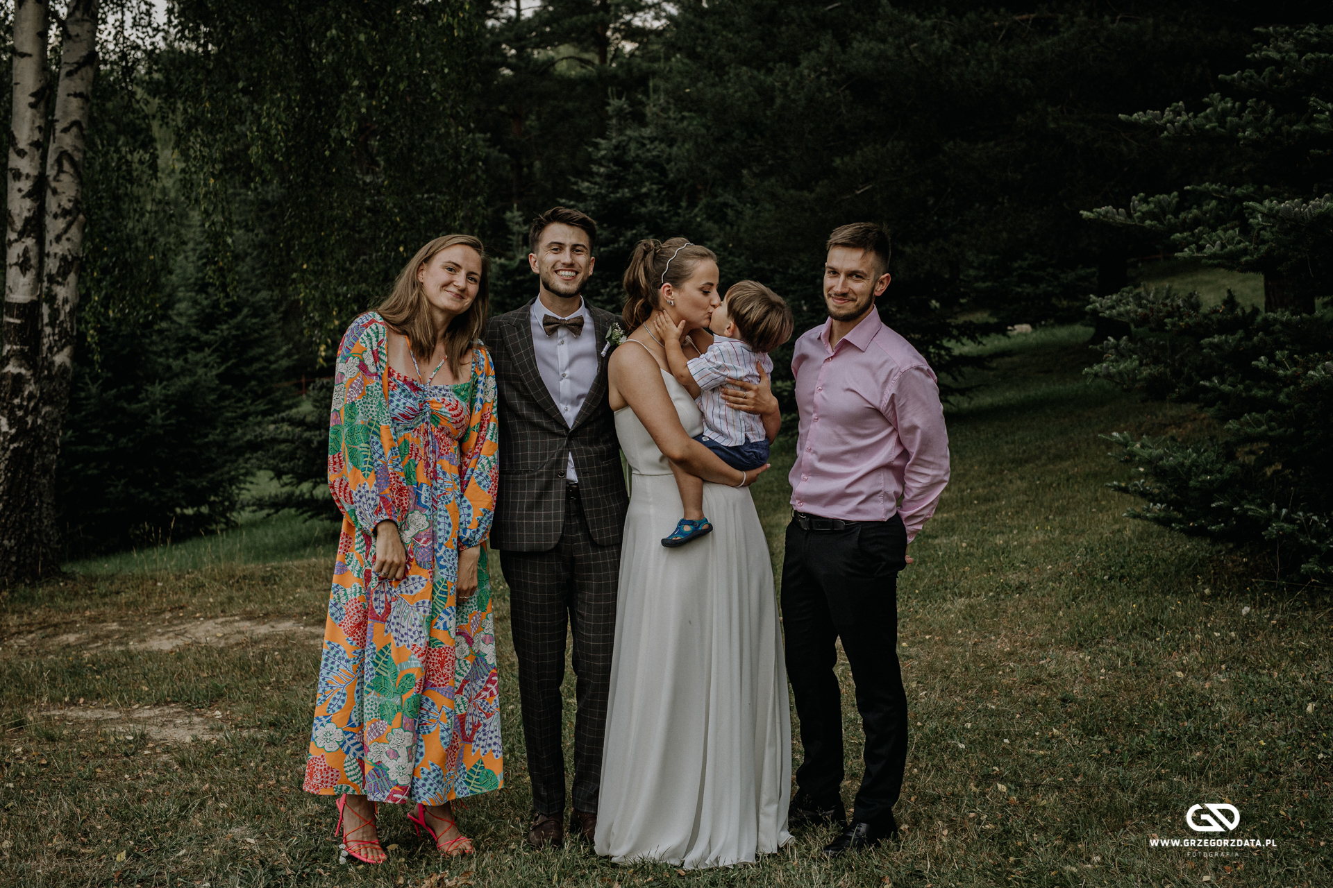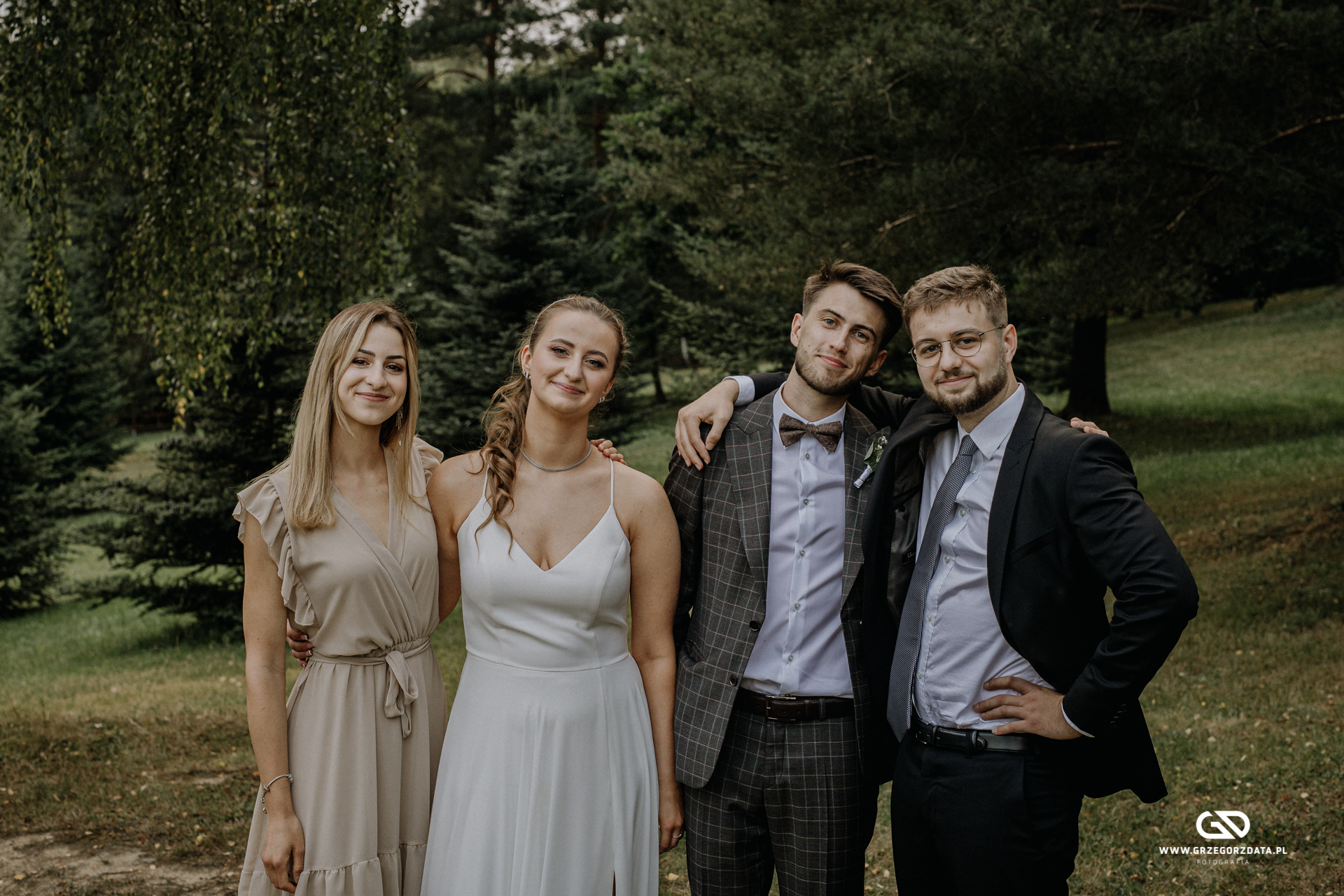 Po ślubie pora na zabawę. Uroczysko dostarczyło luźnej atmosfery – tak potrzebnej na tego typu weselach. Wszystko zgrało się idealnie, a ja dostałem od młodych tak dużą swobodę, że byłem wzruszony. Usłyszałem: “ufamy Ci w stu procentach, rób zdjęcia tak, jak czujesz” i niesionym tymi słowami postawiłem na uwiecznienie magii chwili. Bez nudnych, typowych kadrów, za to m.in. ze zdjęciami grupowymi w pięknym, zielonym otoczeniu w plenerze.