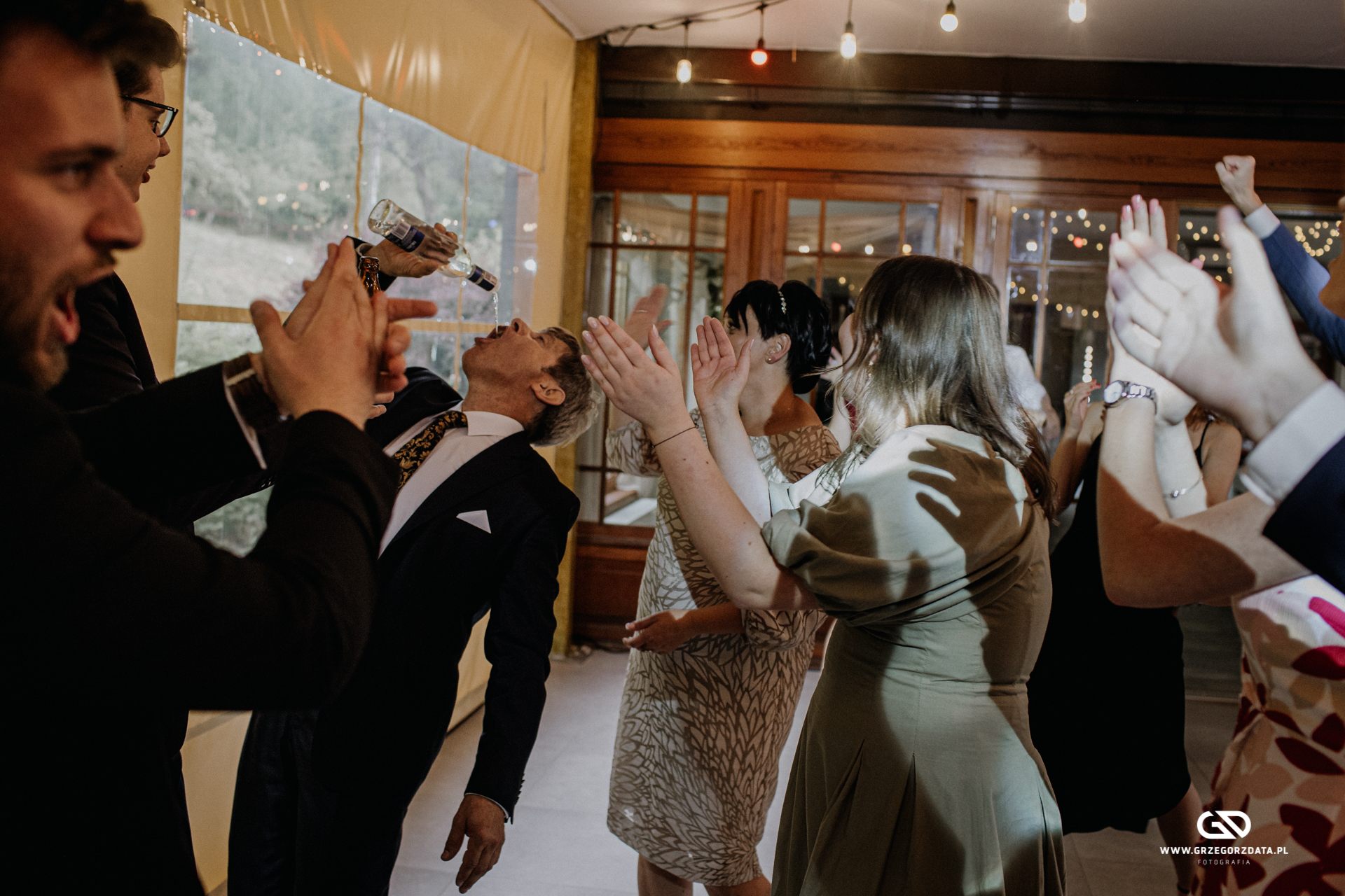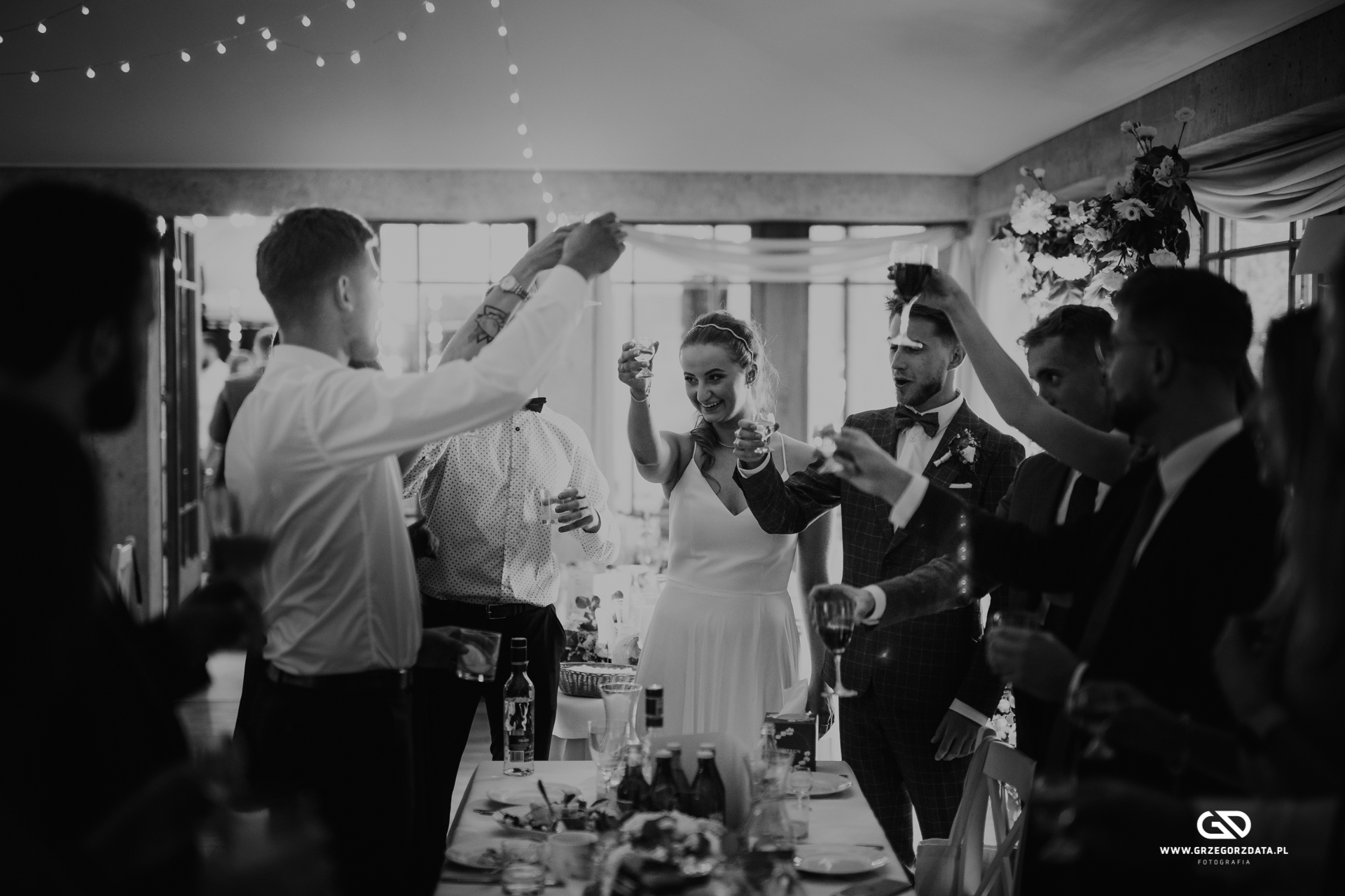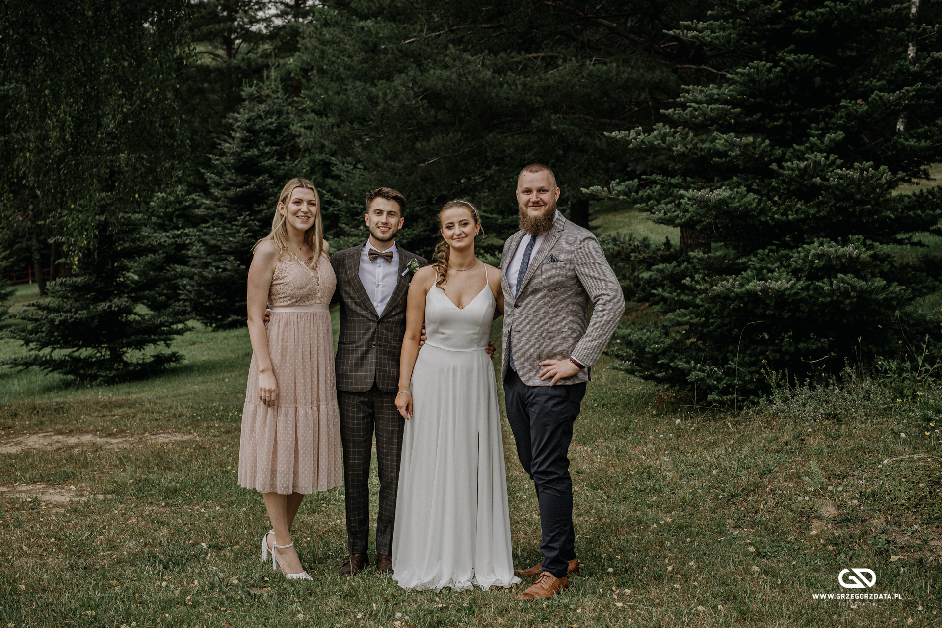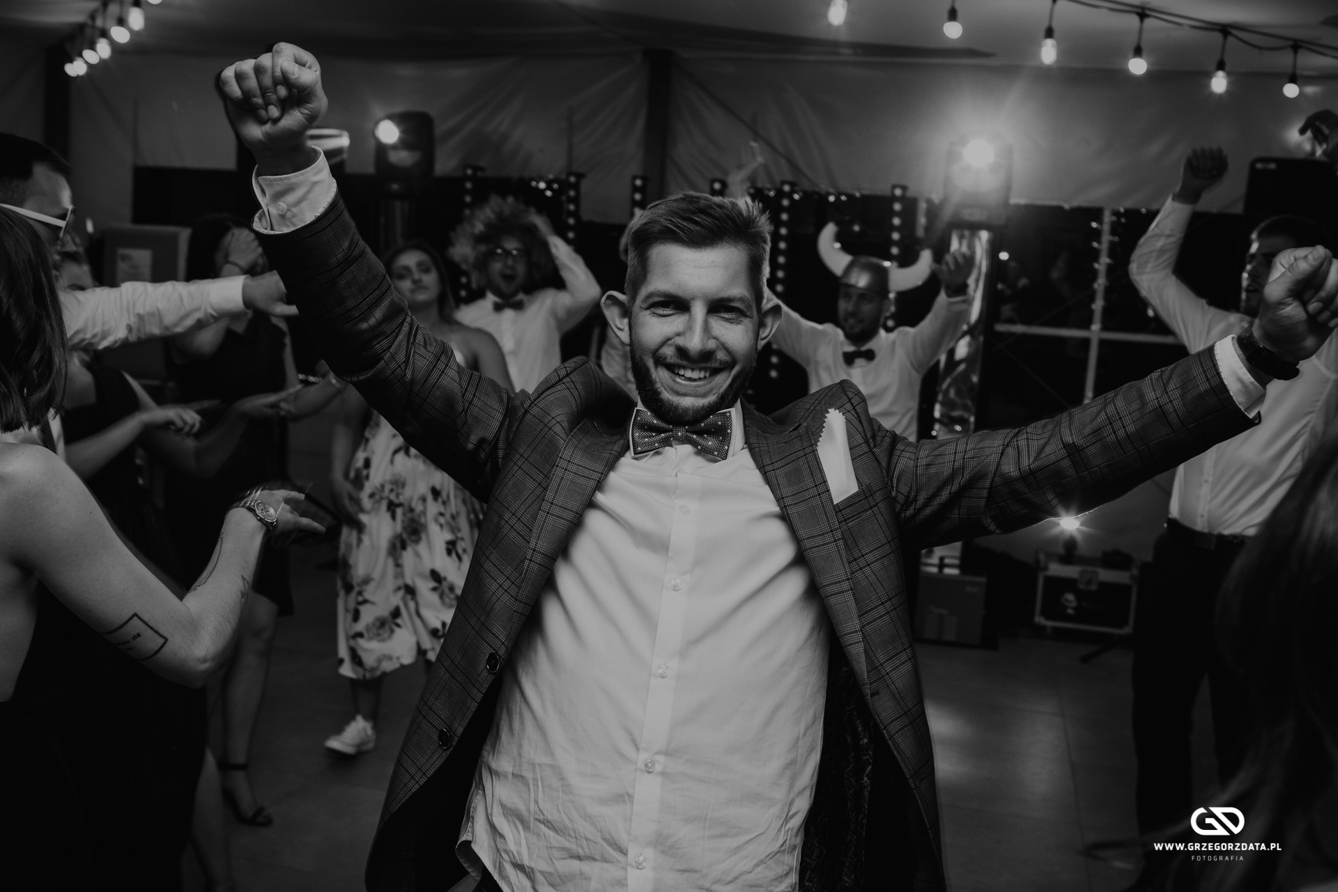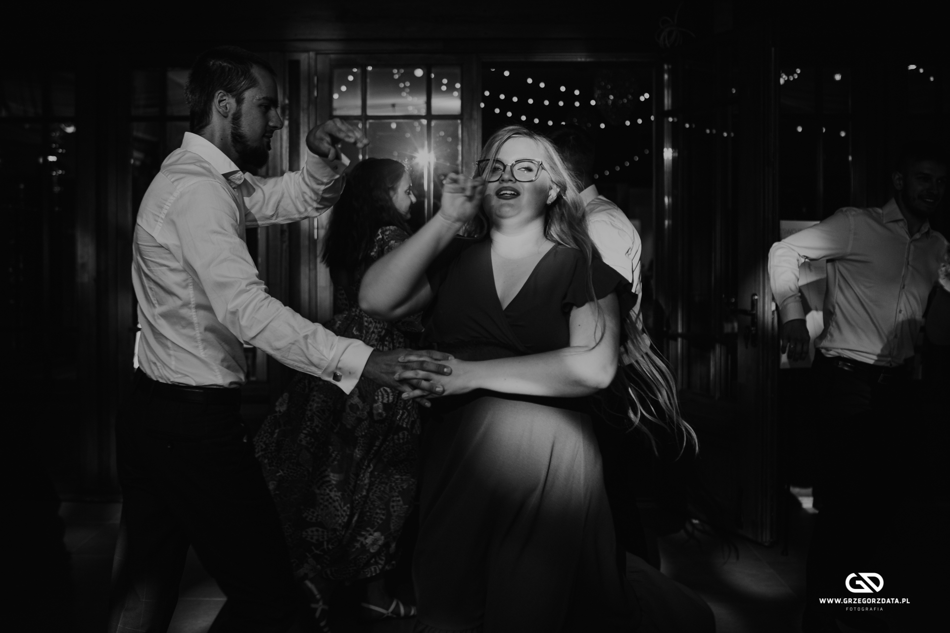 Po ślubie pora na zabawę. Uroczysko dostarczyło luźnej atmosfery – tak potrzebnej na tego typu weselach. Wszystko zgrało się idealnie, a ja dostałem od młodych tak dużą swobodę, że byłem wzruszony. Usłyszałem: “ufamy Ci w stu procentach, rób zdjęcia tak, jak czujesz” i niesionym tymi słowami postawiłem na uwiecznienie magii chwili. Bez nudnych, typowych kadrów, za to m.in. ze zdjęciami grupowymi w pięknym, zielonym otoczeniu w plenerze.
