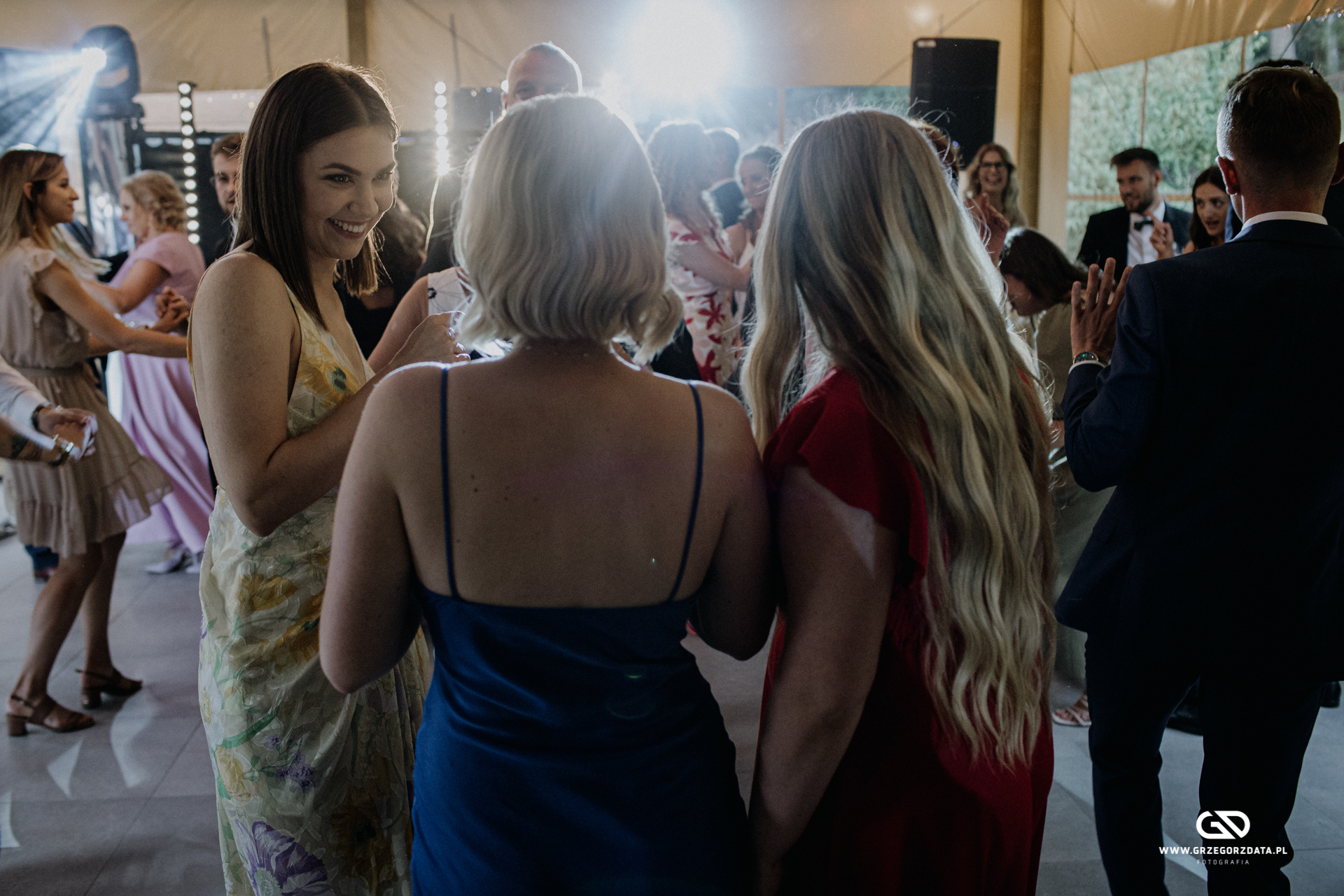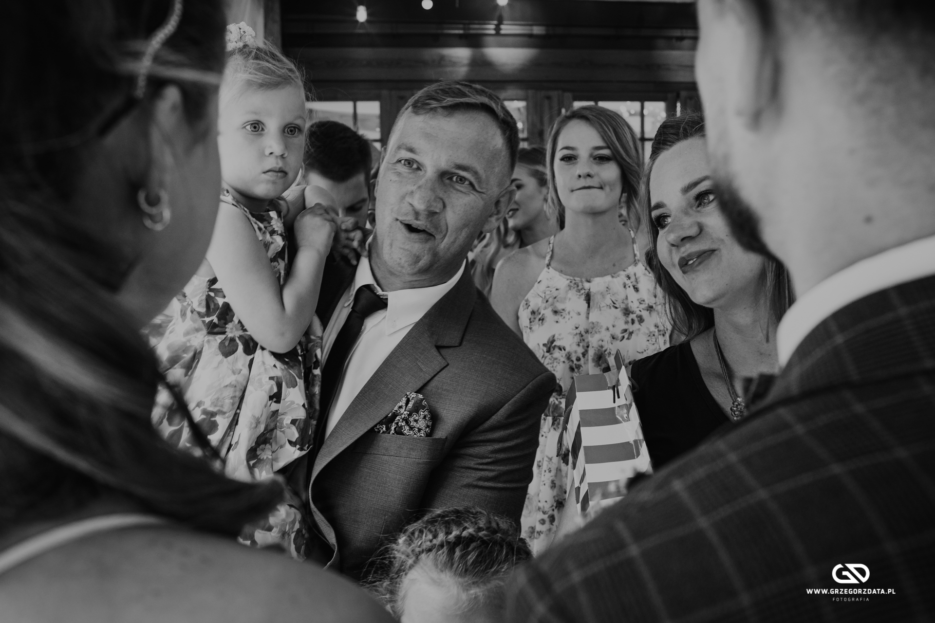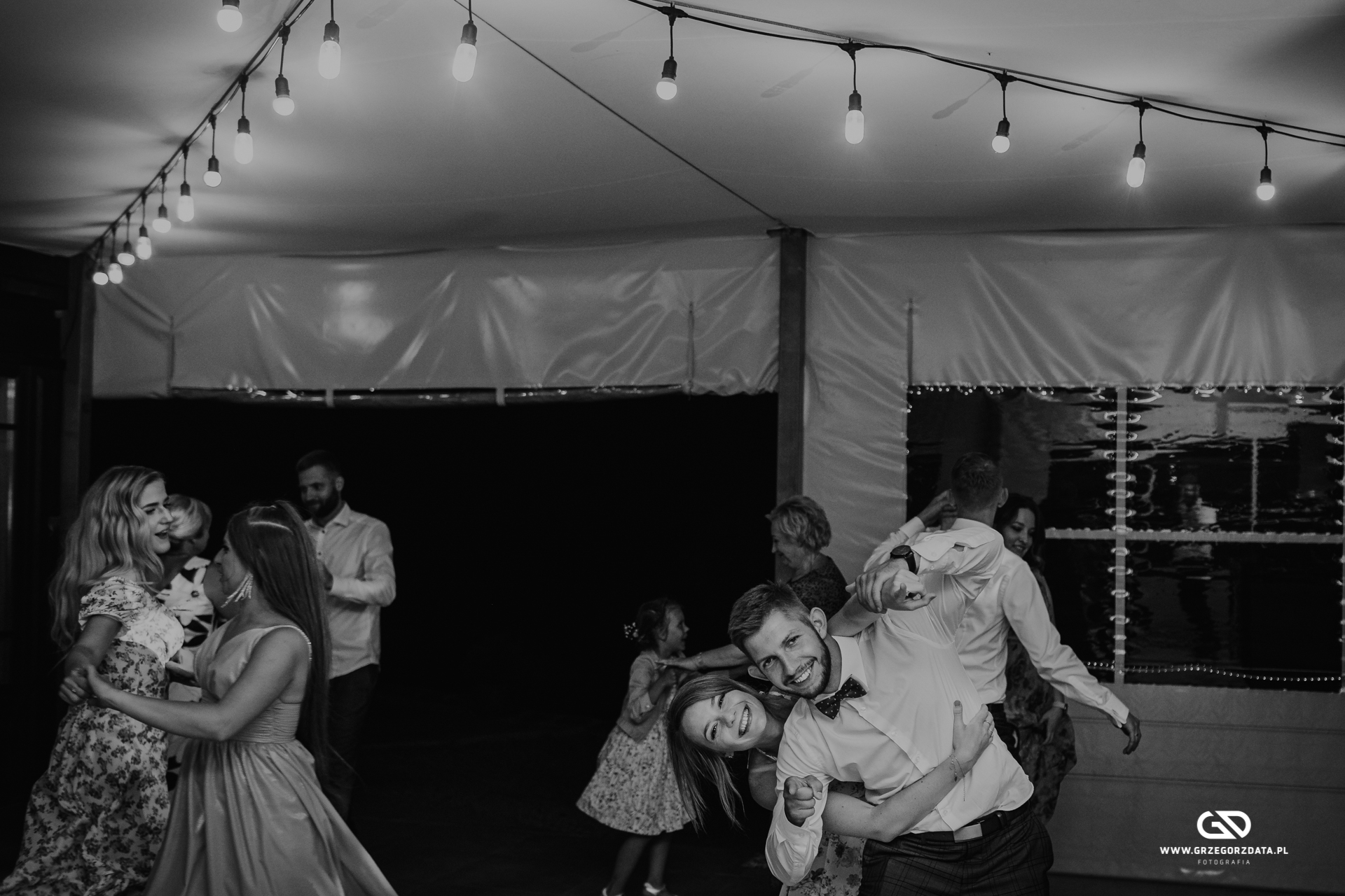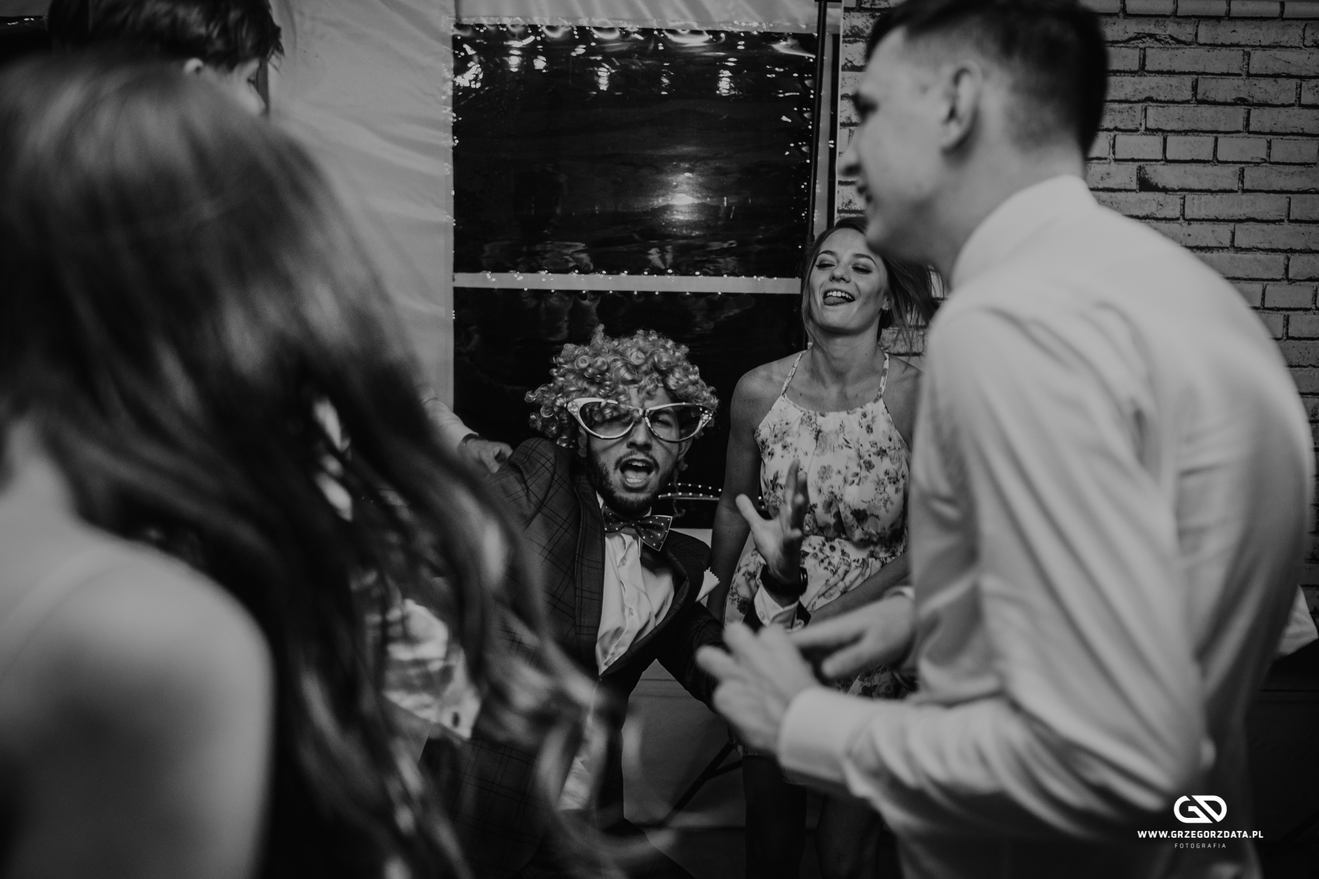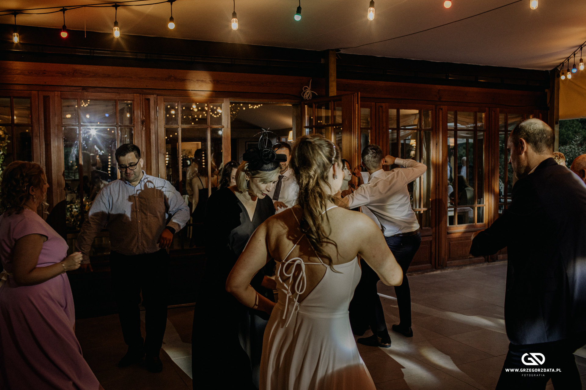 Po ślubie pora na zabawę. Uroczysko dostarczyło luźnej atmosfery – tak potrzebnej na tego typu weselach. Wszystko zgrało się idealnie, a ja dostałem od młodych tak dużą swobodę, że byłem wzruszony. Usłyszałem: “ufamy Ci w stu procentach, rób zdjęcia tak, jak czujesz” i niesionym tymi słowami postawiłem na uwiecznienie magii chwili. Bez nudnych, typowych kadrów, za to m.in. ze zdjęciami grupowymi w pięknym, zielonym otoczeniu w plenerze.