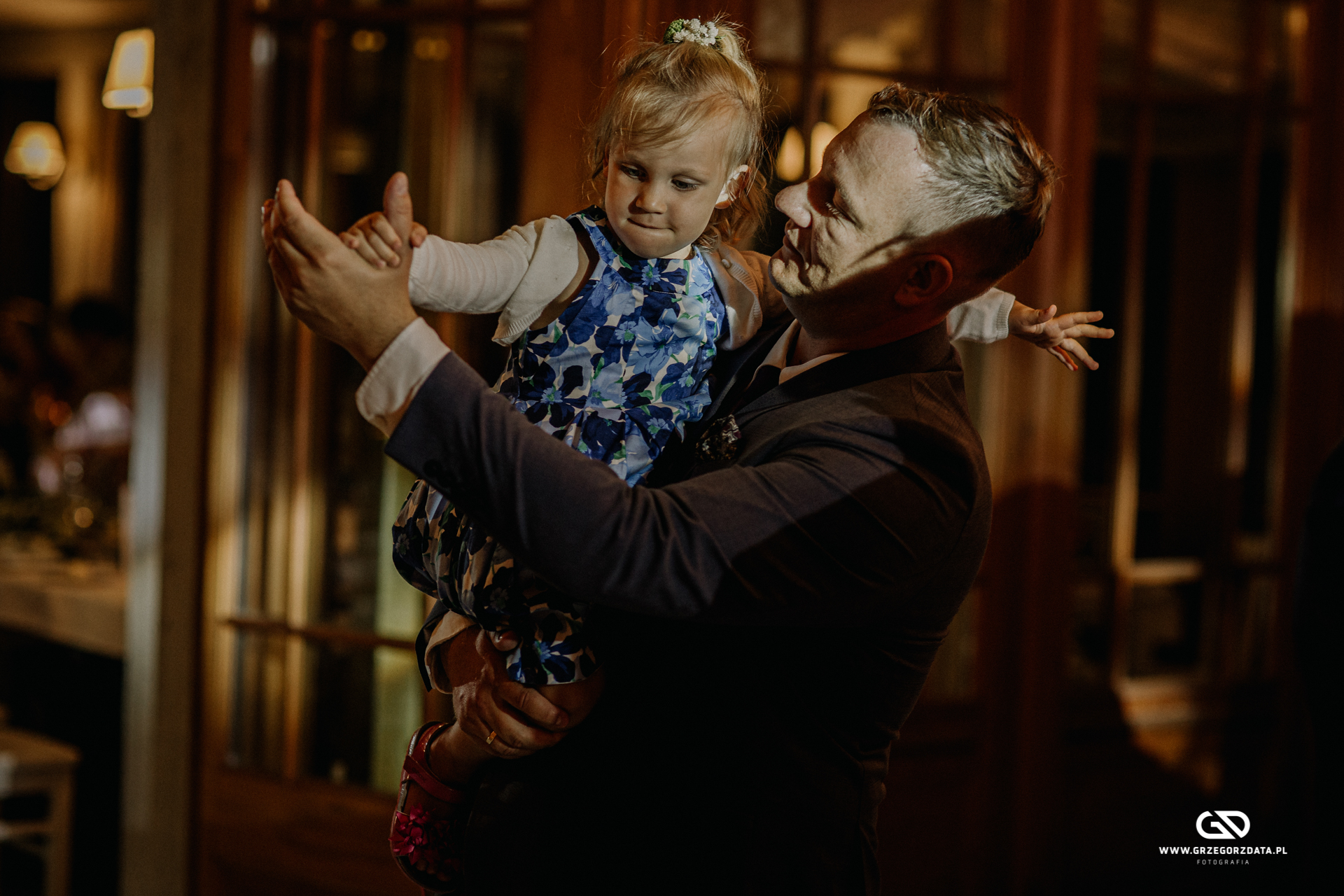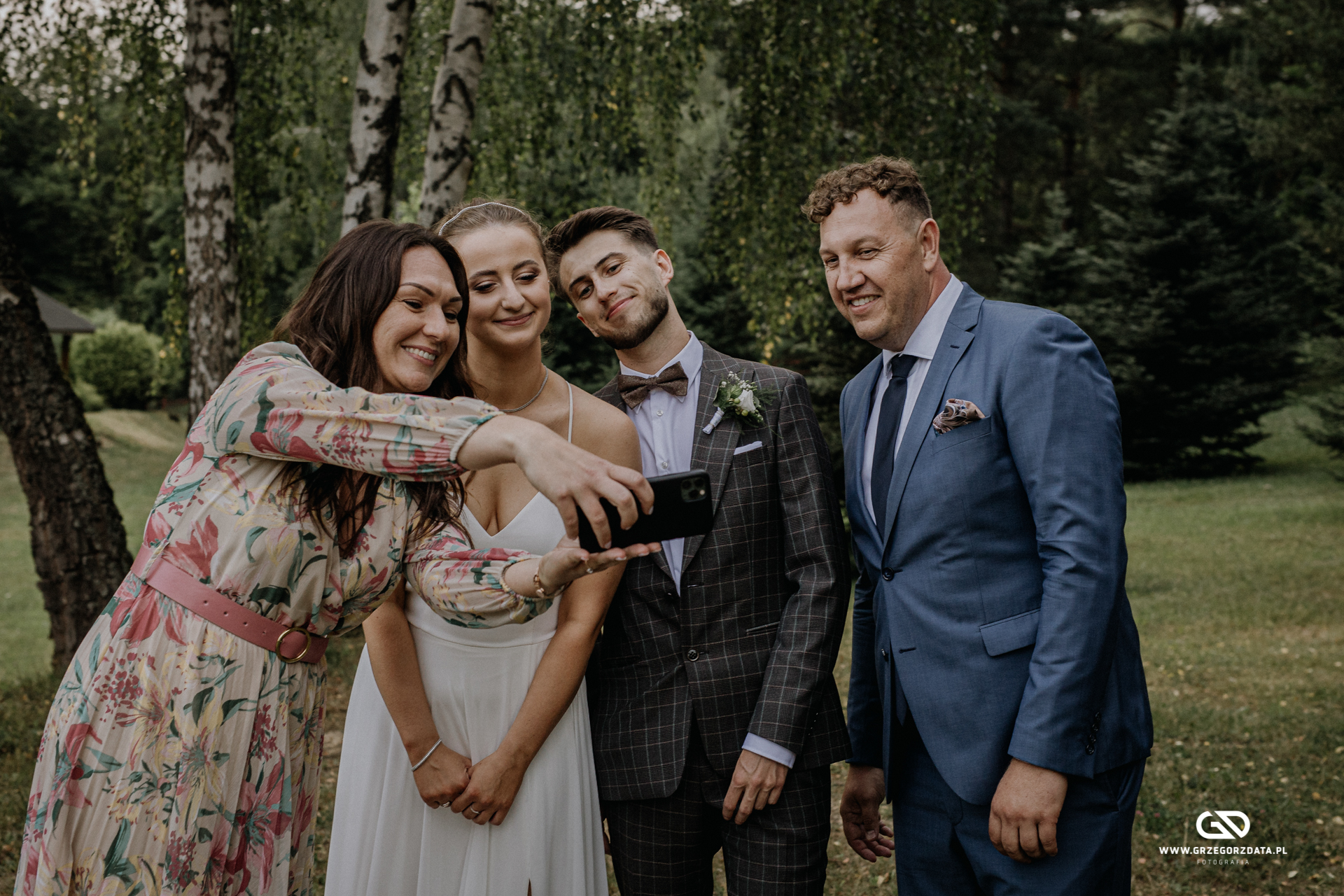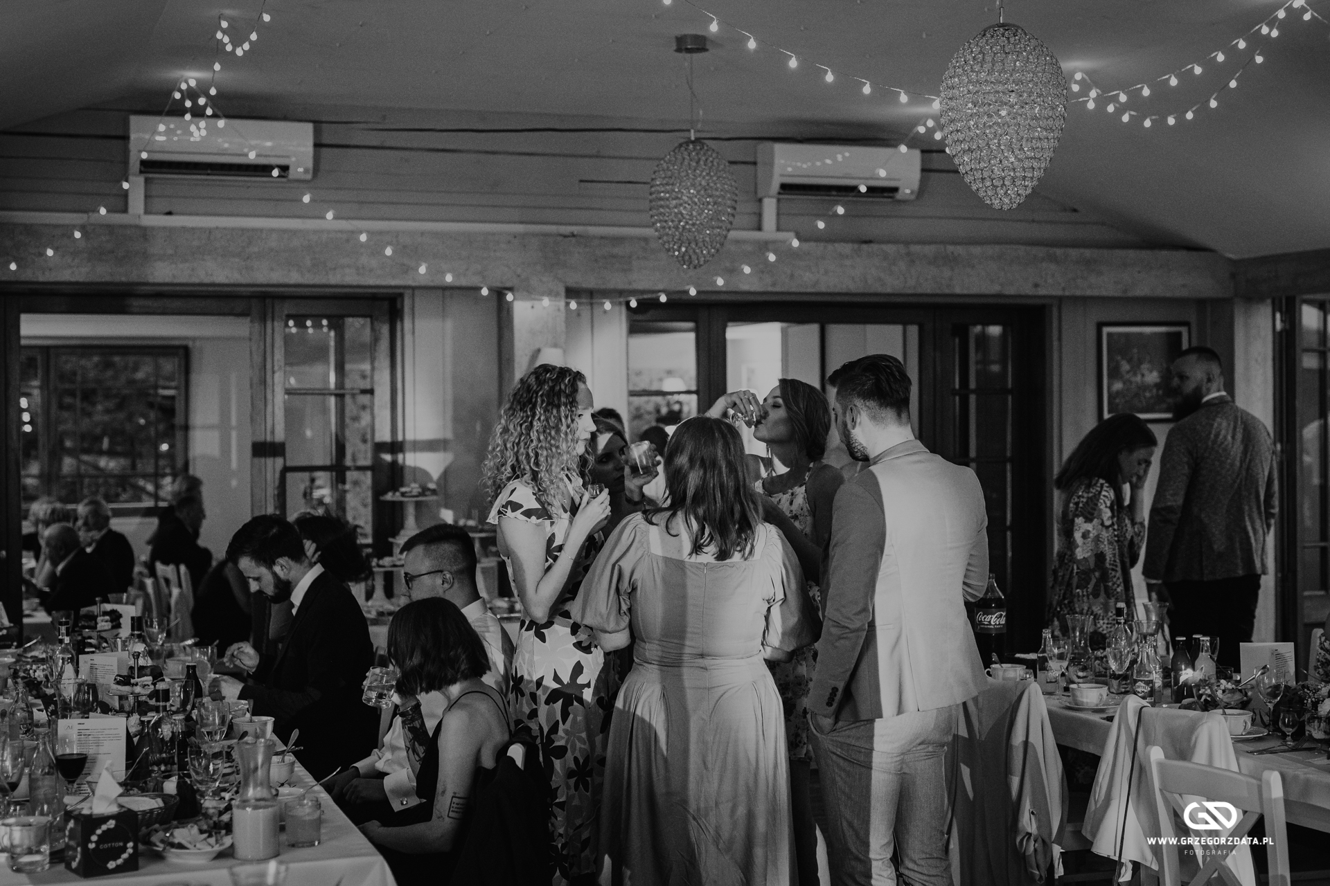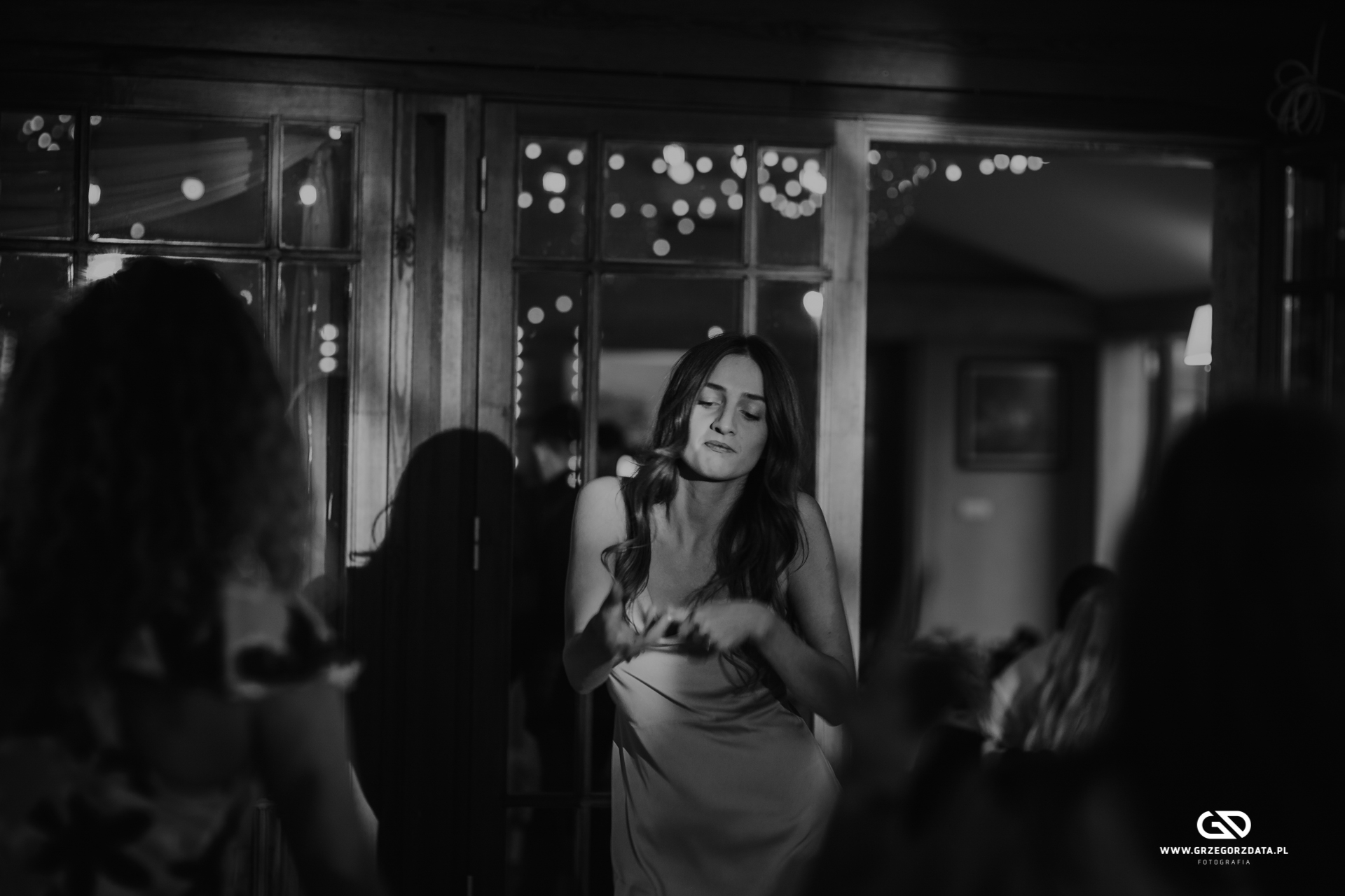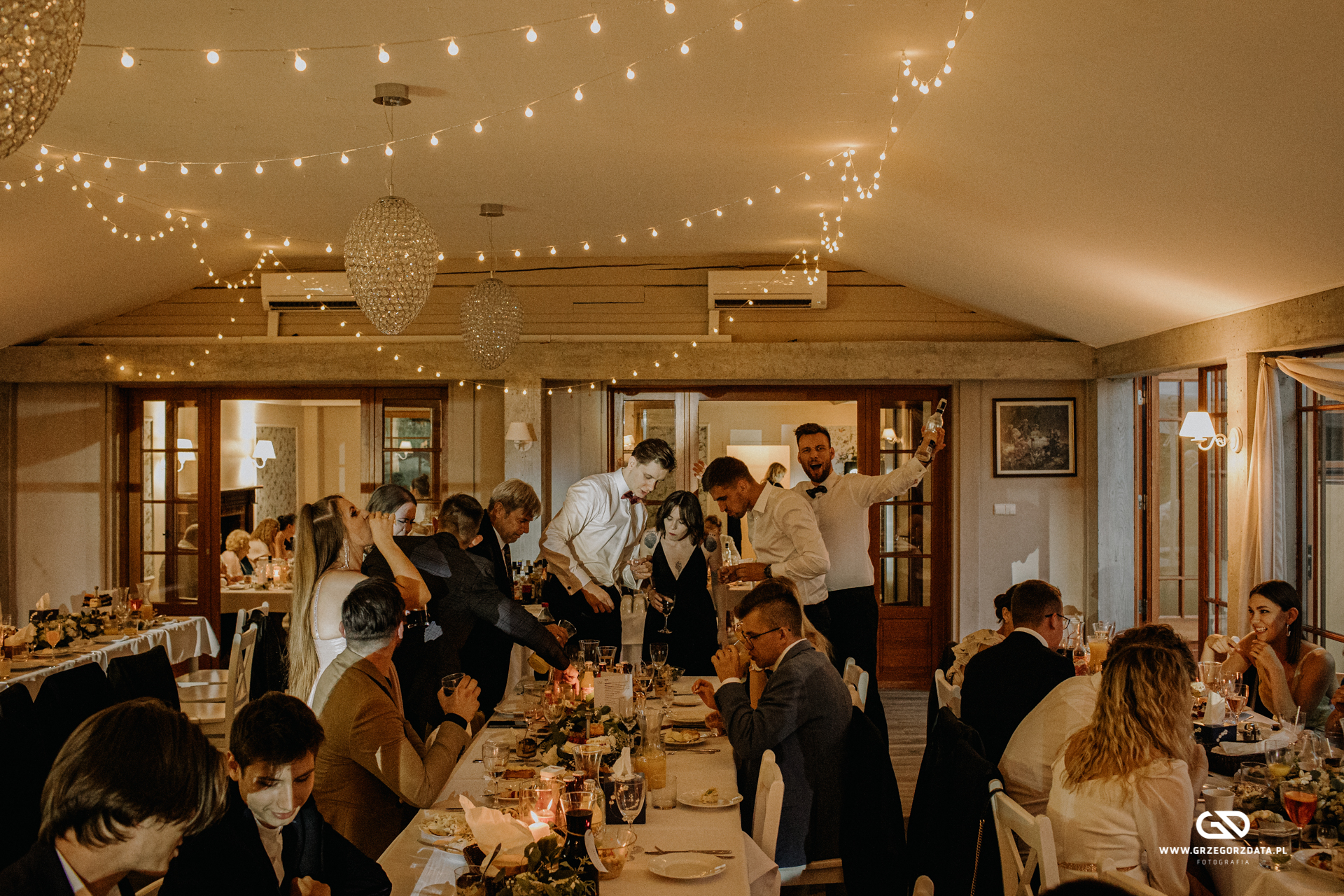 Po ślubie pora na zabawę. Uroczysko dostarczyło luźnej atmosfery – tak potrzebnej na tego typu weselach. Wszystko zgrało się idealnie, a ja dostałem od młodych tak dużą swobodę, że byłem wzruszony. Usłyszałem: “ufamy Ci w stu procentach, rób zdjęcia tak, jak czujesz” i niesionym tymi słowami postawiłem na uwiecznienie magii chwili. Bez nudnych, typowych kadrów, za to m.in. ze zdjęciami grupowymi w pięknym, zielonym otoczeniu w plenerze.