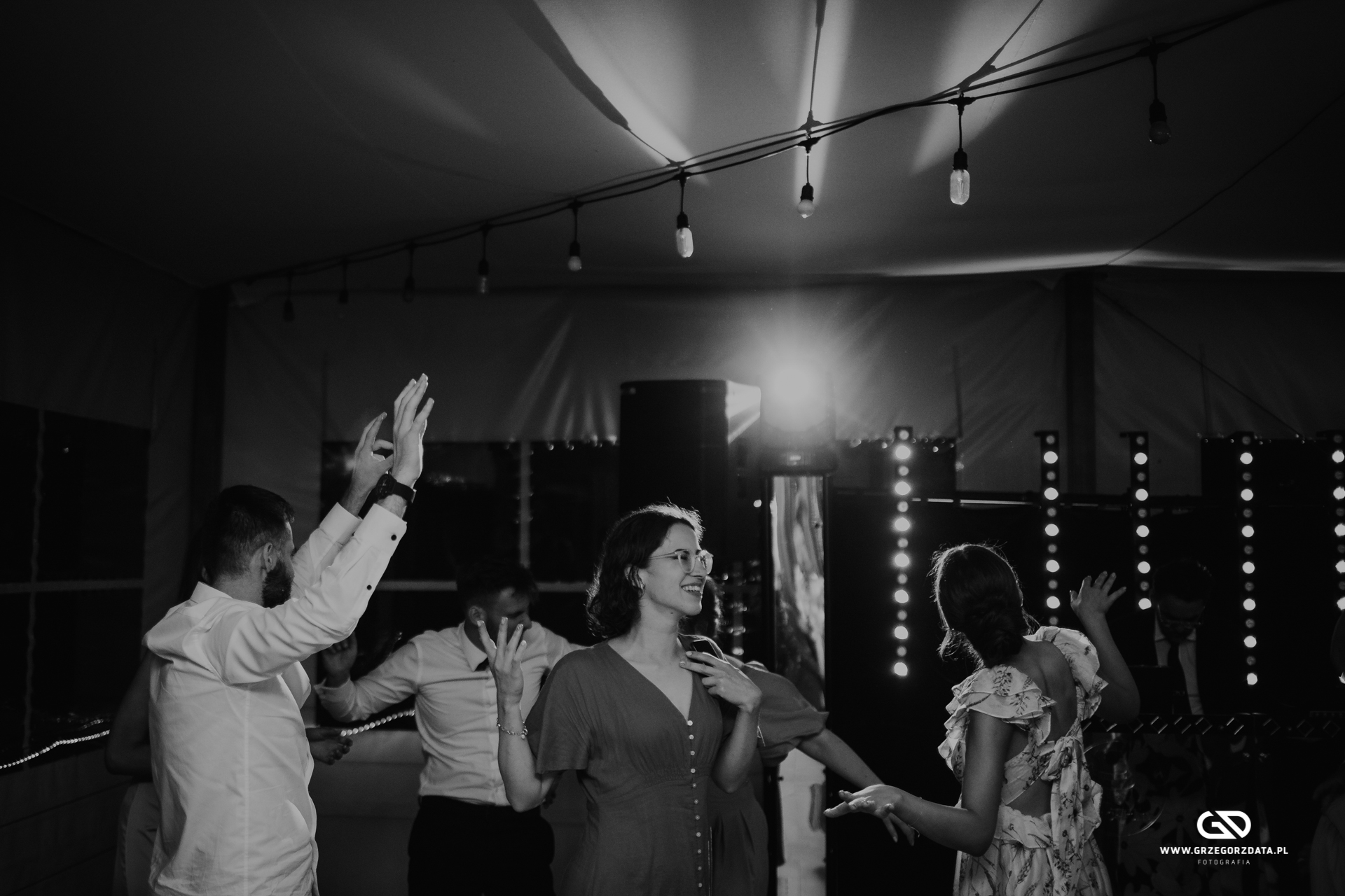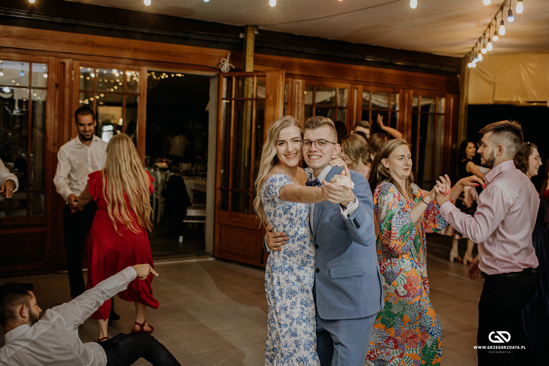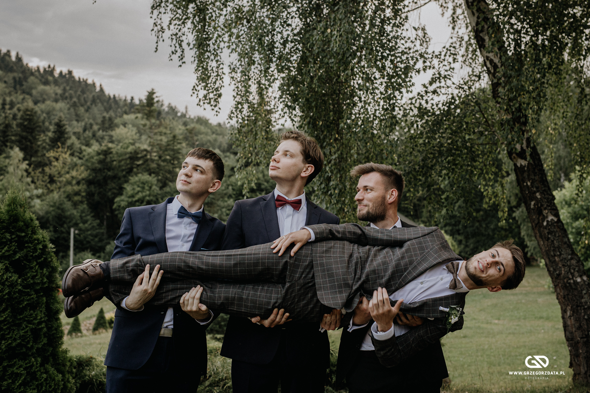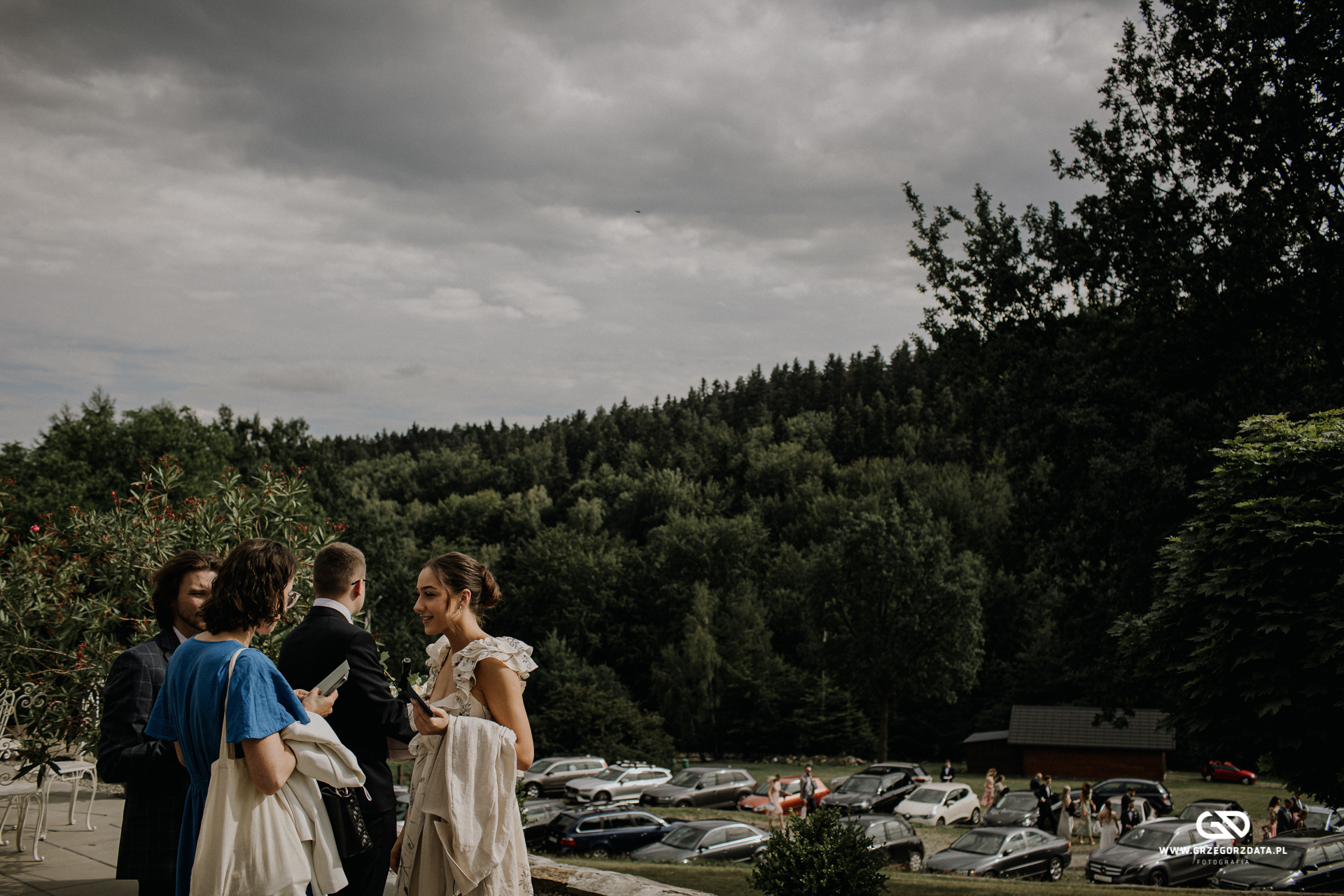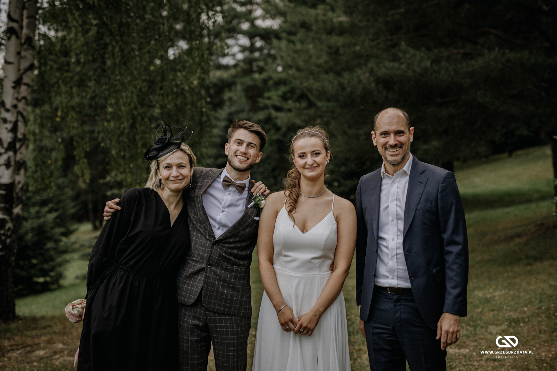 Po ślubie pora na zabawę. Uroczysko dostarczyło luźnej atmosfery – tak potrzebnej na tego typu weselach. Wszystko zgrało się idealnie, a ja dostałem od młodych tak dużą swobodę, że byłem wzruszony. Usłyszałem: “ufamy Ci w stu procentach, rób zdjęcia tak, jak czujesz” i niesionym tymi słowami postawiłem na uwiecznienie magii chwili. Bez nudnych, typowych kadrów, za to m.in. ze zdjęciami grupowymi w pięknym, zielonym otoczeniu w plenerze.