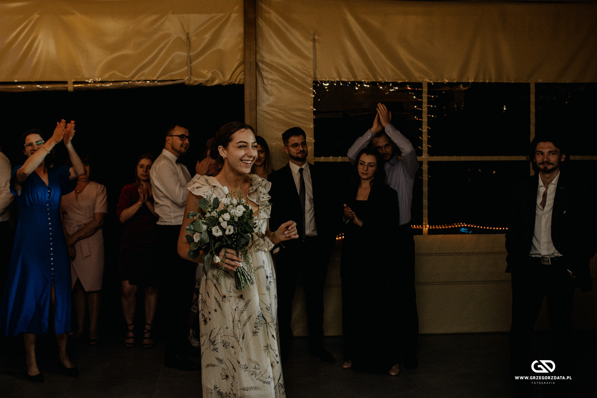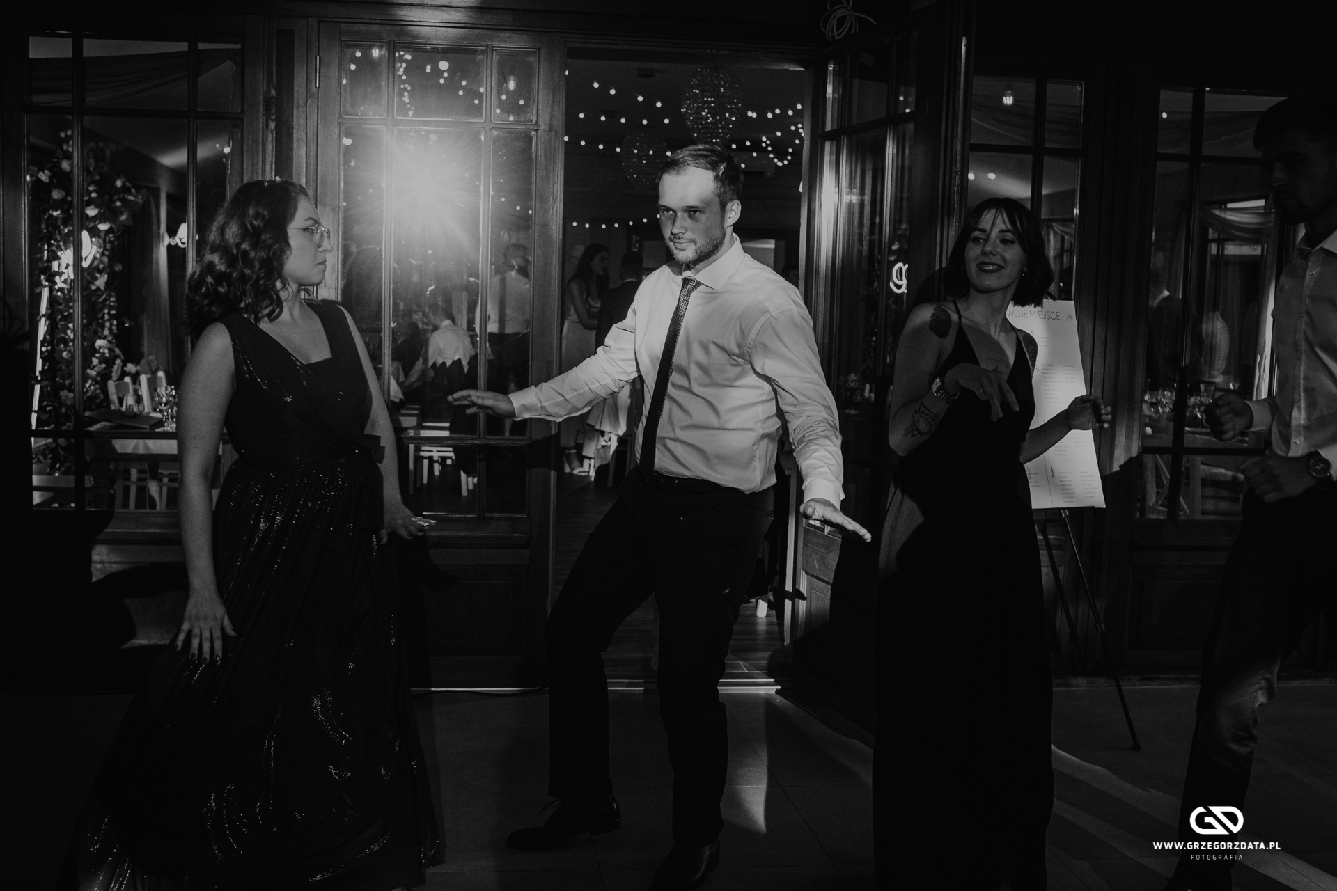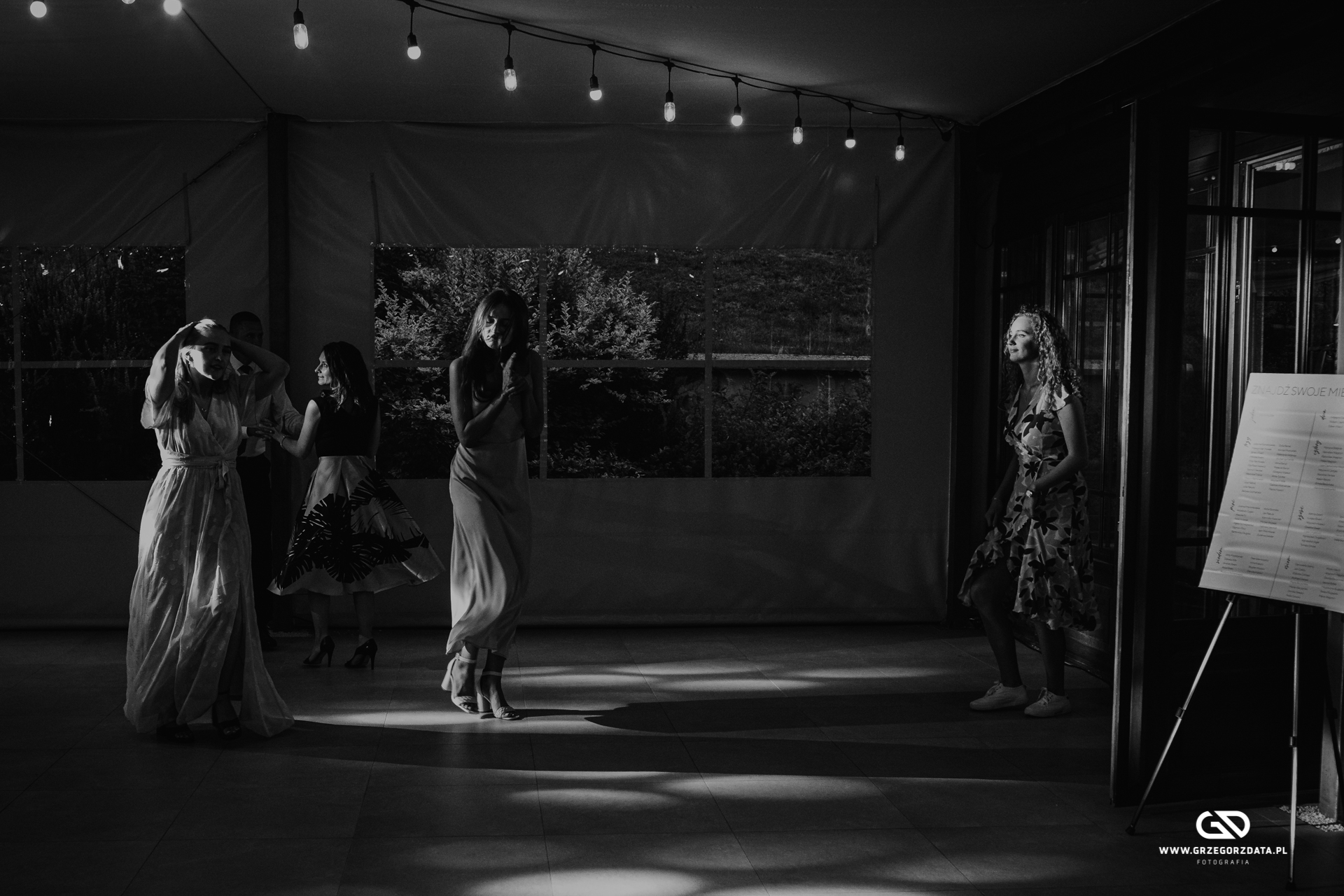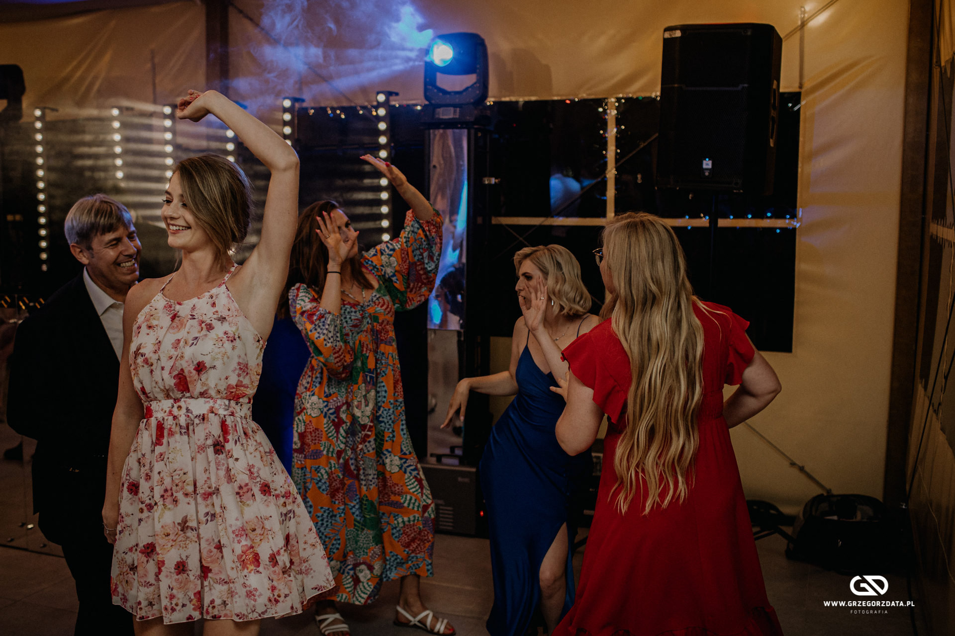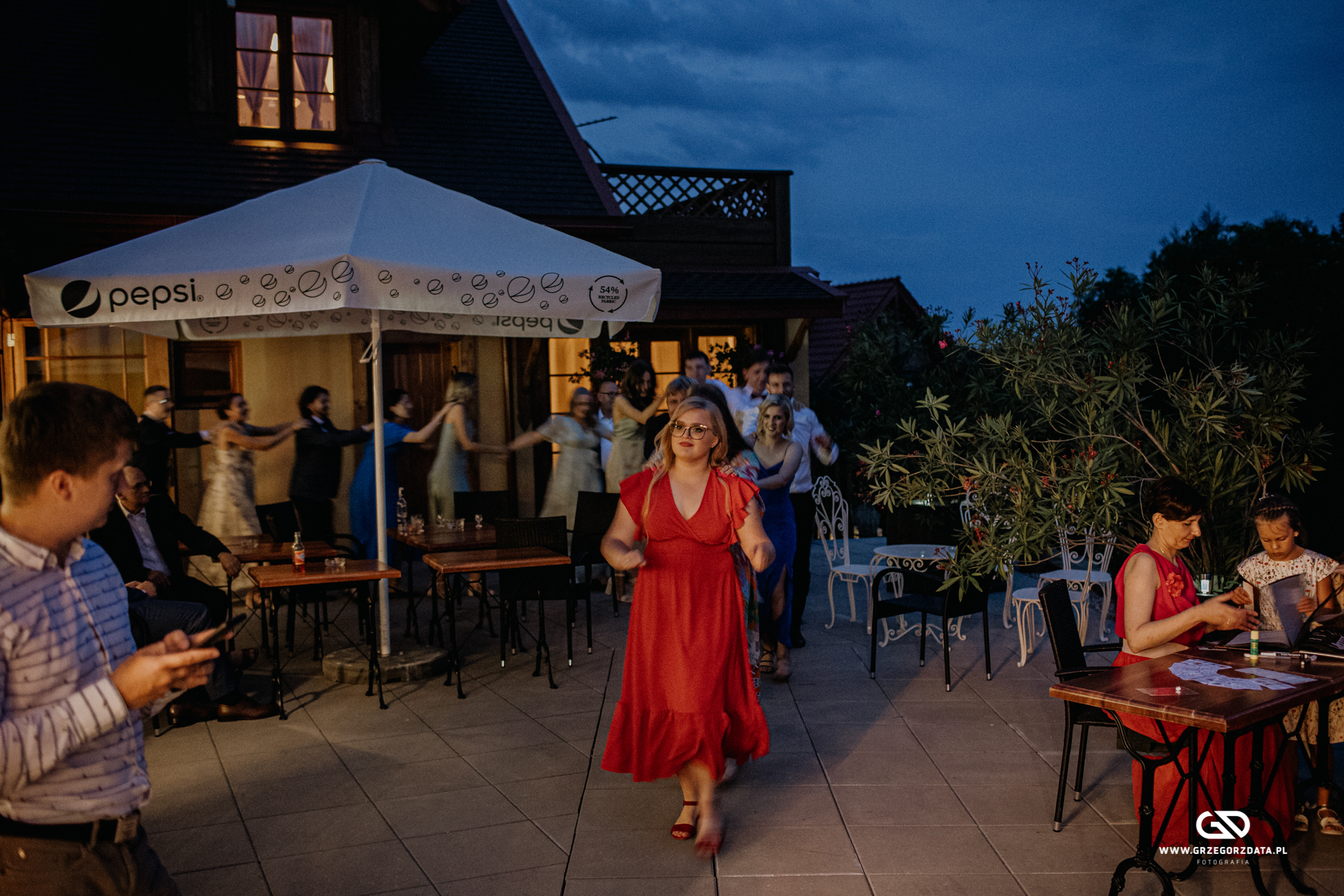 Po ślubie pora na zabawę. Uroczysko dostarczyło luźnej atmosfery – tak potrzebnej na tego typu weselach. Wszystko zgrało się idealnie, a ja dostałem od młodych tak dużą swobodę, że byłem wzruszony. Usłyszałem: “ufamy Ci w stu procentach, rób zdjęcia tak, jak czujesz” i niesionym tymi słowami postawiłem na uwiecznienie magii chwili. Bez nudnych, typowych kadrów, za to m.in. ze zdjęciami grupowymi w pięknym, zielonym otoczeniu w plenerze.