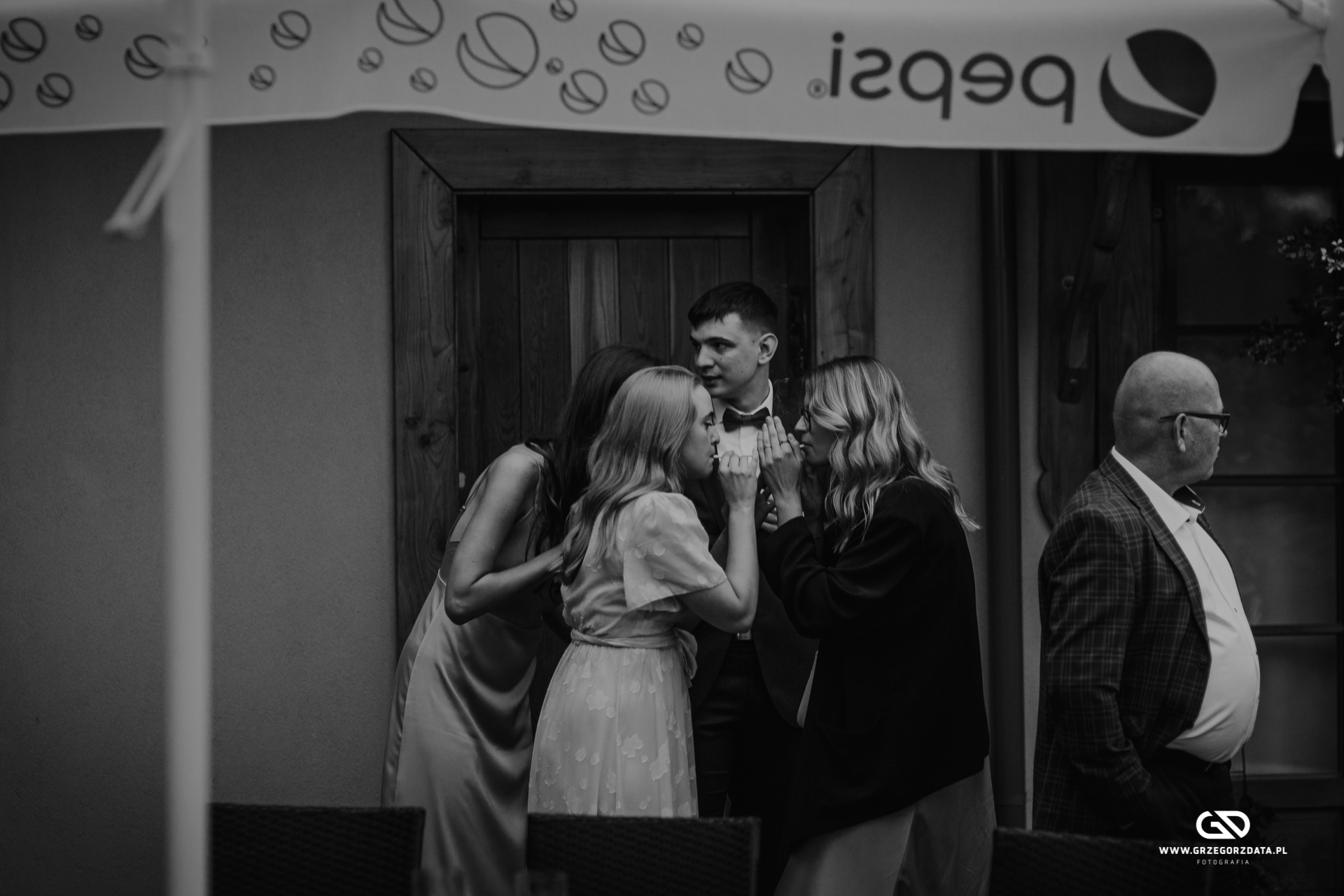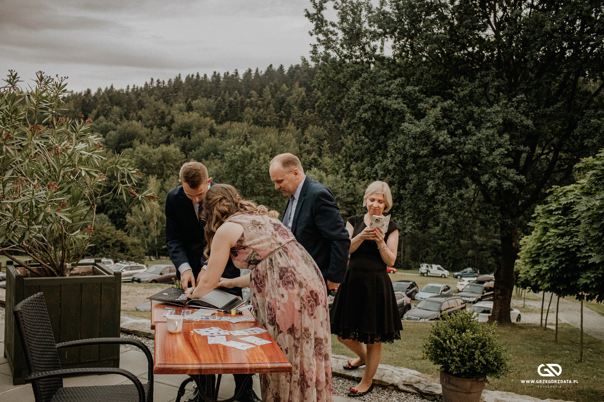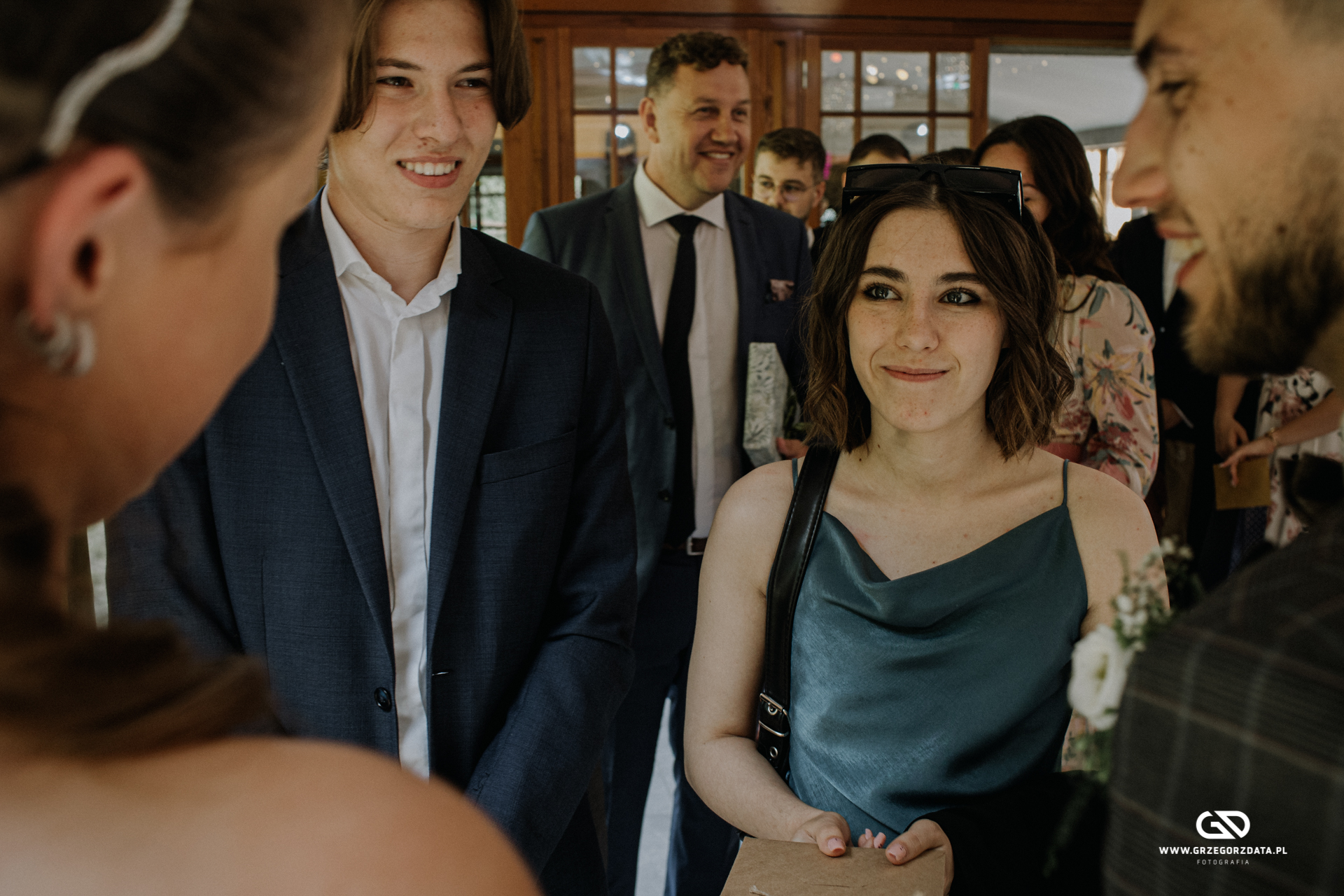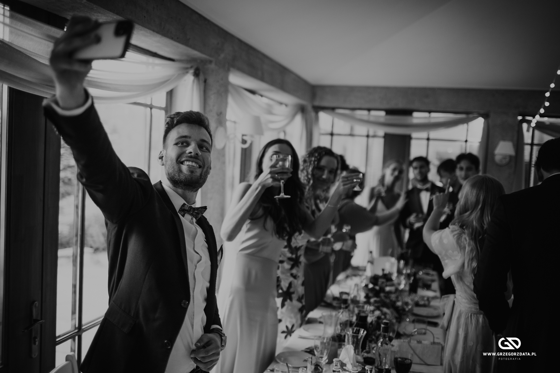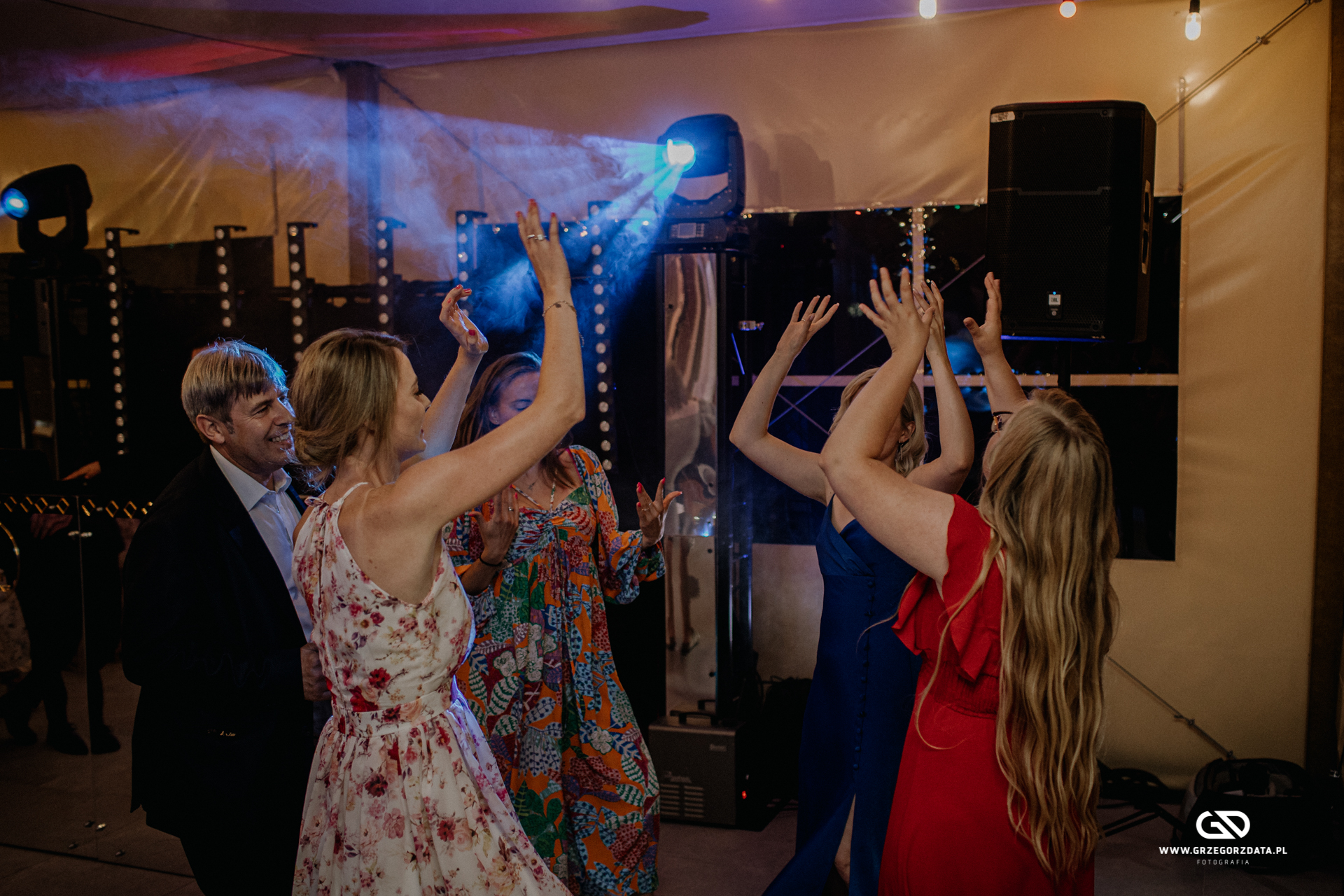 Po ślubie pora na zabawę. Uroczysko dostarczyło luźnej atmosfery – tak potrzebnej na tego typu weselach. Wszystko zgrało się idealnie, a ja dostałem od młodych tak dużą swobodę, że byłem wzruszony. Usłyszałem: “ufamy Ci w stu procentach, rób zdjęcia tak, jak czujesz” i niesionym tymi słowami postawiłem na uwiecznienie magii chwili. Bez nudnych, typowych kadrów, za to m.in. ze zdjęciami grupowymi w pięknym, zielonym otoczeniu w plenerze.