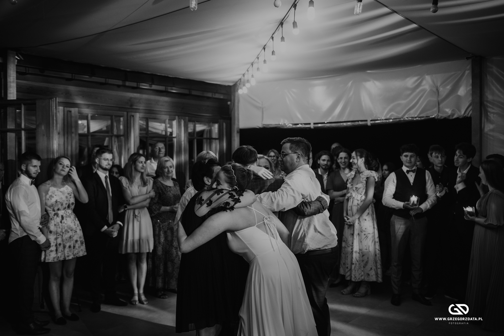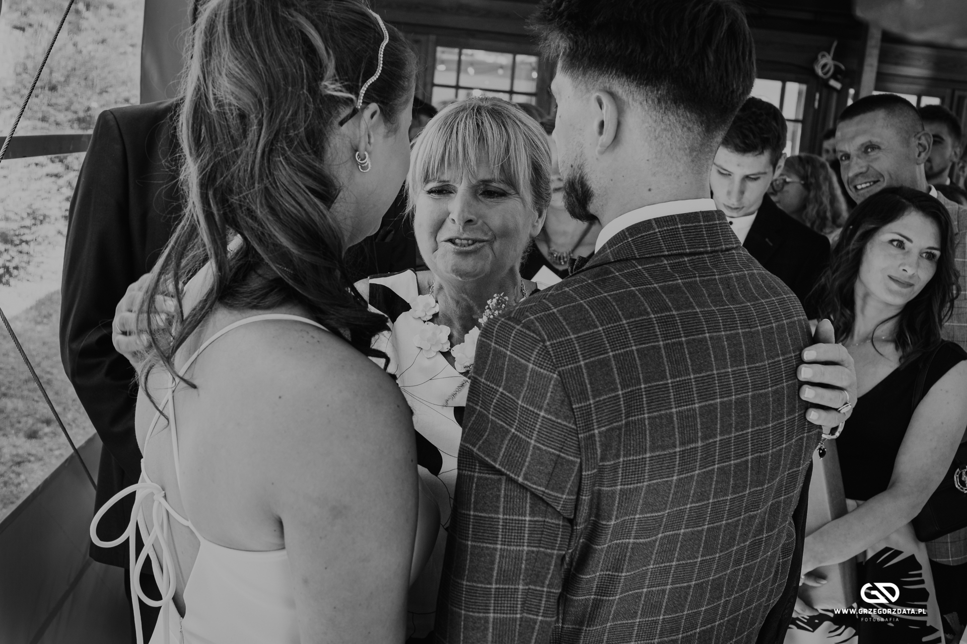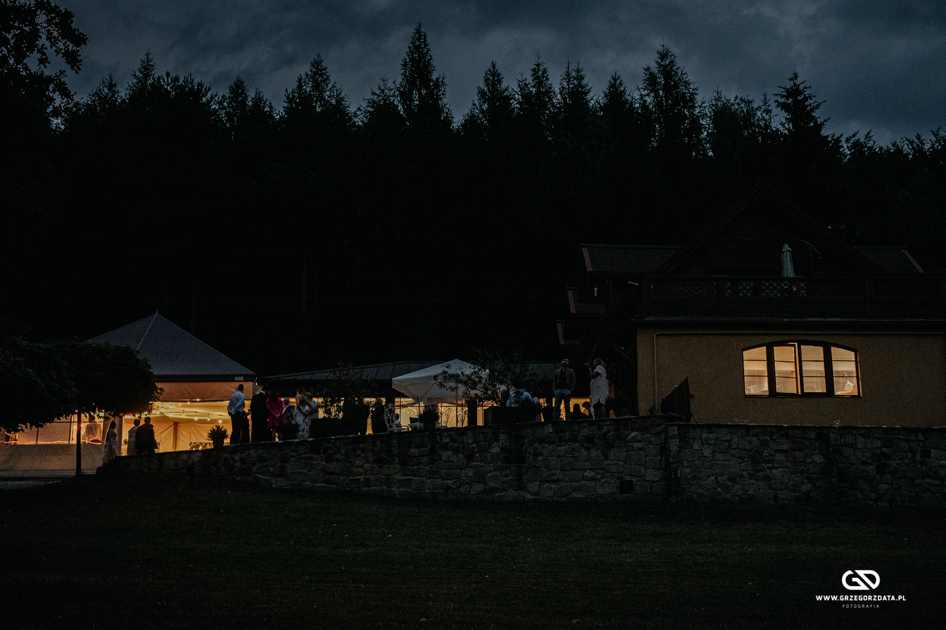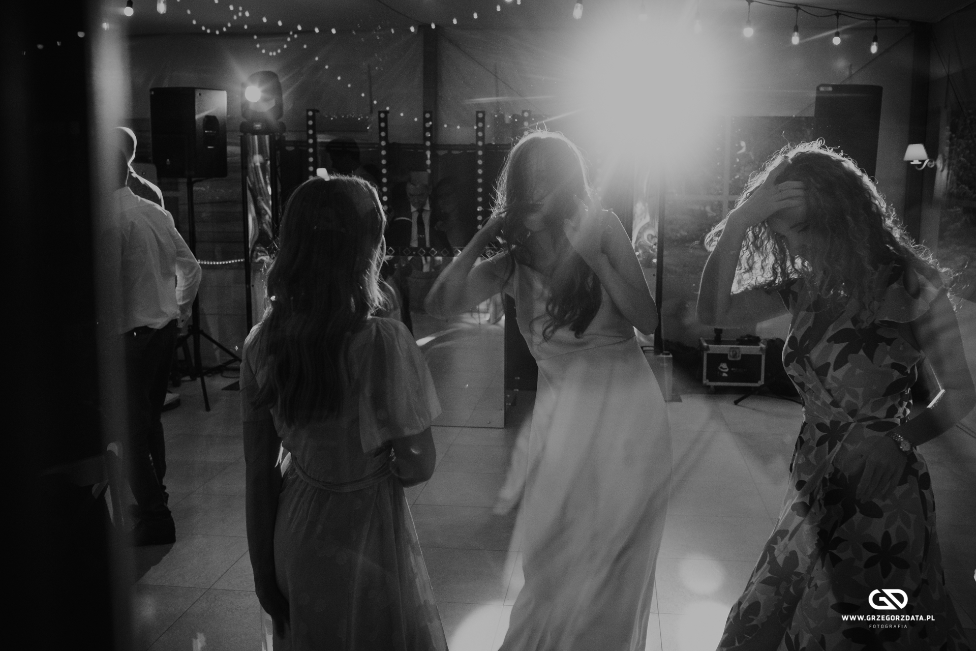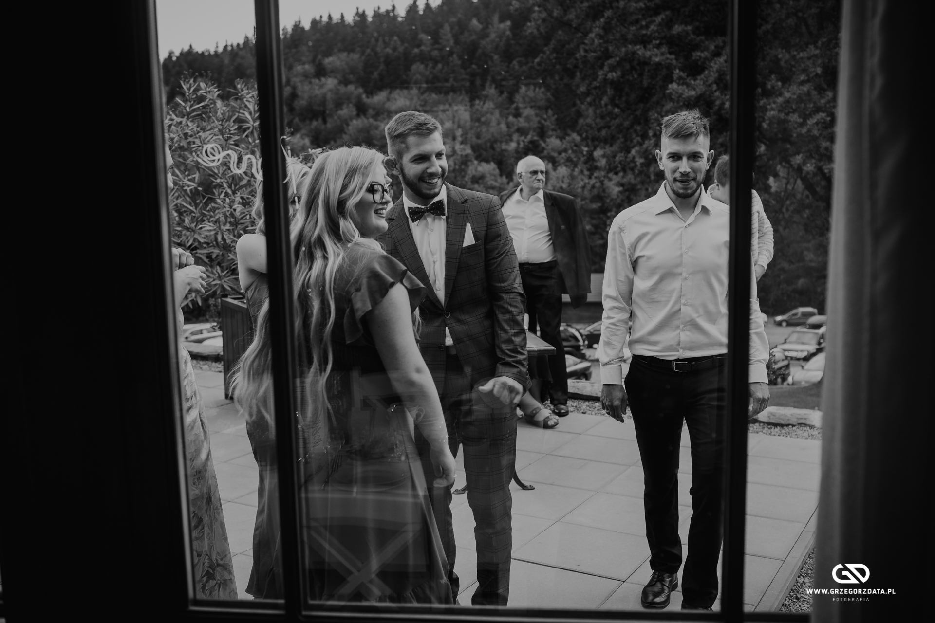 Po ślubie pora na zabawę. Uroczysko dostarczyło luźnej atmosfery – tak potrzebnej na tego typu weselach. Wszystko zgrało się idealnie, a ja dostałem od młodych tak dużą swobodę, że byłem wzruszony. Usłyszałem: “ufamy Ci w stu procentach, rób zdjęcia tak, jak czujesz” i niesionym tymi słowami postawiłem na uwiecznienie magii chwili. Bez nudnych, typowych kadrów, za to m.in. ze zdjęciami grupowymi w pięknym, zielonym otoczeniu w plenerze.