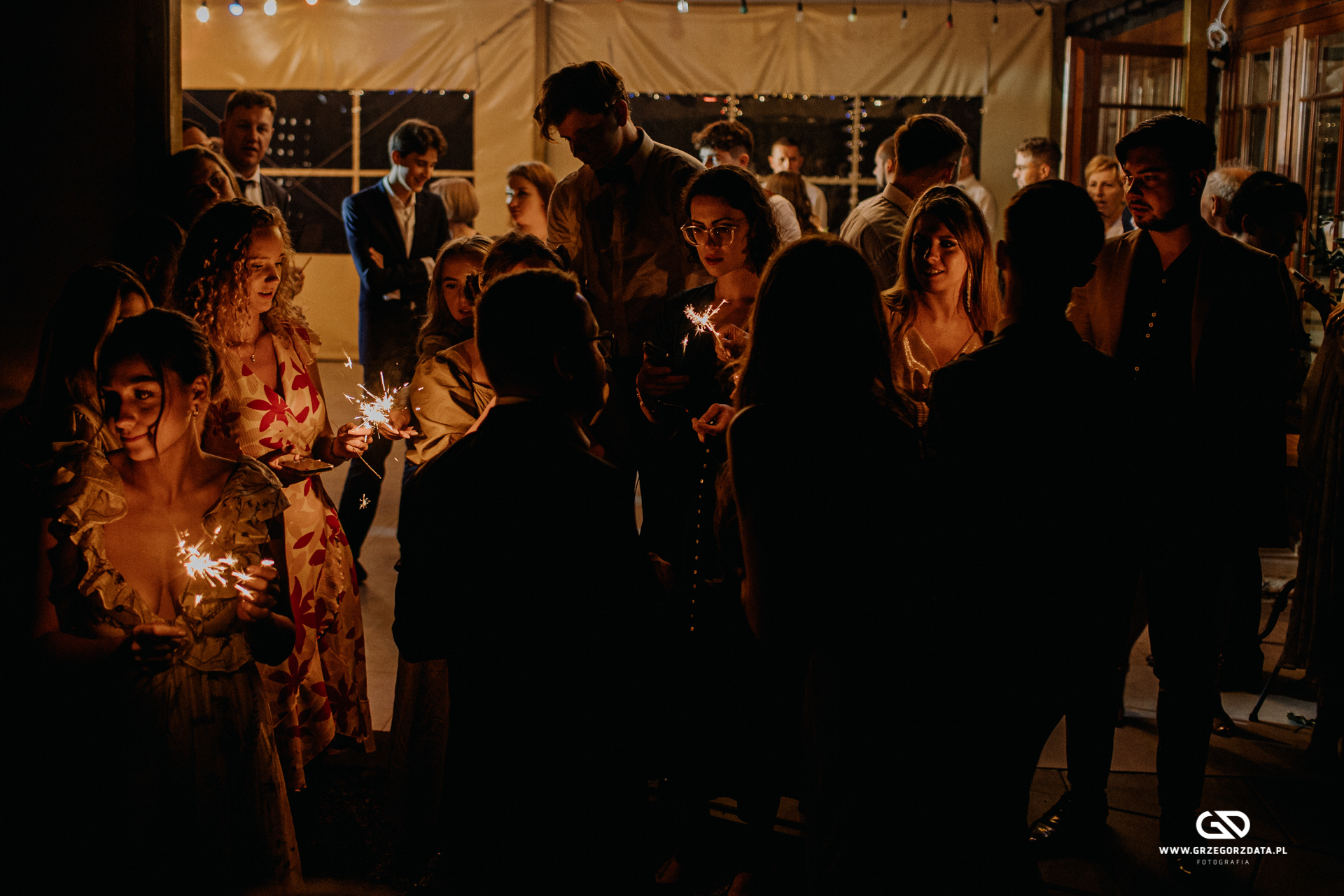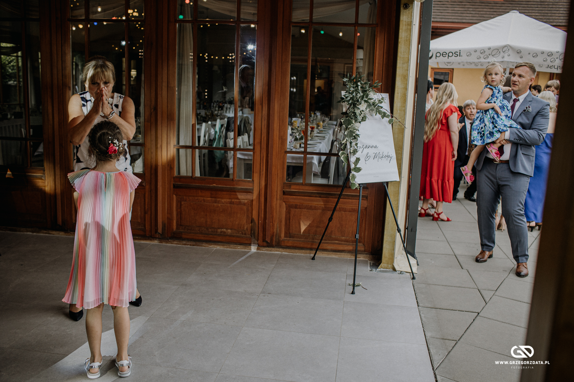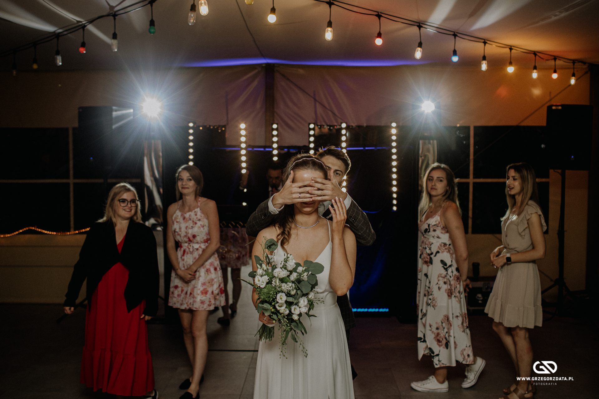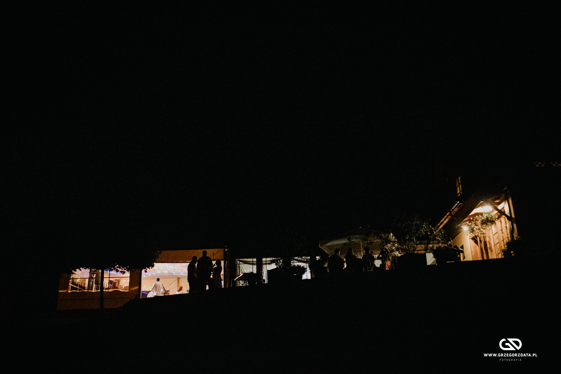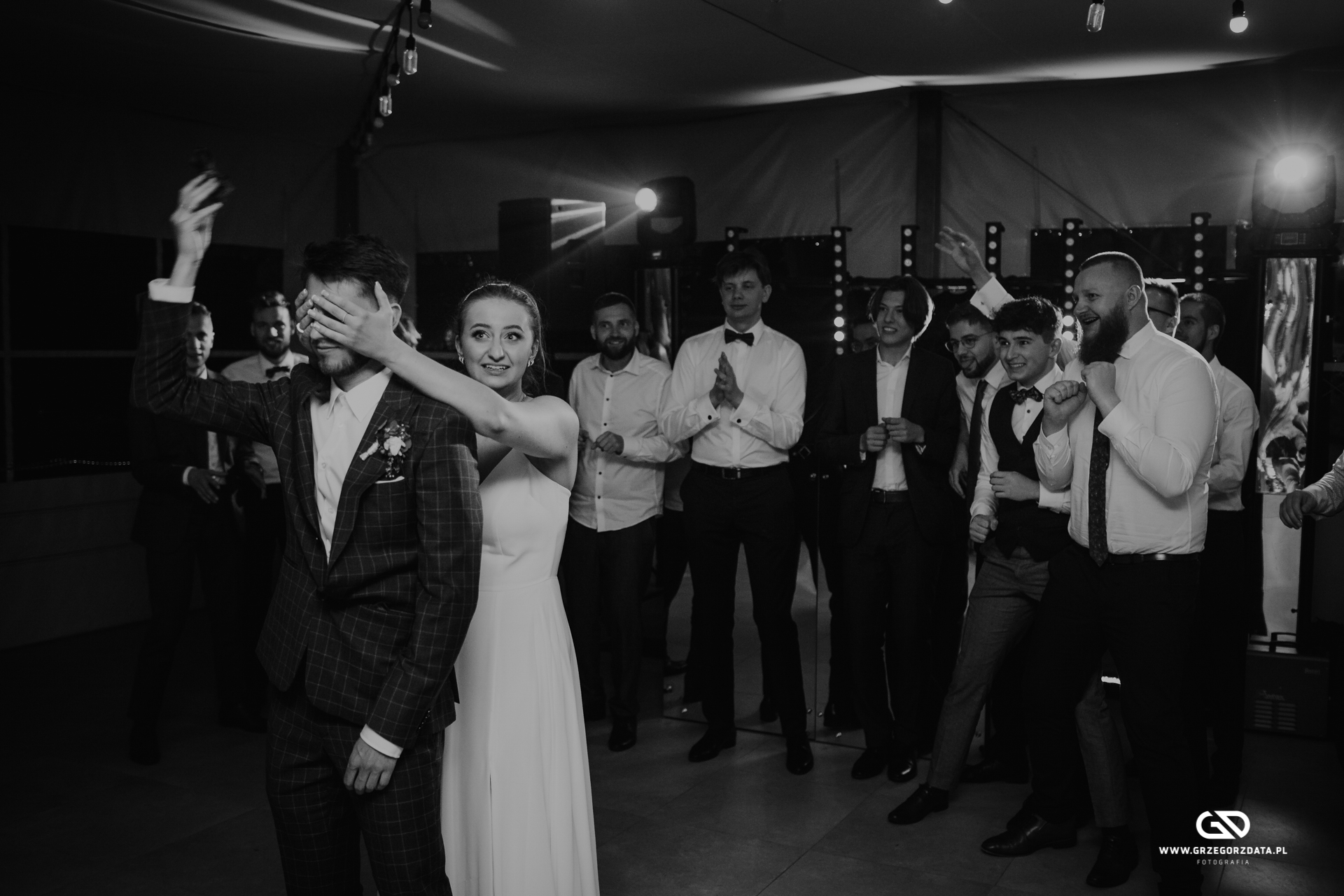 Po ślubie pora na zabawę. Uroczysko dostarczyło luźnej atmosfery – tak potrzebnej na tego typu weselach. Wszystko zgrało się idealnie, a ja dostałem od młodych tak dużą swobodę, że byłem wzruszony. Usłyszałem: “ufamy Ci w stu procentach, rób zdjęcia tak, jak czujesz” i niesionym tymi słowami postawiłem na uwiecznienie magii chwili. Bez nudnych, typowych kadrów, za to m.in. ze zdjęciami grupowymi w pięknym, zielonym otoczeniu w plenerze.