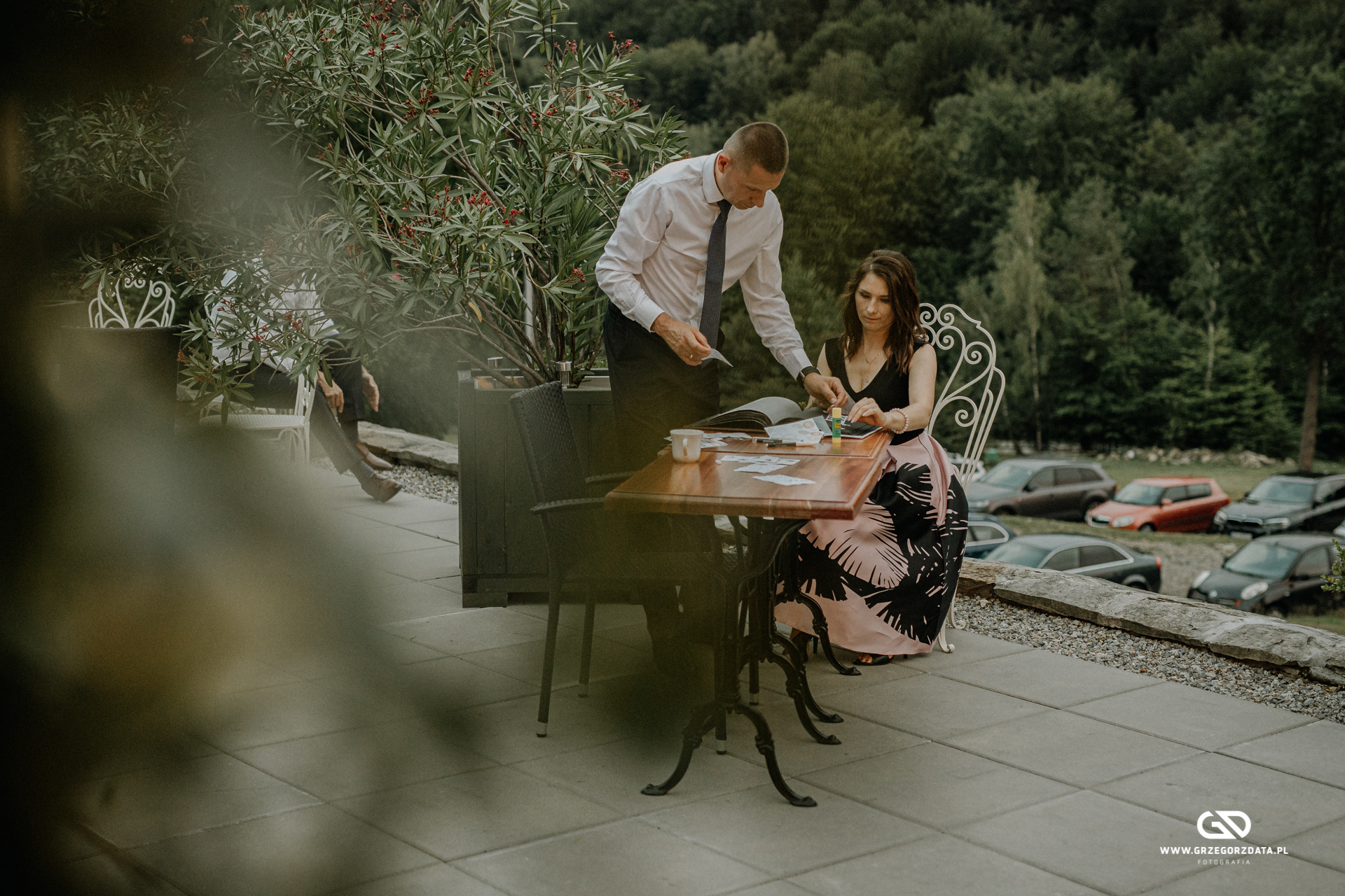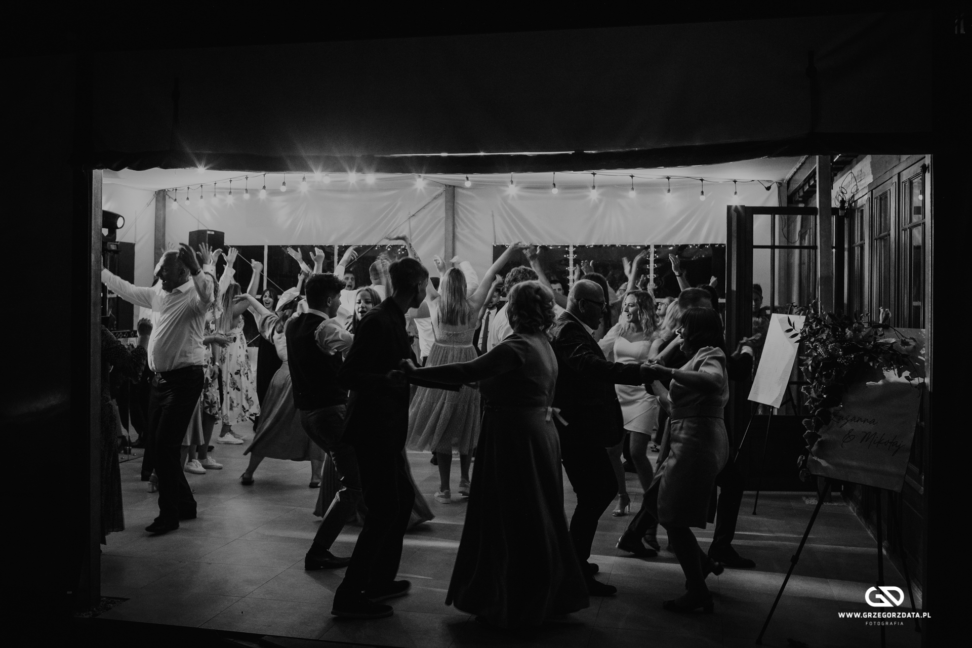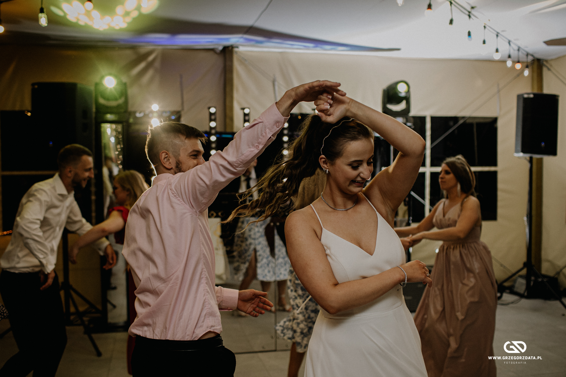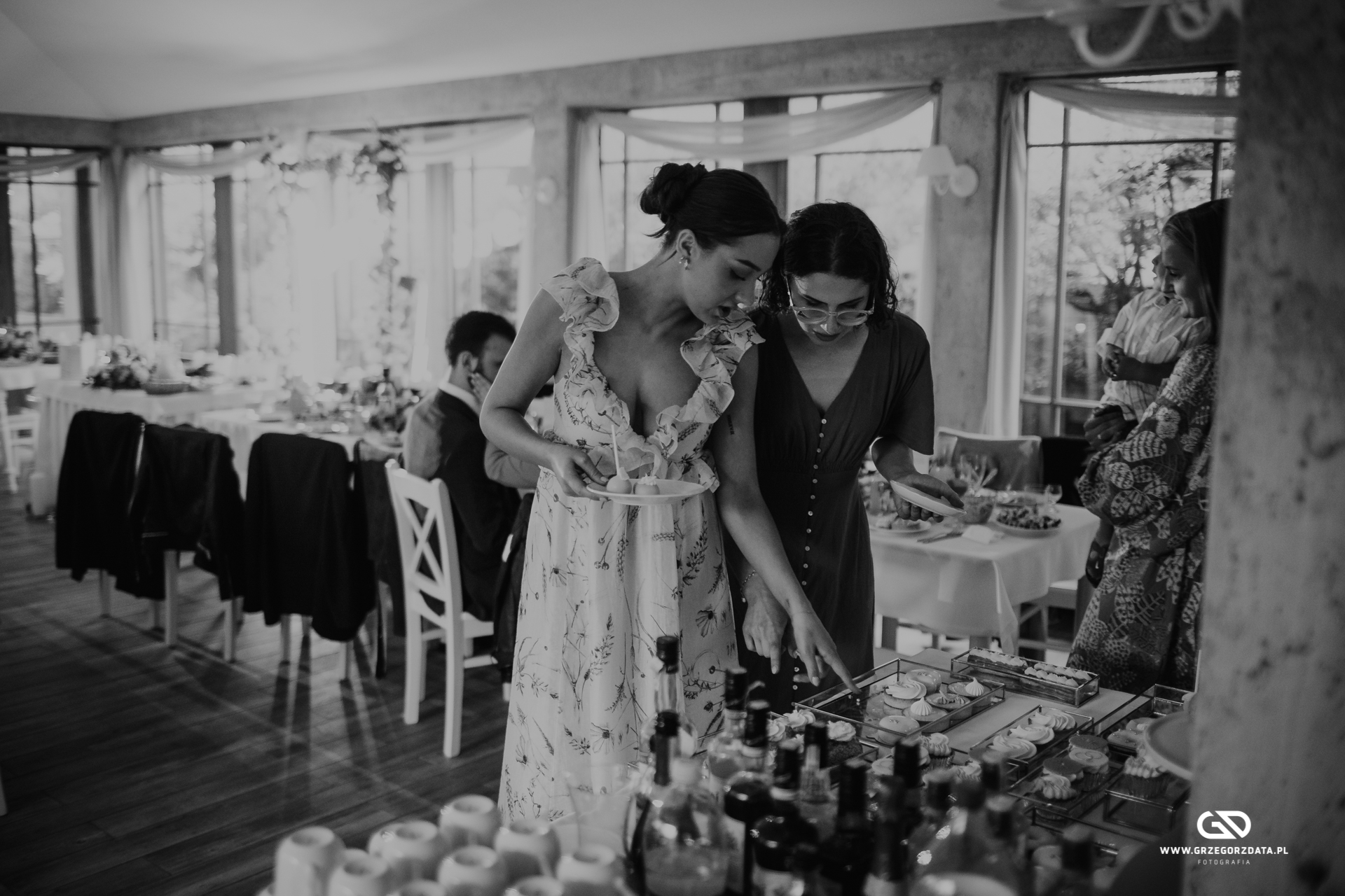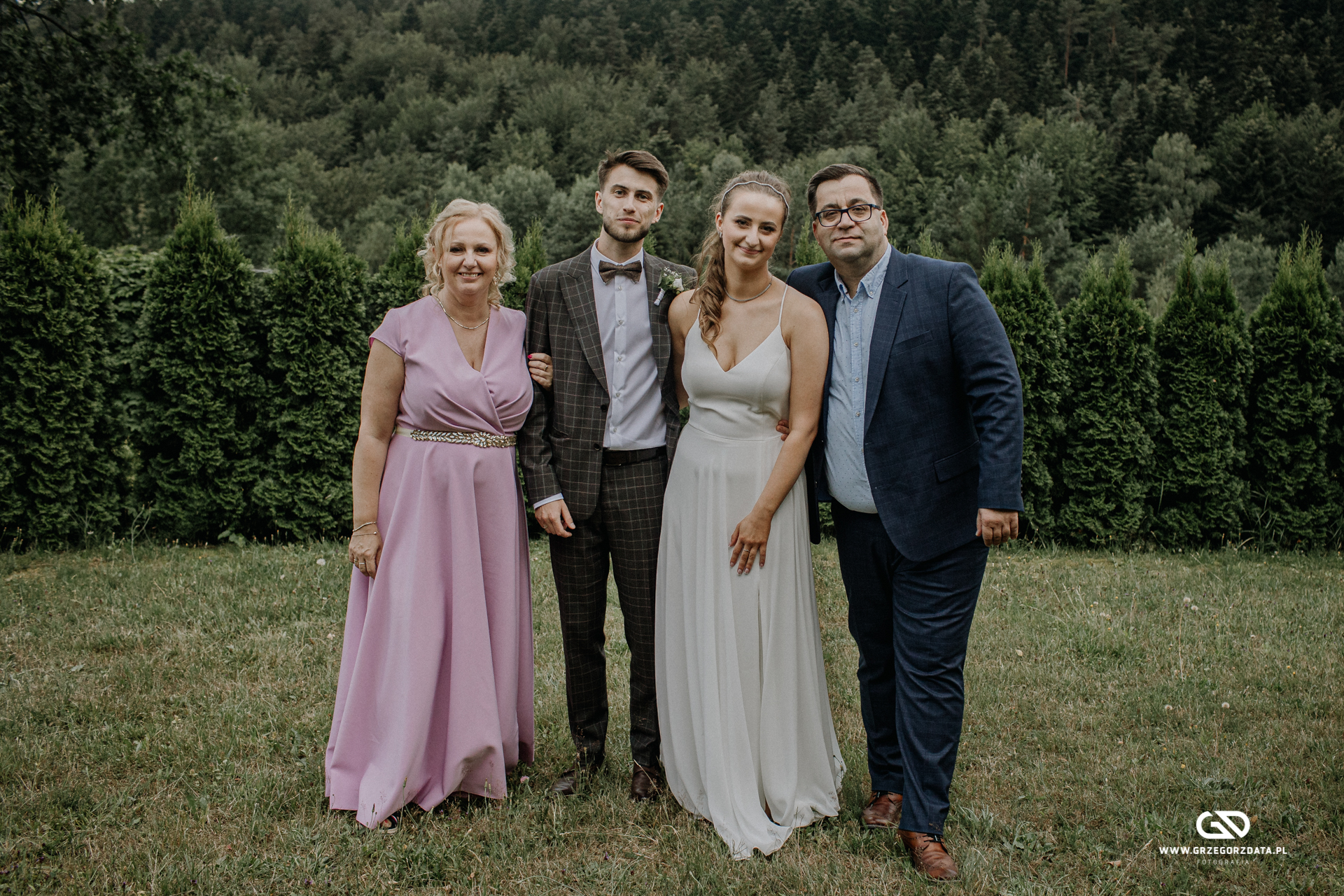Po ślubie pora na zabawę. Uroczysko dostarczyło luźnej atmosfery – tak potrzebnej na tego typu weselach. Wszystko zgrało się idealnie, a ja dostałem od młodych tak dużą swobodę, że byłem wzruszony. Usłyszałem: “ufamy Ci w stu procentach, rób zdjęcia tak, jak czujesz” i niesionym tymi słowami postawiłem na uwiecznienie magii chwili. Bez nudnych, typowych kadrów, za to m.in. ze zdjęciami grupowymi w pięknym, zielonym otoczeniu w plenerze.