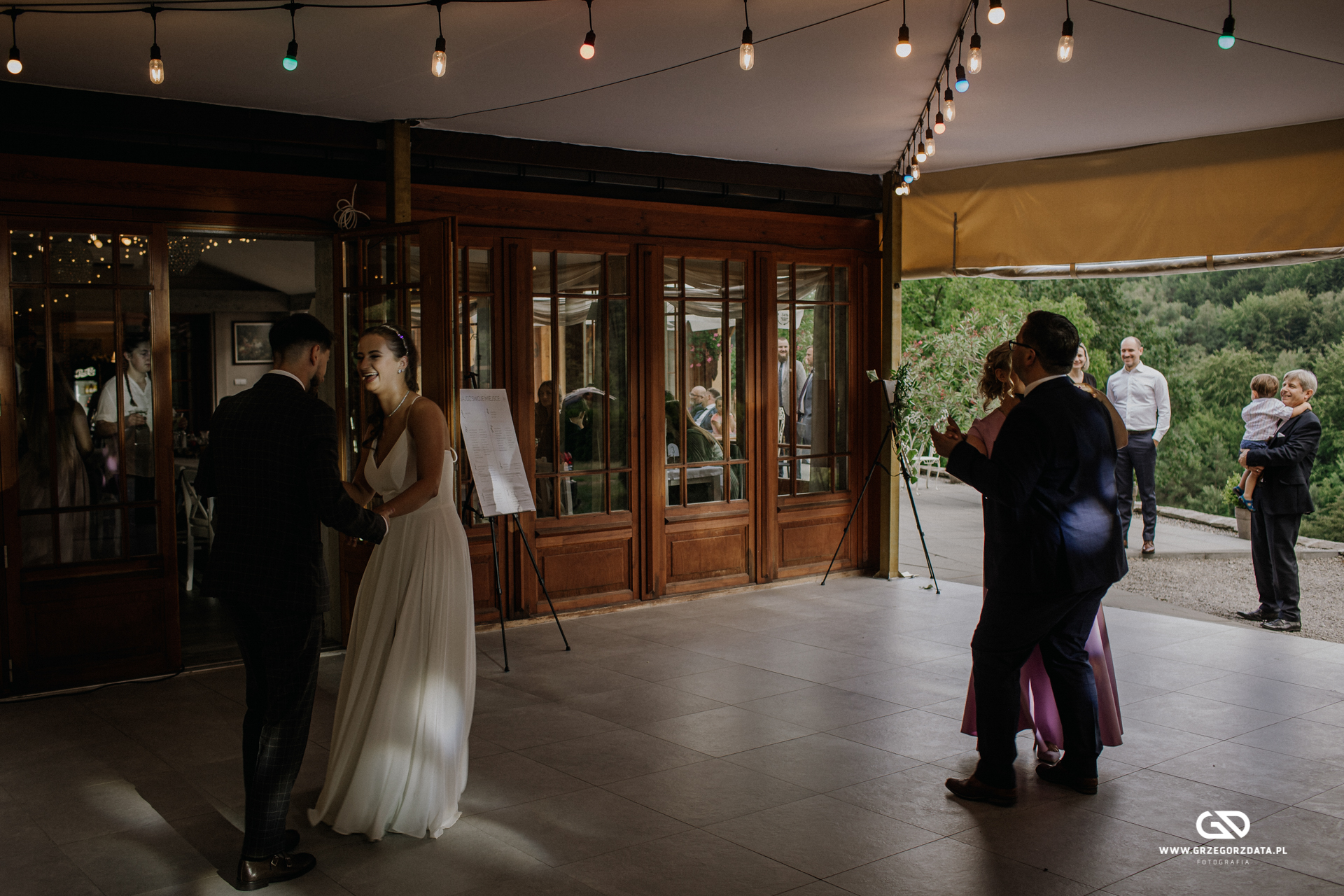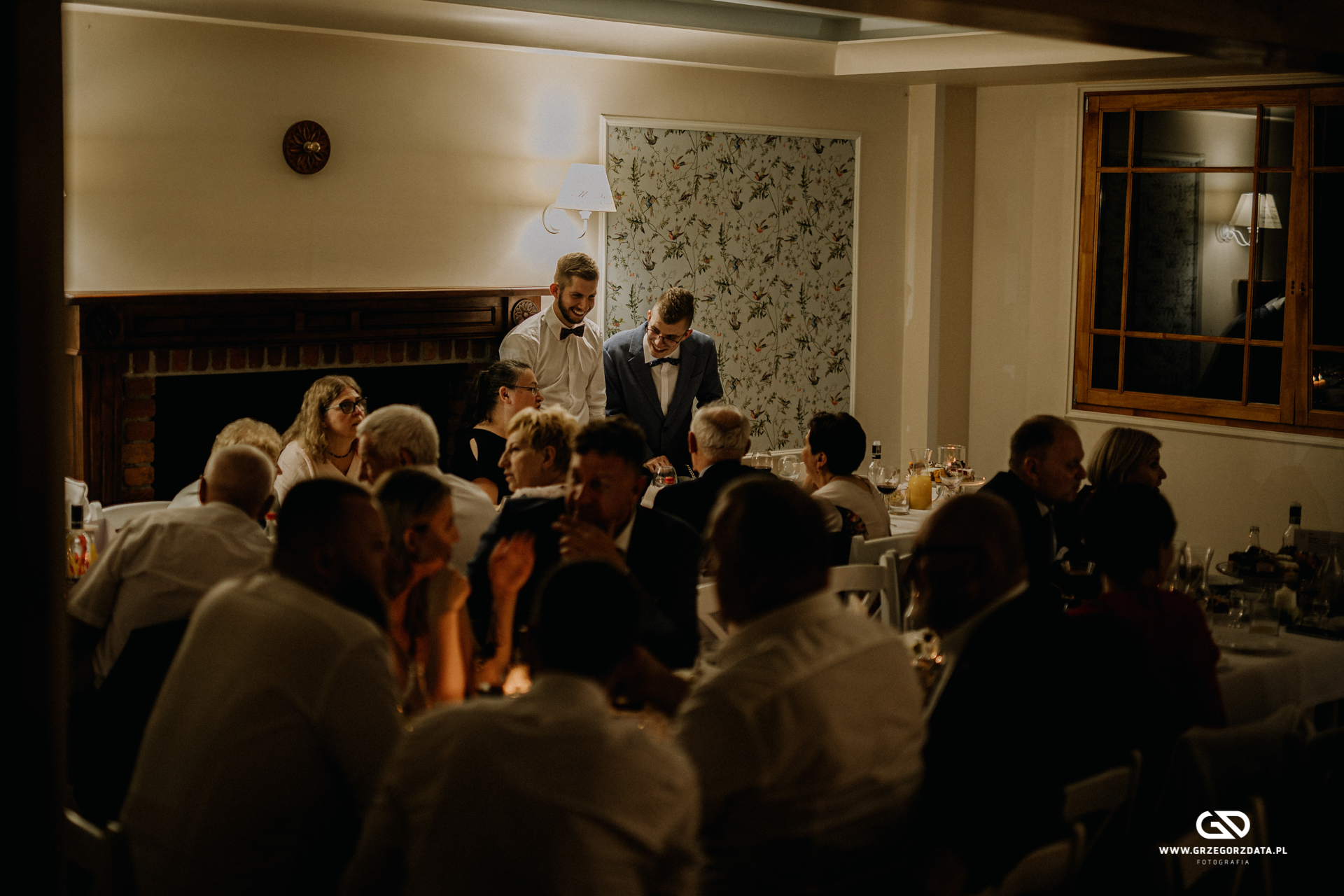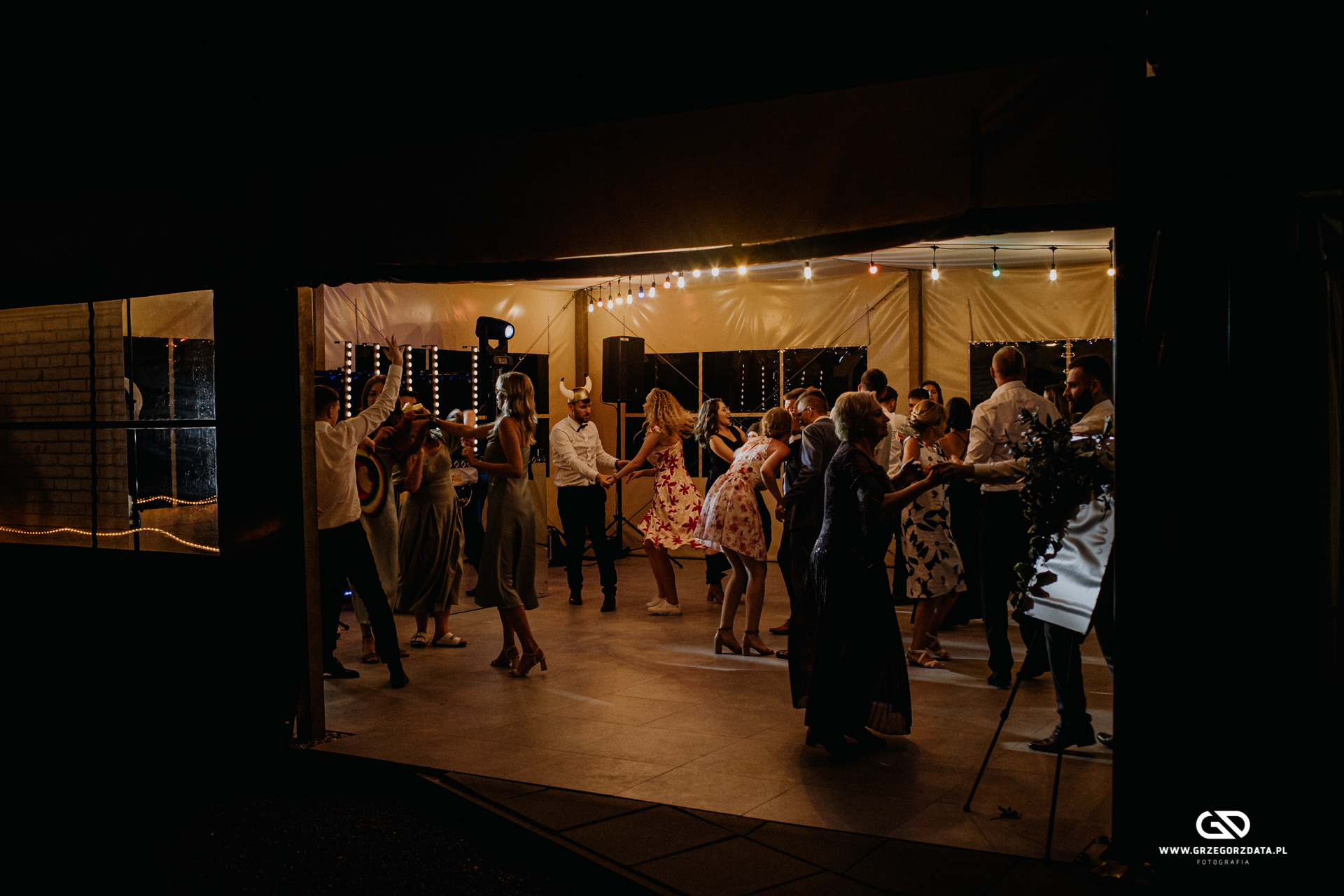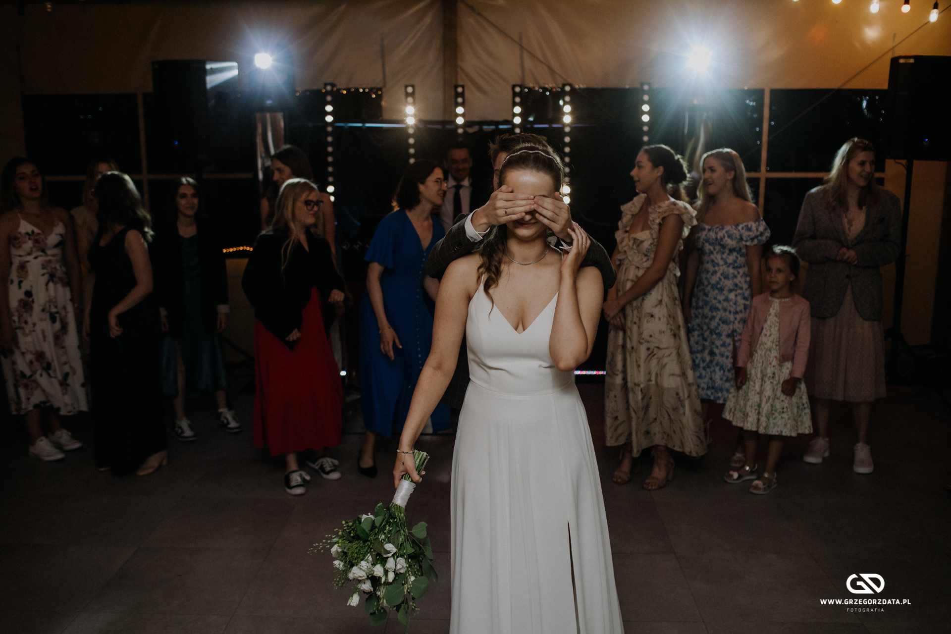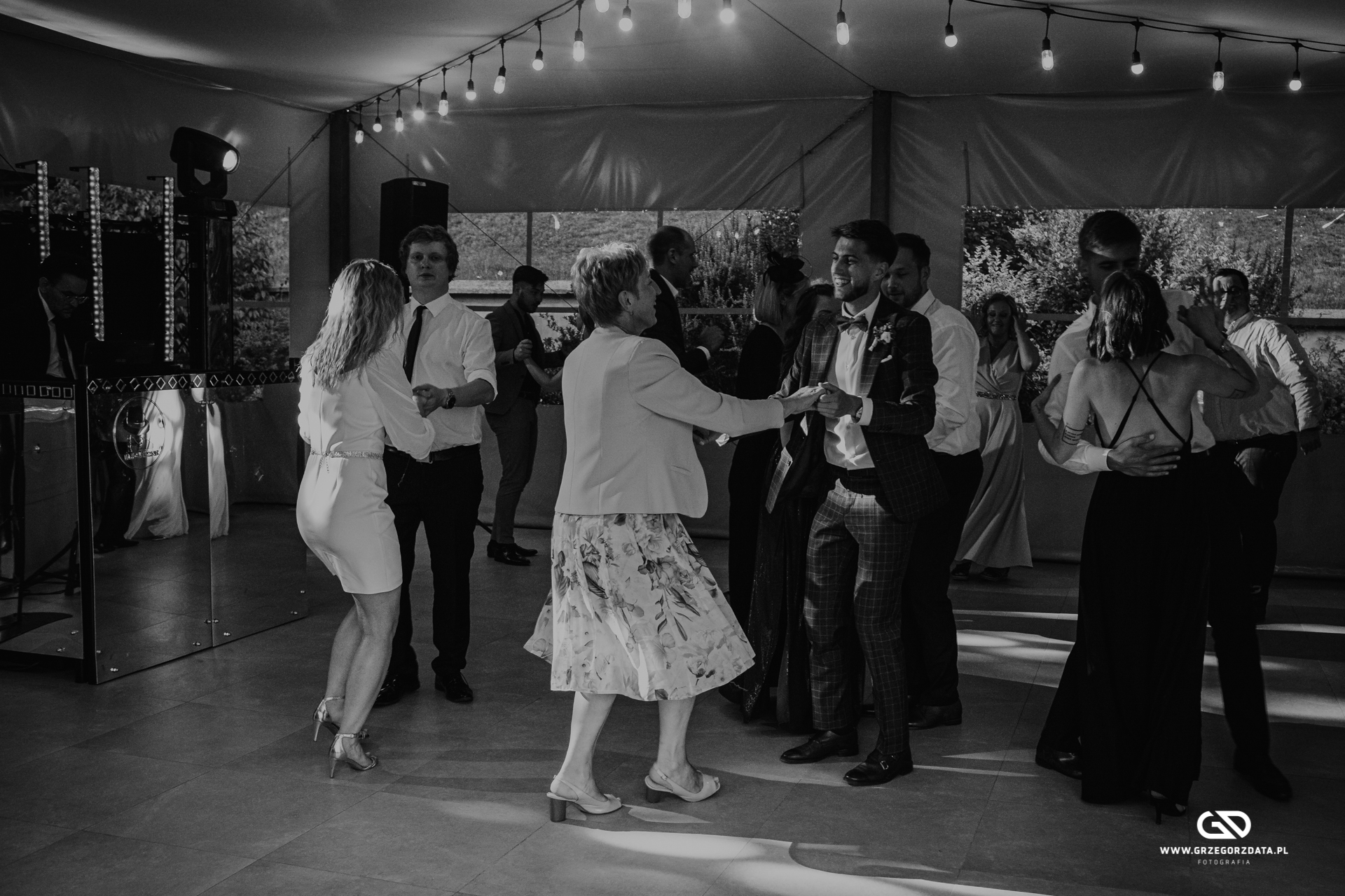 Po ślubie pora na zabawę. Uroczysko dostarczyło luźnej atmosfery – tak potrzebnej na tego typu weselach. Wszystko zgrało się idealnie, a ja dostałem od młodych tak dużą swobodę, że byłem wzruszony. Usłyszałem: “ufamy Ci w stu procentach, rób zdjęcia tak, jak czujesz” i niesionym tymi słowami postawiłem na uwiecznienie magii chwili. Bez nudnych, typowych kadrów, za to m.in. ze zdjęciami grupowymi w pięknym, zielonym otoczeniu w plenerze.