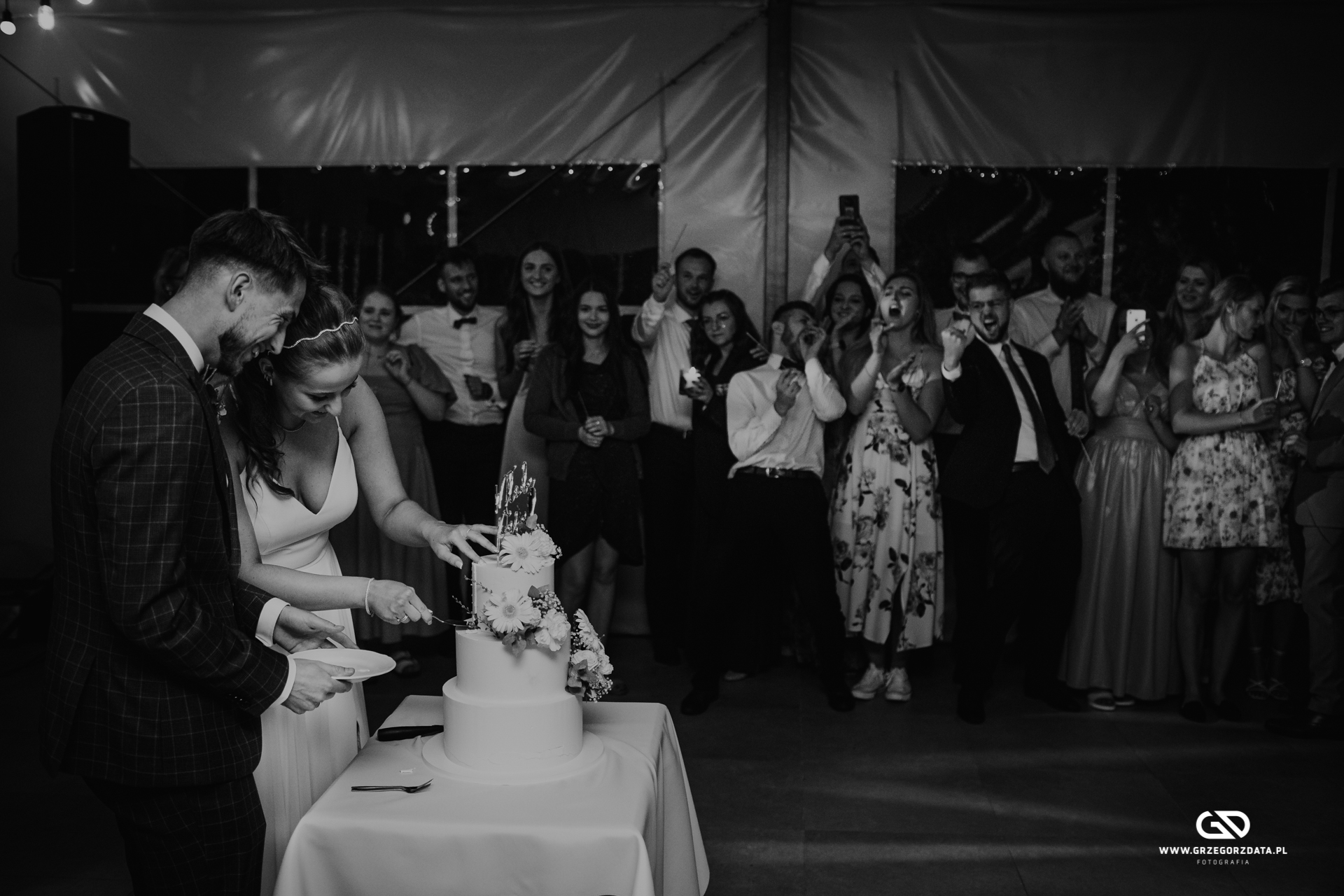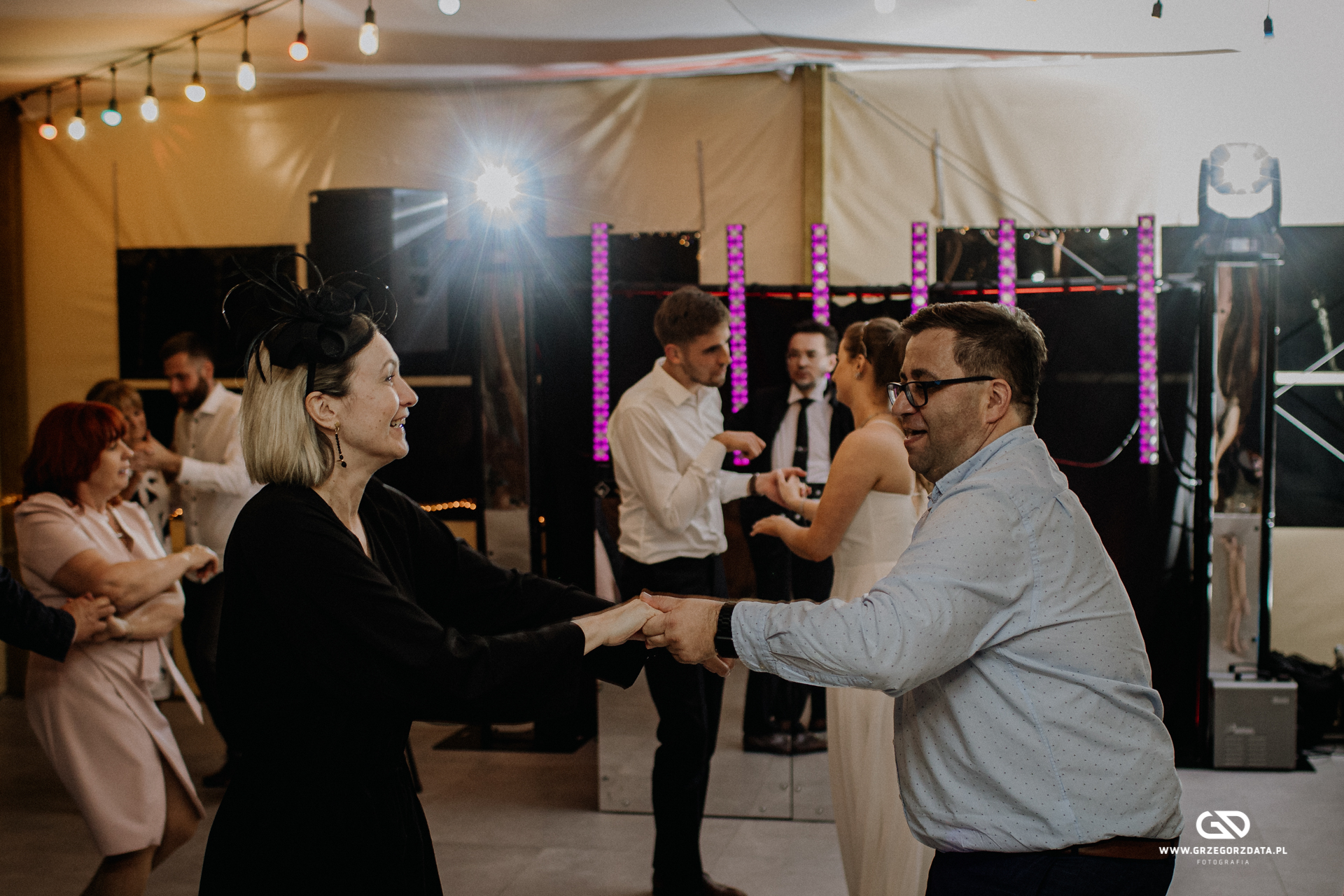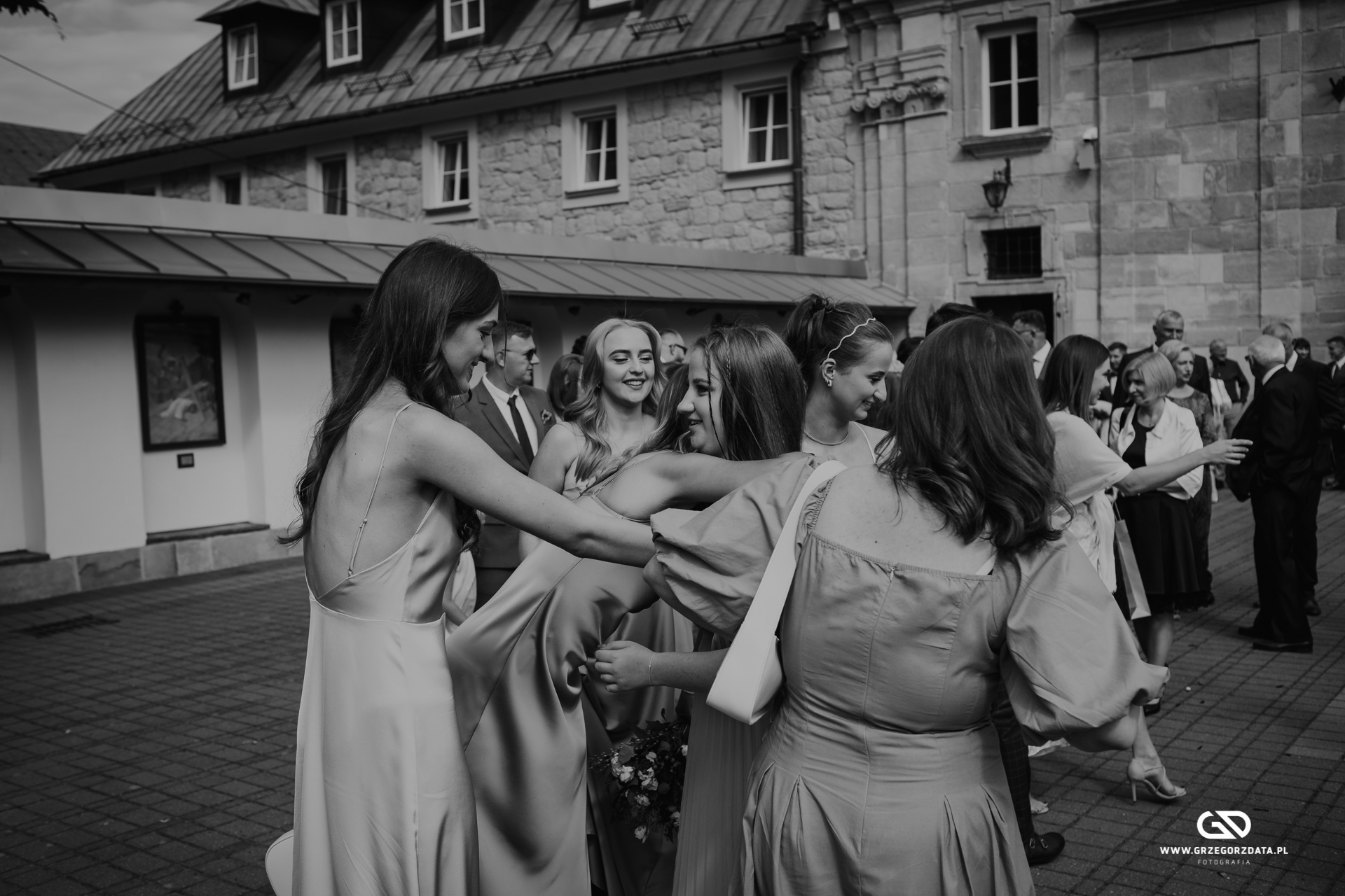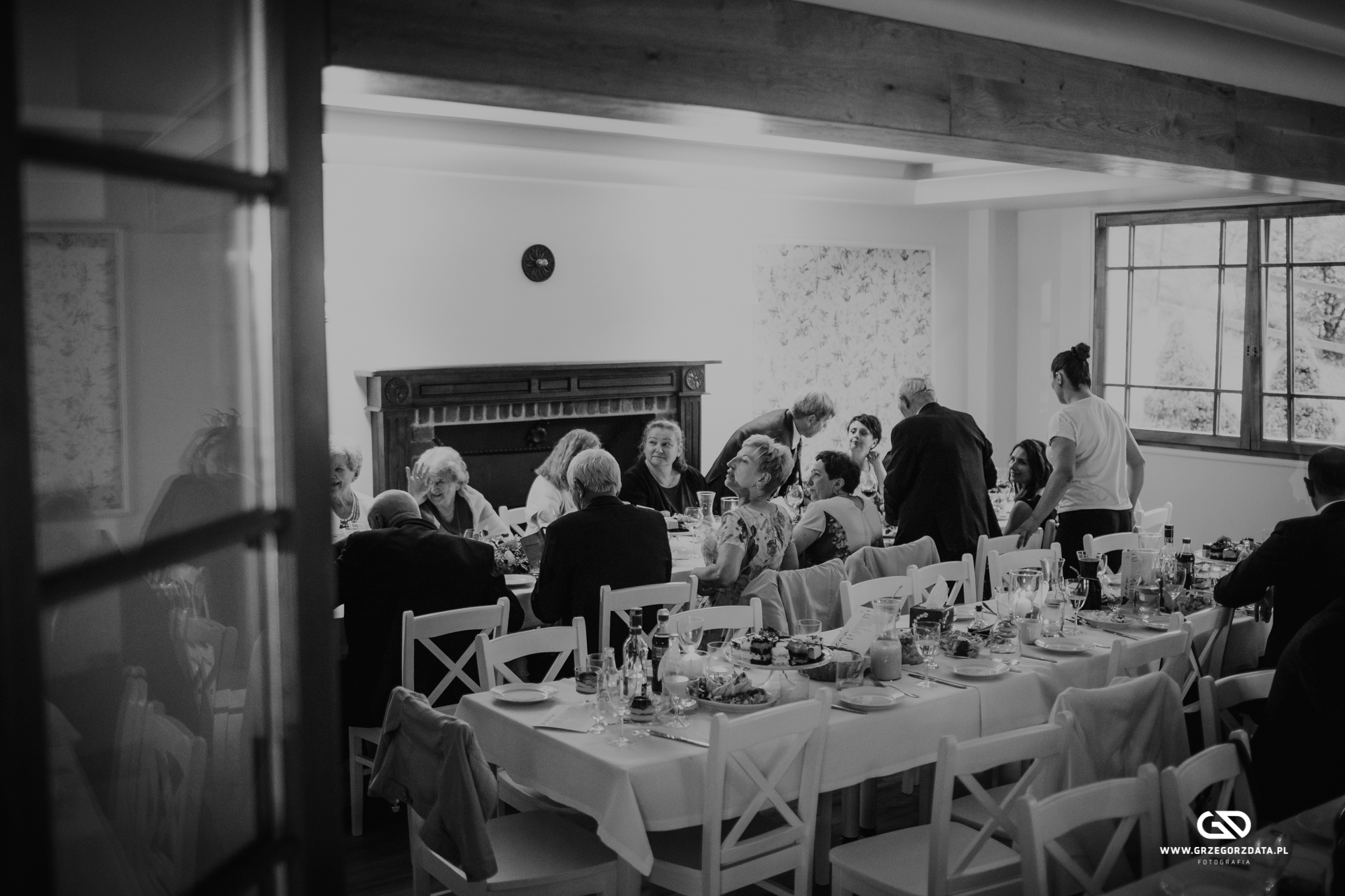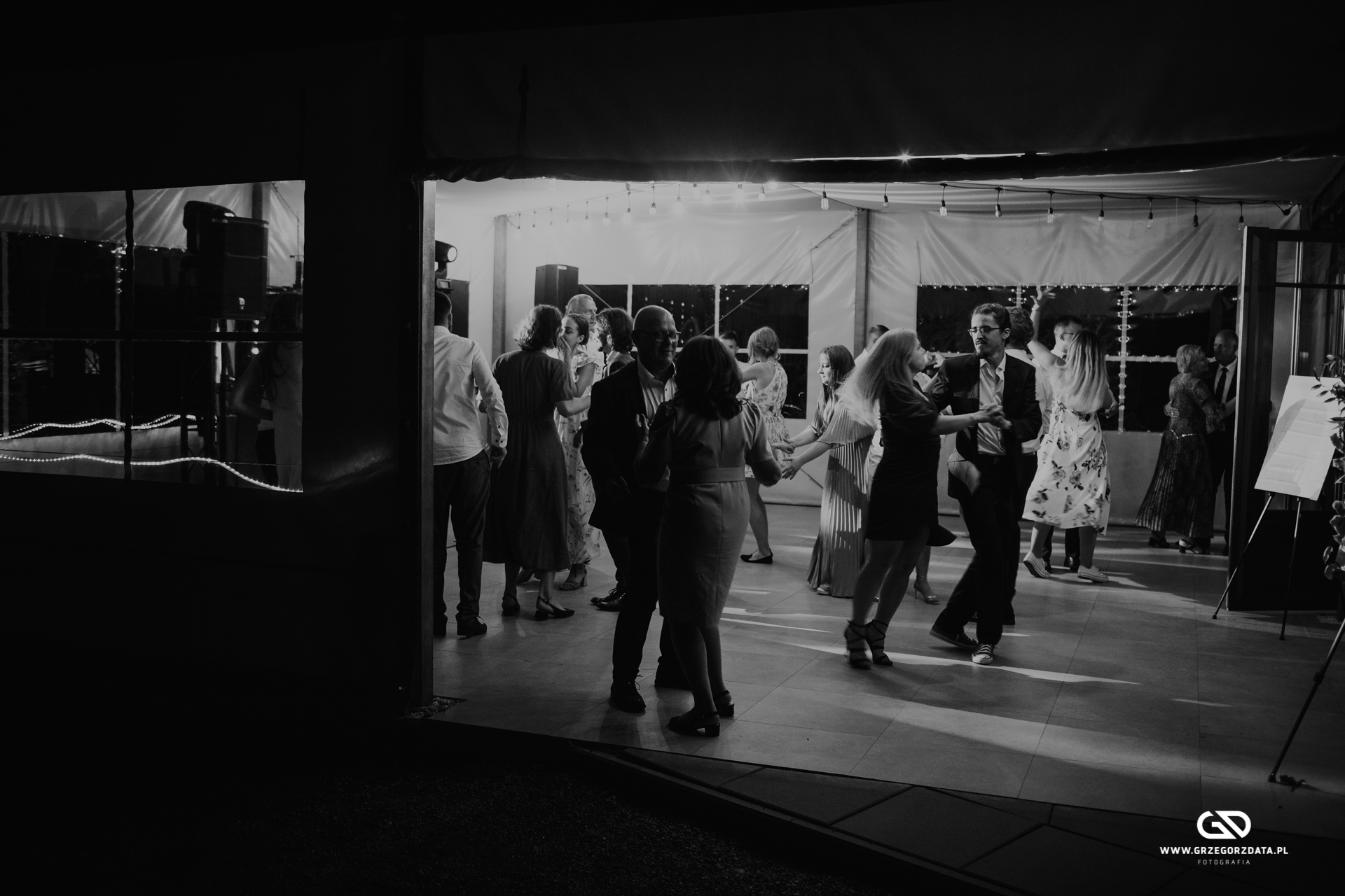 Po ślubie pora na zabawę. Uroczysko dostarczyło luźnej atmosfery – tak potrzebnej na tego typu weselach. Wszystko zgrało się idealnie, a ja dostałem od młodych tak dużą swobodę, że byłem wzruszony. Usłyszałem: “ufamy Ci w stu procentach, rób zdjęcia tak, jak czujesz” i niesionym tymi słowami postawiłem na uwiecznienie magii chwili. Bez nudnych, typowych kadrów, za to m.in. ze zdjęciami grupowymi w pięknym, zielonym otoczeniu w plenerze.
