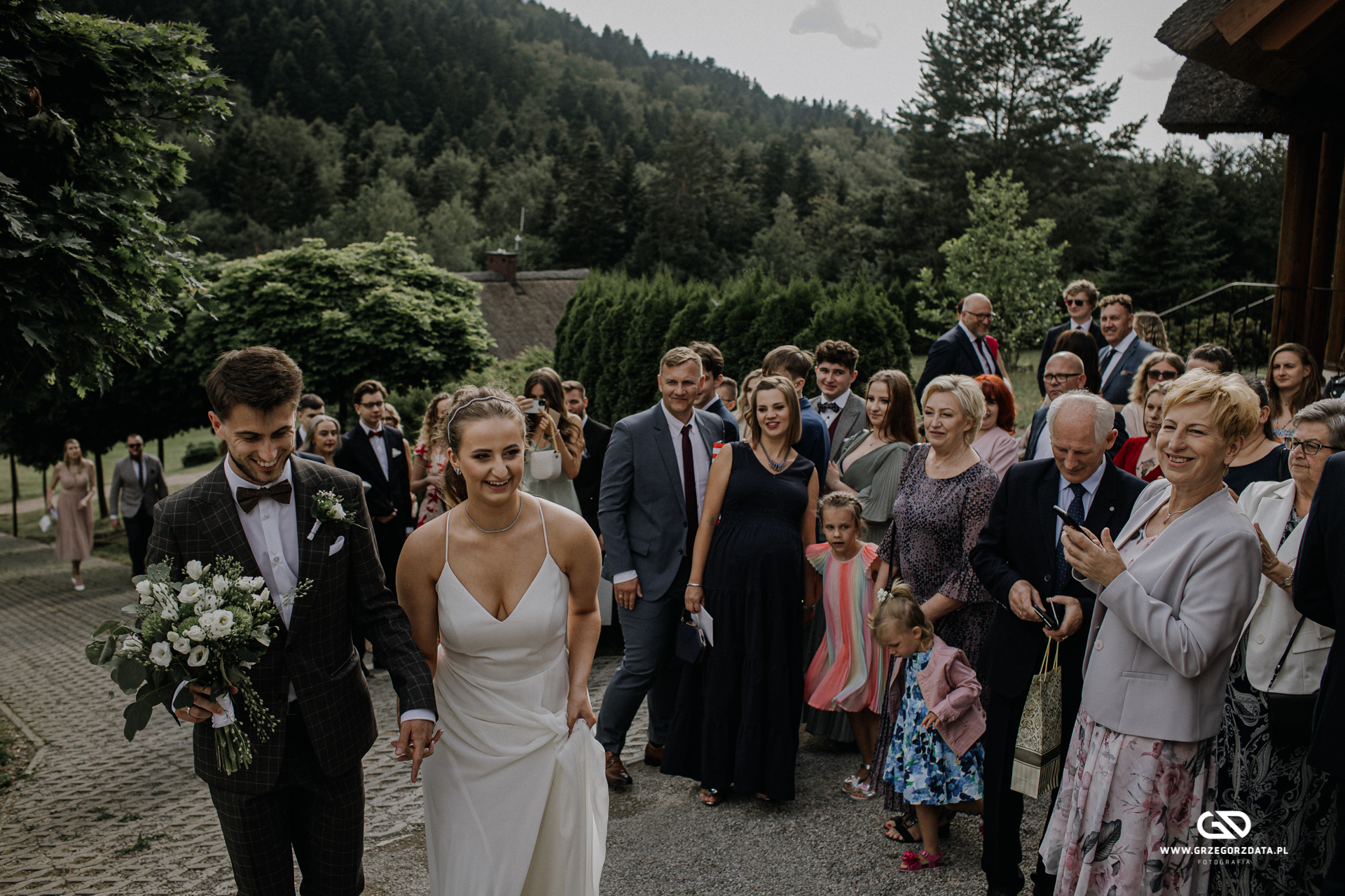 Ślub Zuzanny i Mikołaja odbywał się w Krośnie, a przyjęcie weselne w kameralnym Uroczysku w Czarnorzekach. Kościół okazał się wyjątkowo fotogeniczny, a atmosfera bardzo… przyziemna! W dobrym tego słowa znaczeniu. Obyło się bez sztywnej atmosfery, a z dużą dawką empatii ze strony duchownych.