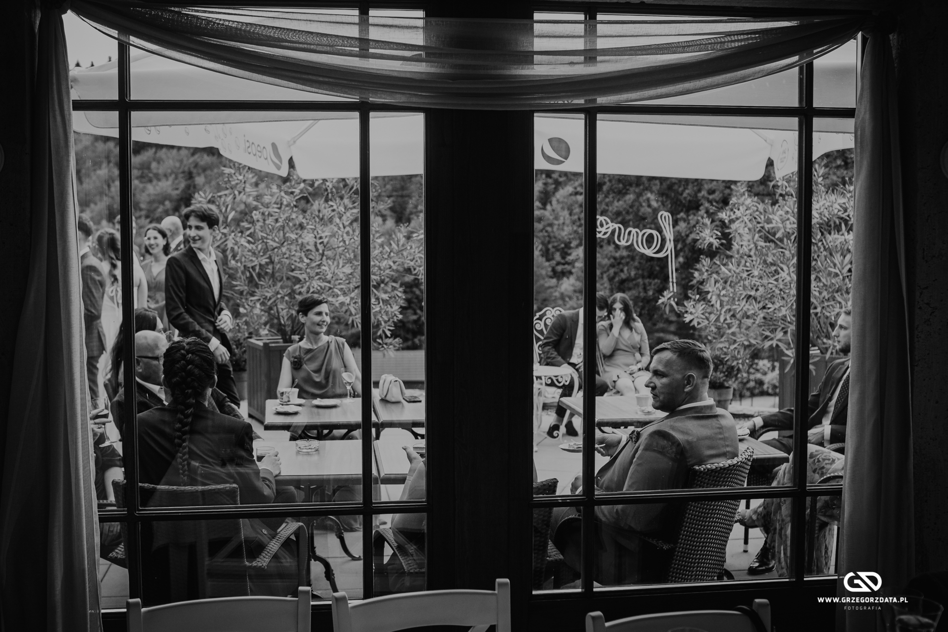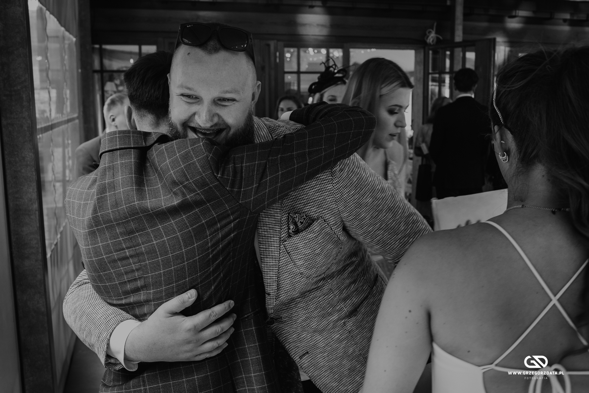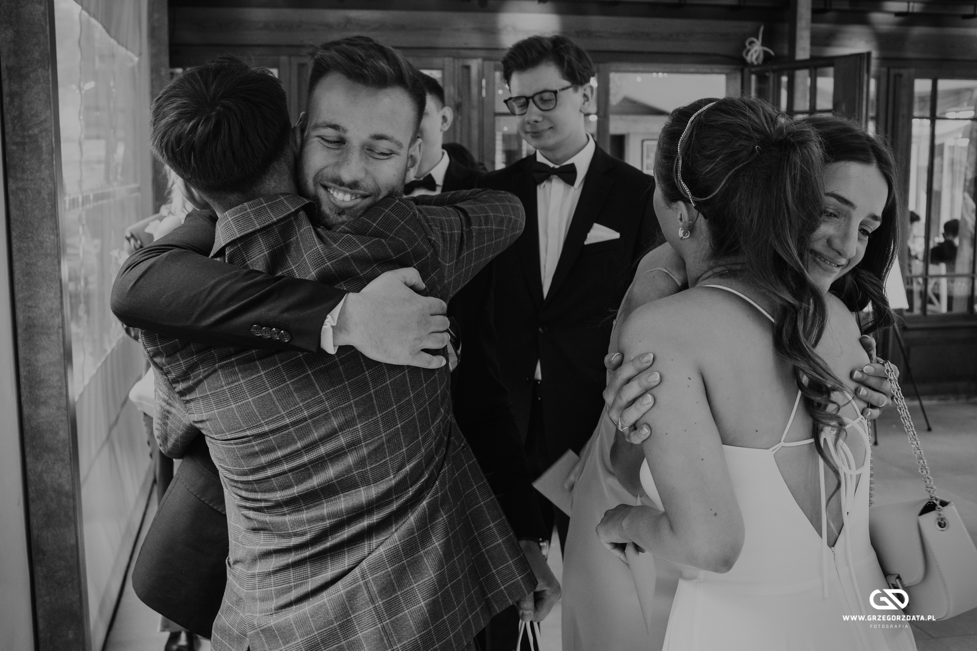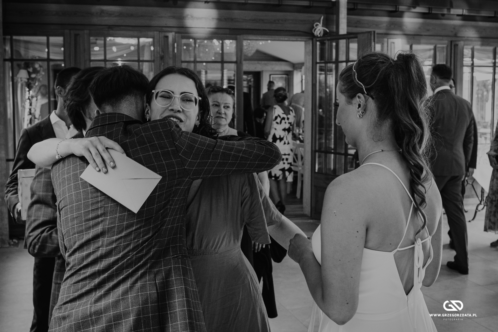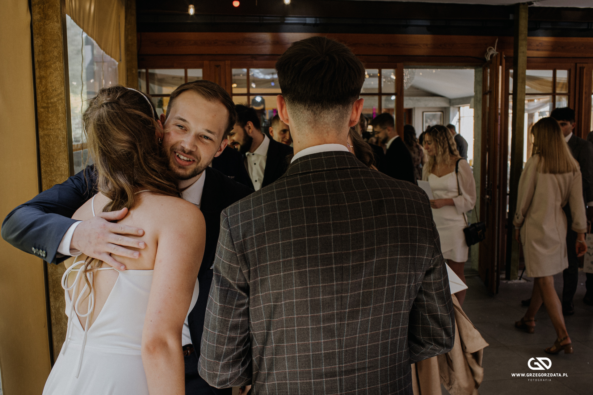 Młodzi spotkali się chwilę wcześniej, w Uroczysku, gdzie później świętowaliśmy. Tzw. First look miał miejsce w otoczeniu zieleni, pod kilkusetletnim dębem. Bez kamer, świadków, niepotrzebnego tej chwili blichtru. Było intymnie, a więc i szczególnie prawdziwie. Starałem się nie wchodzić w ten moment, a jedynie być jego niezauważalnym rejestratorem.