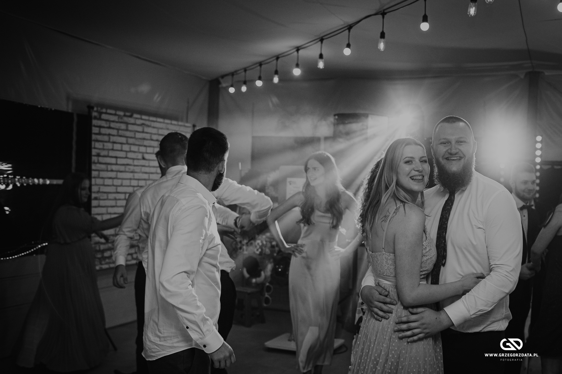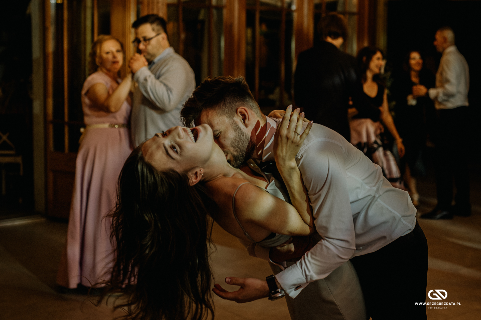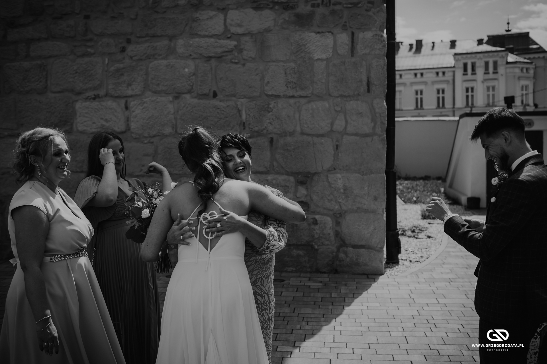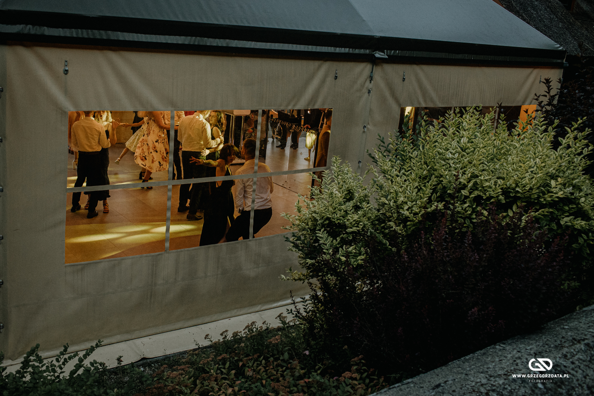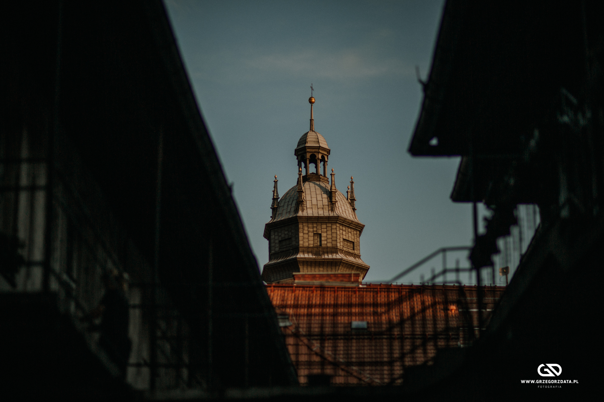 Następnie przejechaliśmy na przyjęcie weselne w gronie najbliższych, które odbyło się w restauracji Pół na Pół, zlokalizowanej tuż przy tarnowskim rynku. Bliskość zabytkowych kamienic i czerwona cegła w środku nadała imprezie bardzo luźnego, rodzinnego charakteru. W takich okolicznościach każdy miał śmiałość wzruszać się, tańczyć i cieszyć szczęściem młodych prawie do białego świtu! Sam reportaż obejmował życzenia, pierwszy taniec, zdjęcia grupowe – wykonaliśmy również kilka zdjęć plenerowych aby zachować emocje z dnia ślubu. Plener ślubny Tarnów został wykonany w innym terminie.