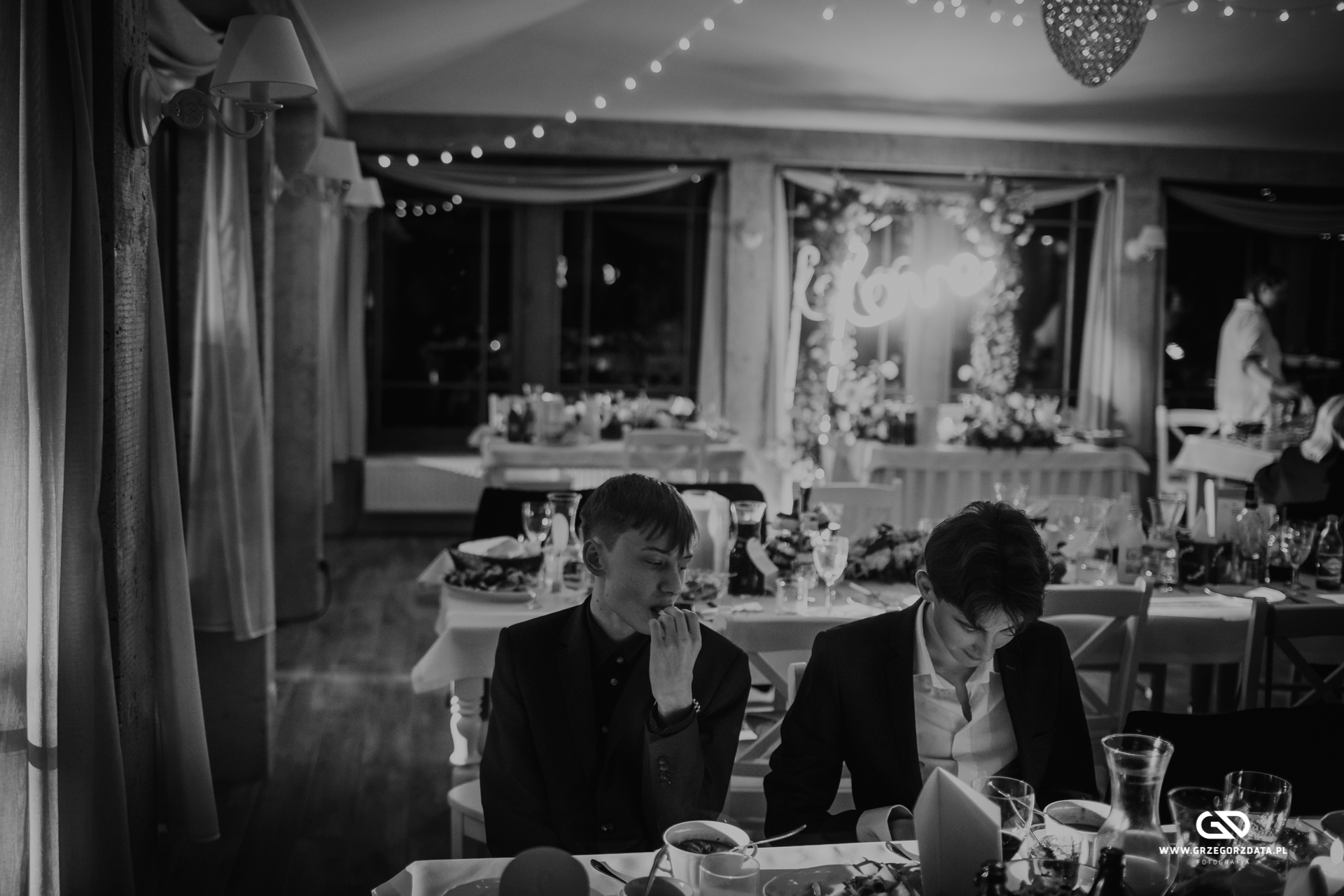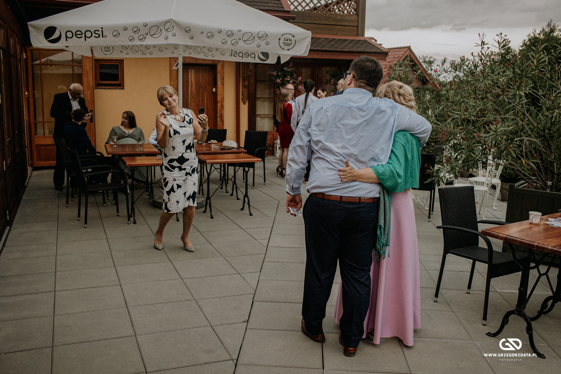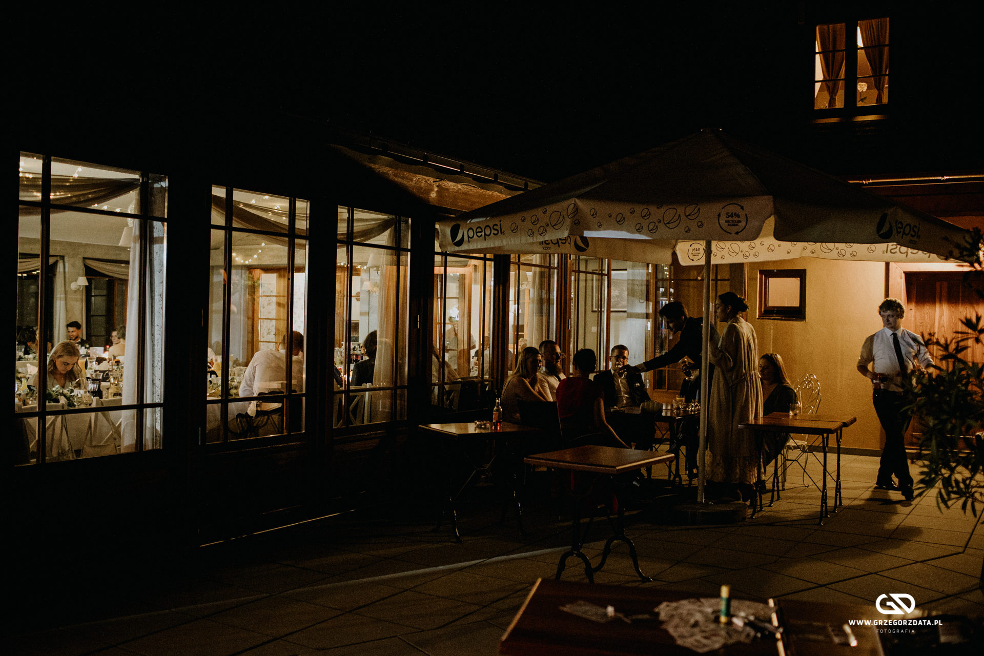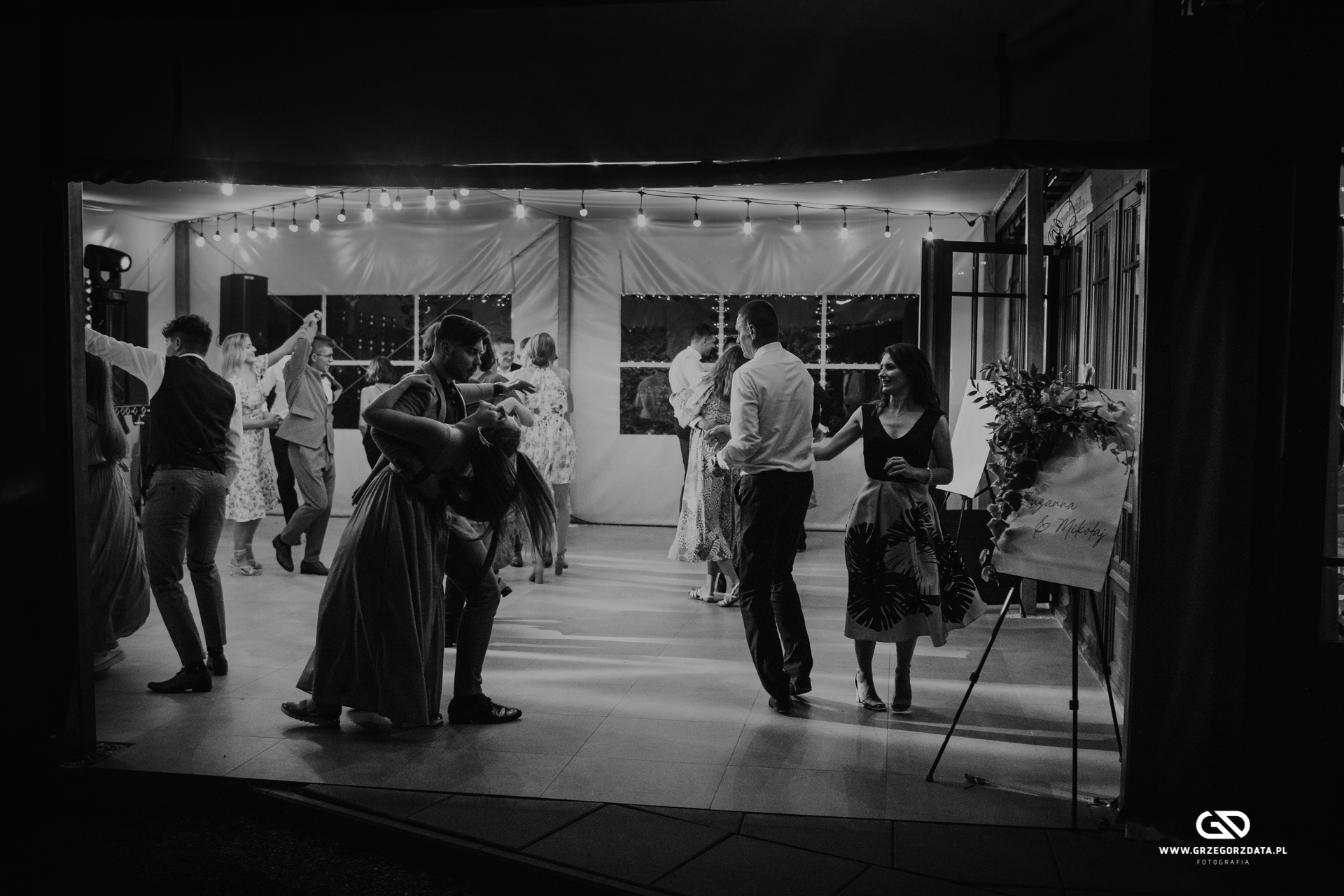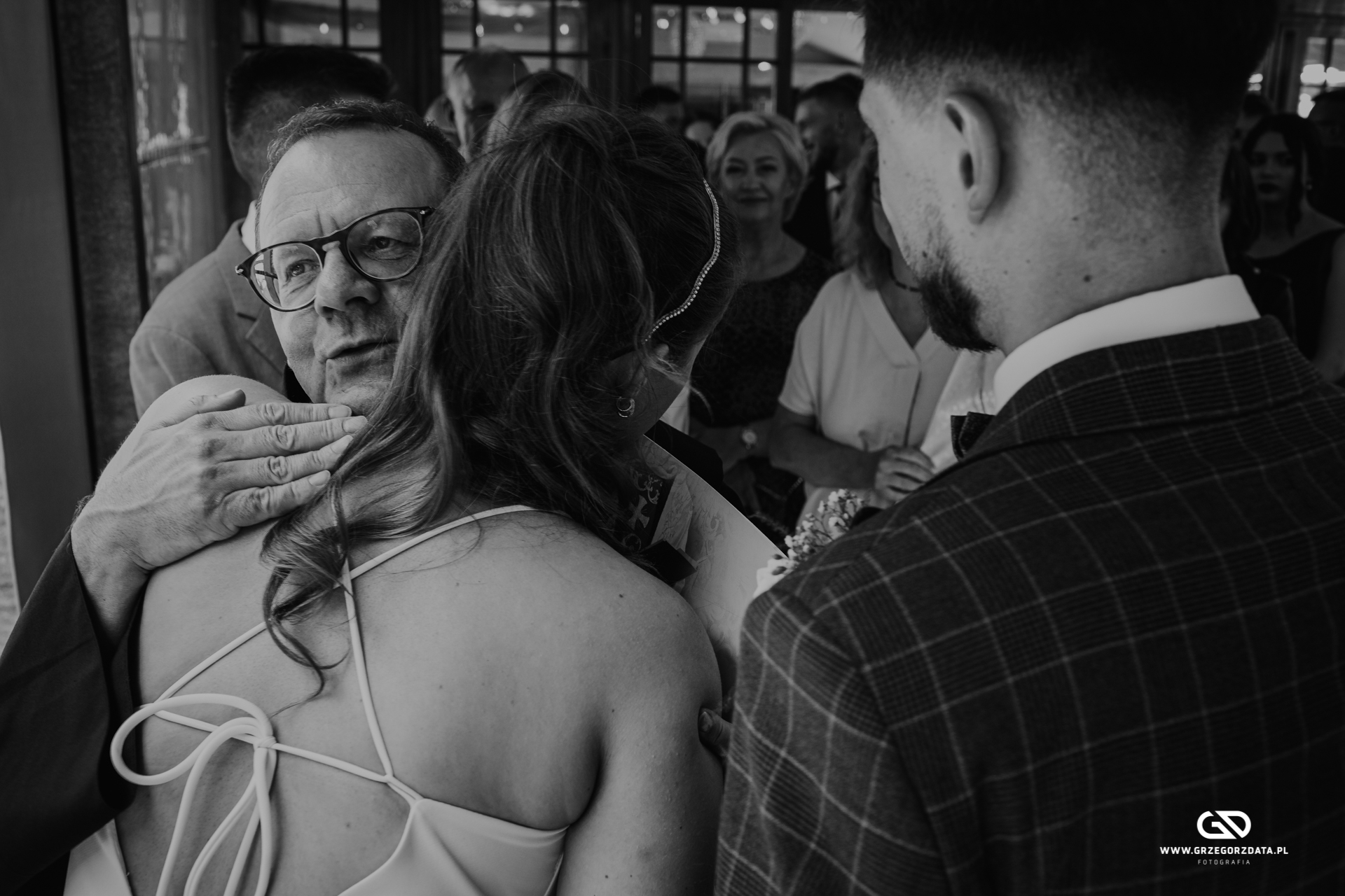 Następnie przejechaliśmy na przyjęcie weselne w gronie najbliższych, które odbyło się w restauracji Pół na Pół, zlokalizowanej tuż przy tarnowskim rynku. Bliskość zabytkowych kamienic i czerwona cegła w środku nadała imprezie bardzo luźnego, rodzinnego charakteru. W takich okolicznościach każdy miał śmiałość wzruszać się, tańczyć i cieszyć szczęściem młodych prawie do białego świtu! Sam reportaż obejmował życzenia, pierwszy taniec, zdjęcia grupowe – wykonaliśmy również kilka zdjęć plenerowych aby zachować emocje z dnia ślubu. Plener ślubny Tarnów został wykonany w innym terminie.