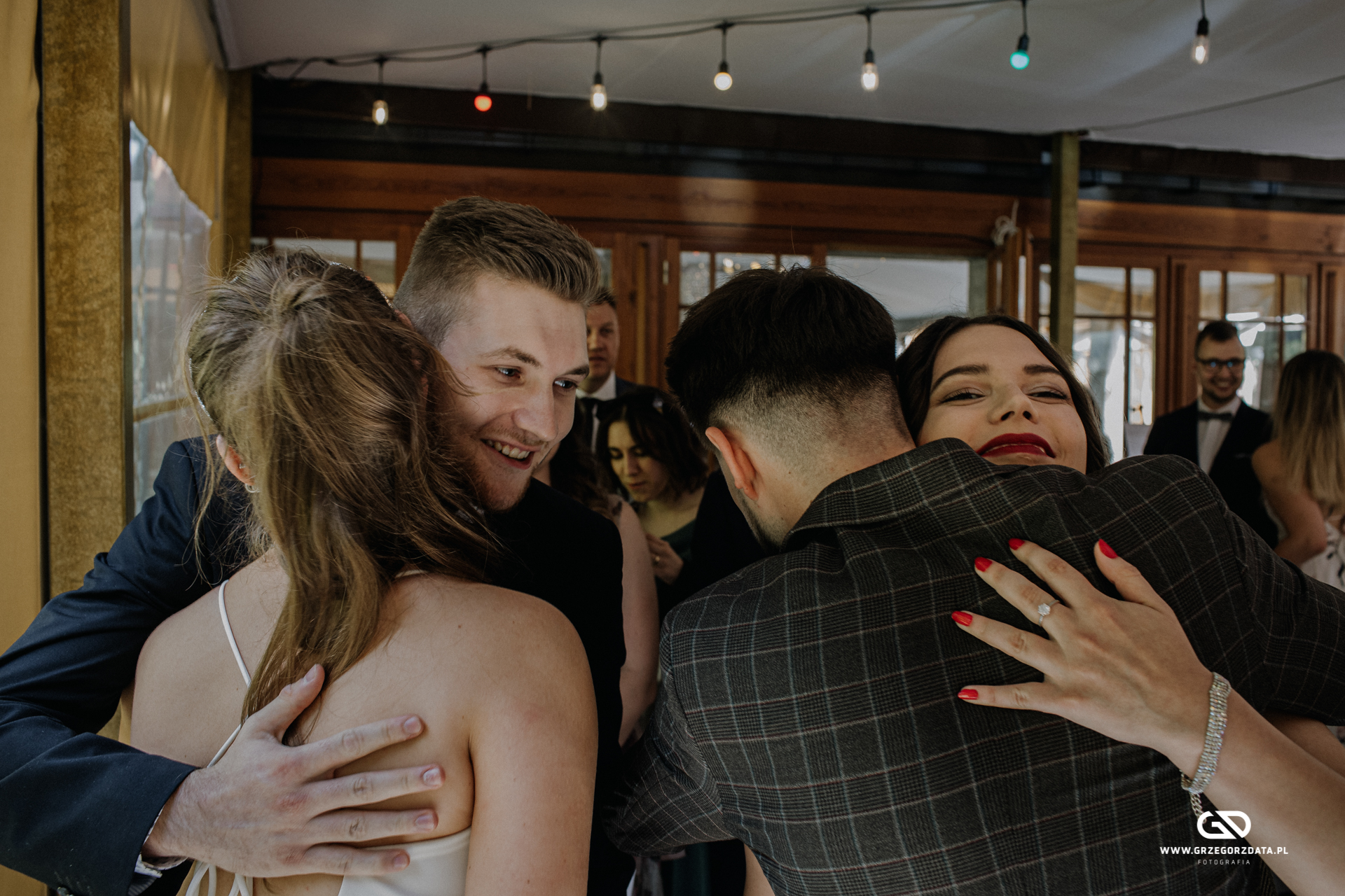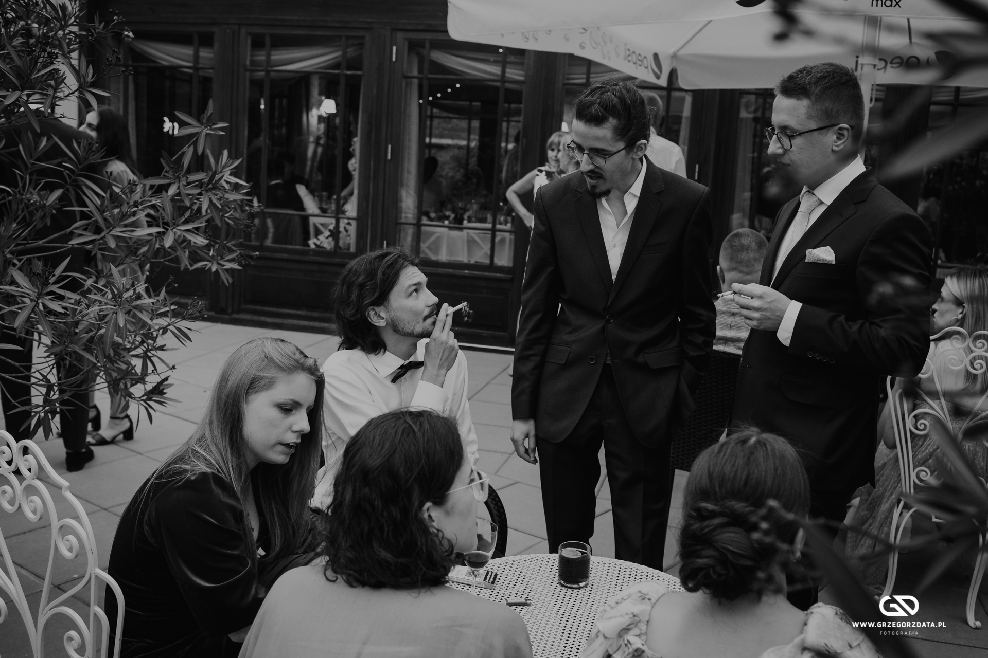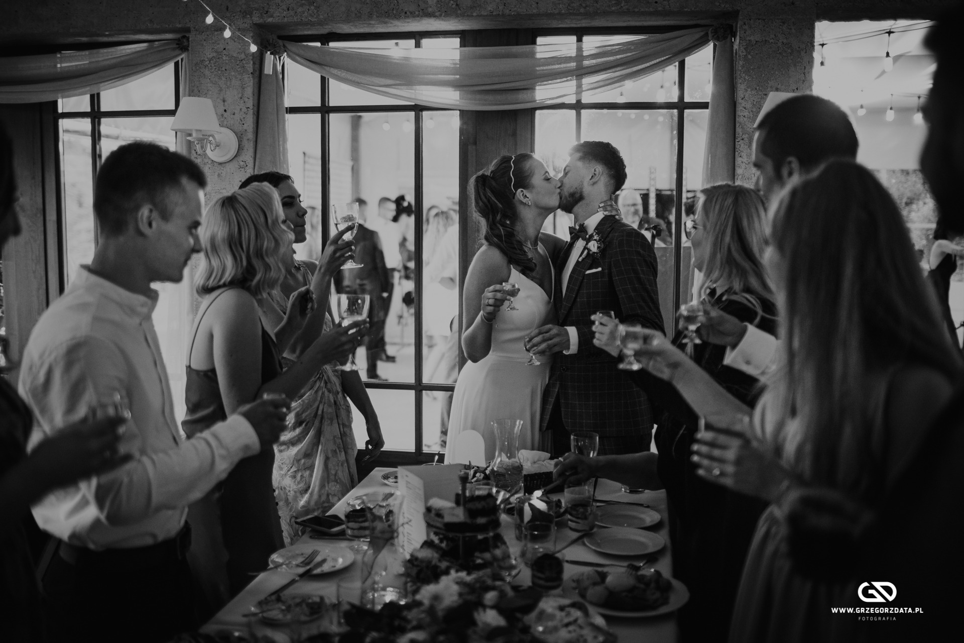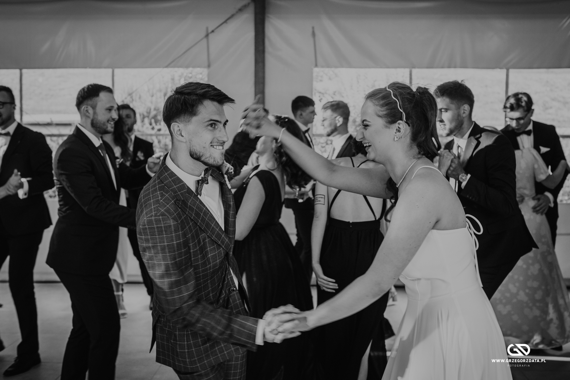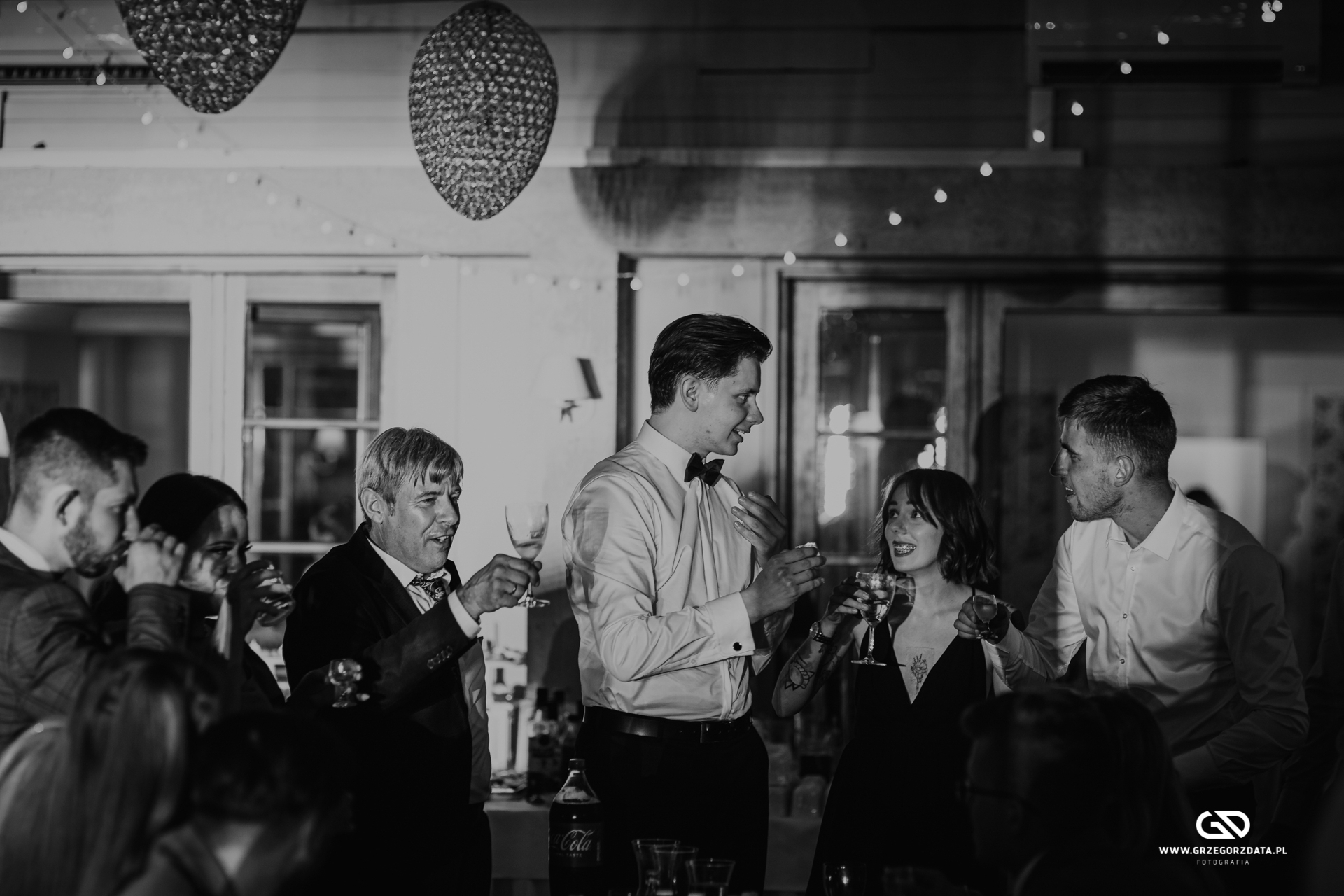 Następnie przejechaliśmy na przyjęcie weselne w gronie najbliższych, które odbyło się w restauracji Pół na Pół, zlokalizowanej tuż przy tarnowskim rynku. Bliskość zabytkowych kamienic i czerwona cegła w środku nadała imprezie bardzo luźnego, rodzinnego charakteru. W takich okolicznościach każdy miał śmiałość wzruszać się, tańczyć i cieszyć szczęściem młodych prawie do białego świtu! Sam reportaż obejmował życzenia, pierwszy taniec, zdjęcia grupowe – wykonaliśmy również kilka zdjęć plenerowych aby zachować emocje z dnia ślubu. Plener ślubny Tarnów został wykonany w innym terminie.