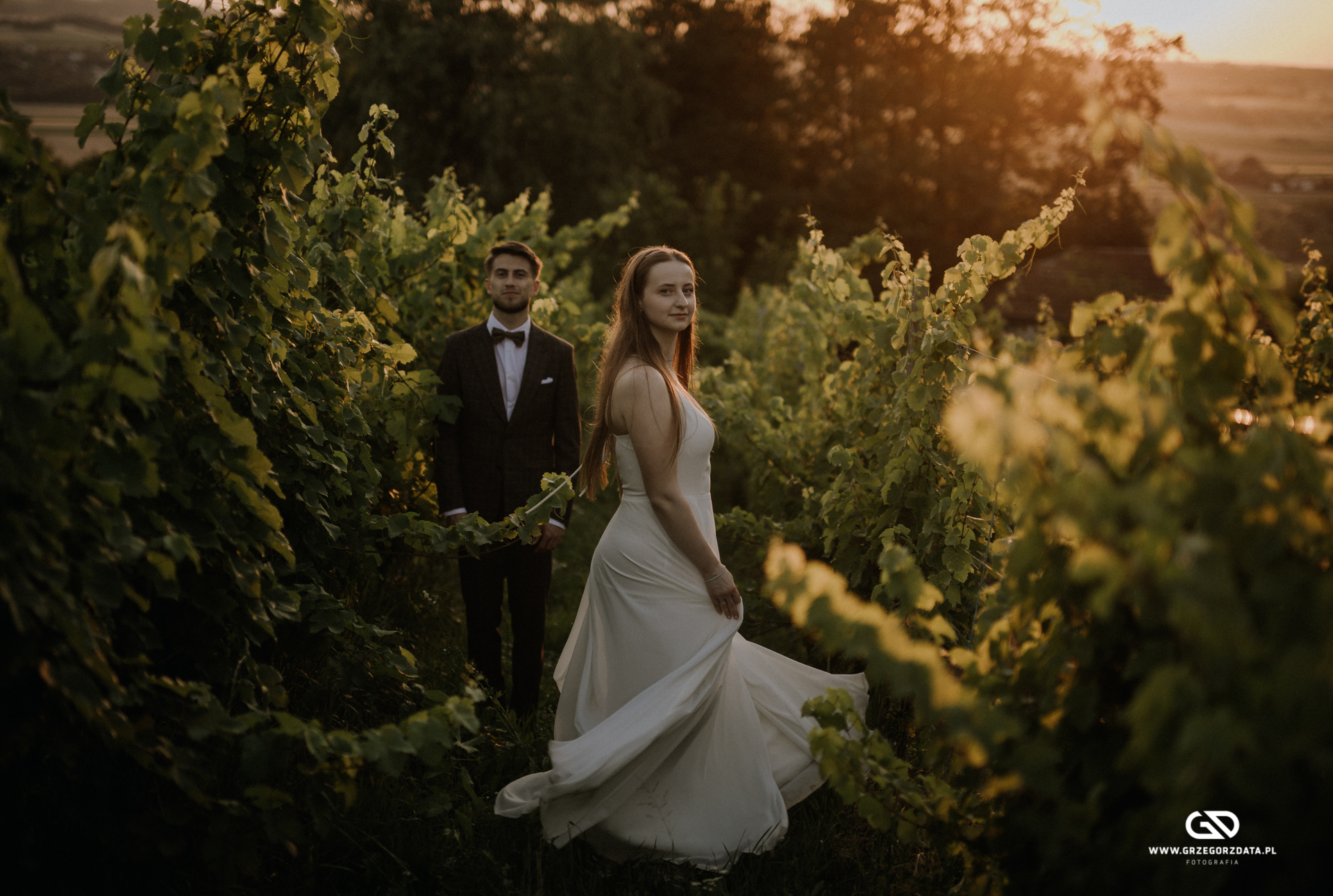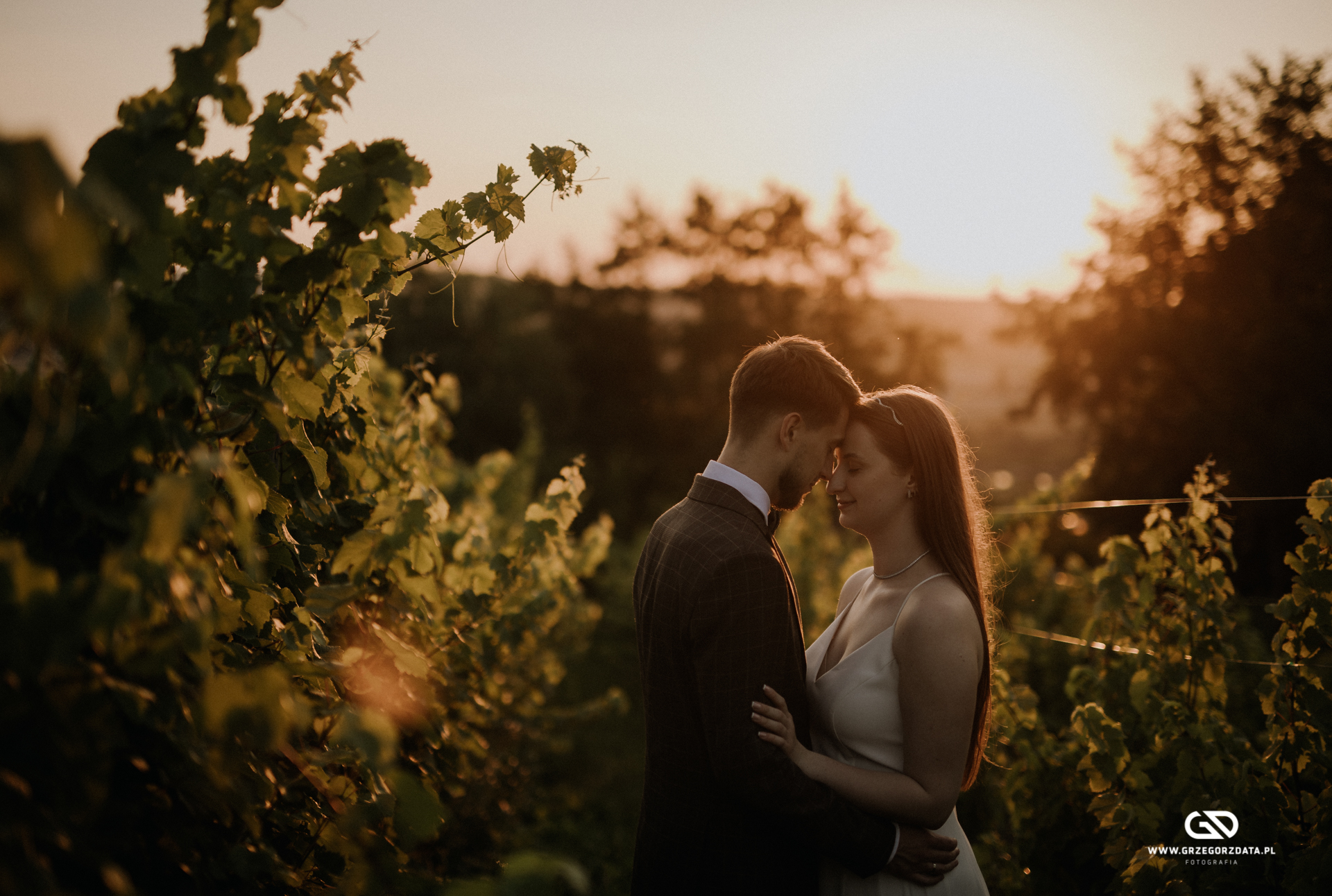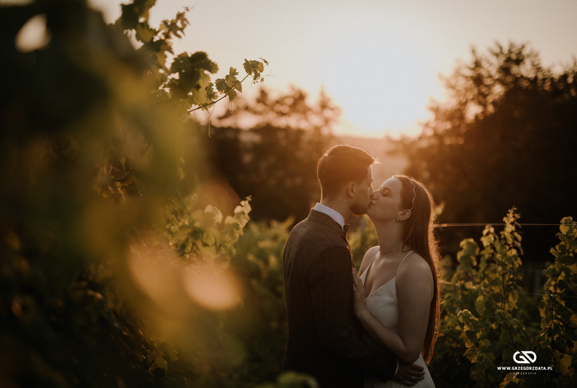 Wesele to jednak nie był koniec mojej przygody z Zuzanną i Mikołajem, bo kilkanaście dni później wyskoczyliśmy do romantycznej winnicy na kolejną sesję. Zachodzące słońce, wspaniałe otoczenie, pełna miłości para – trudno o bardziej idealne warunki do pracy!
