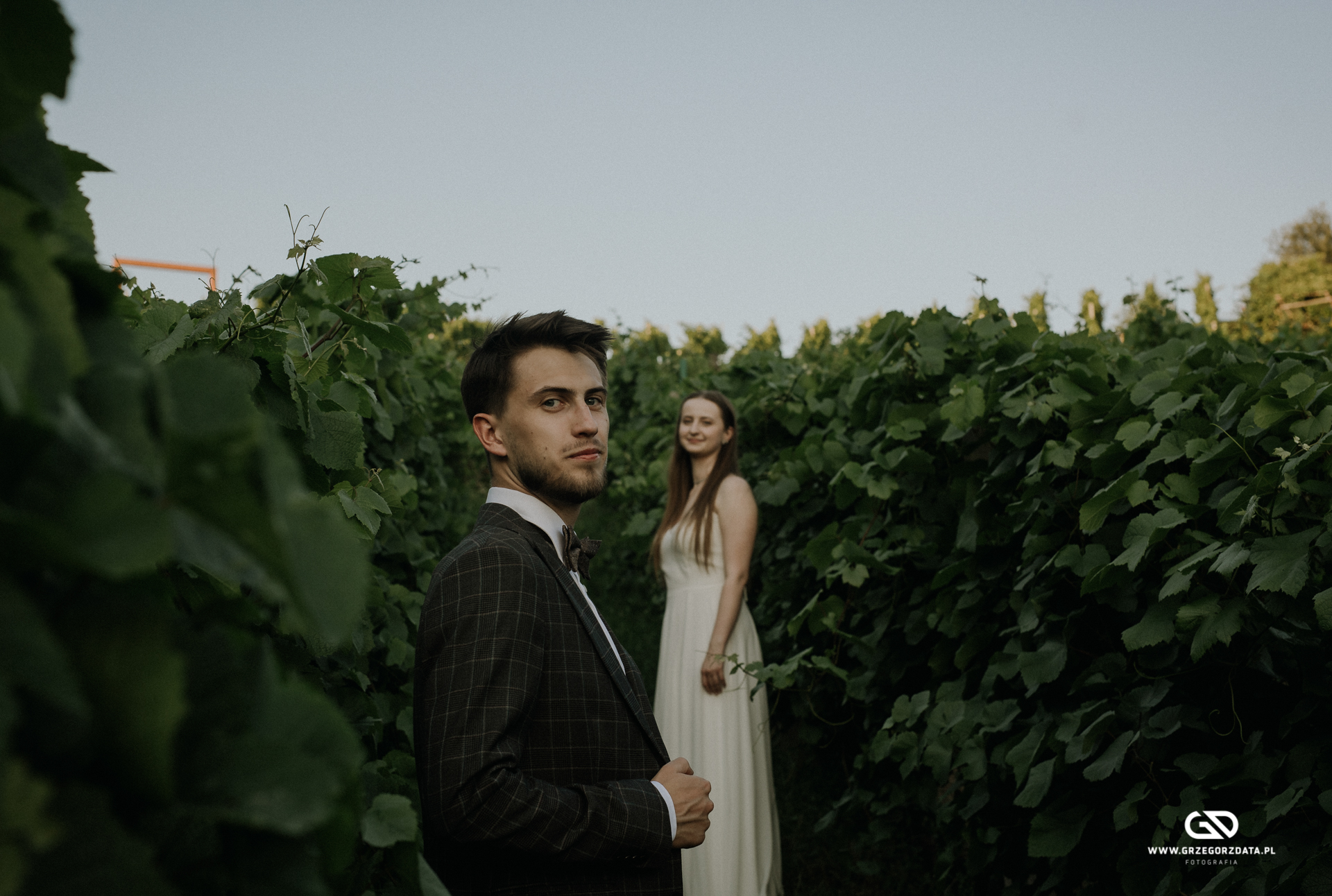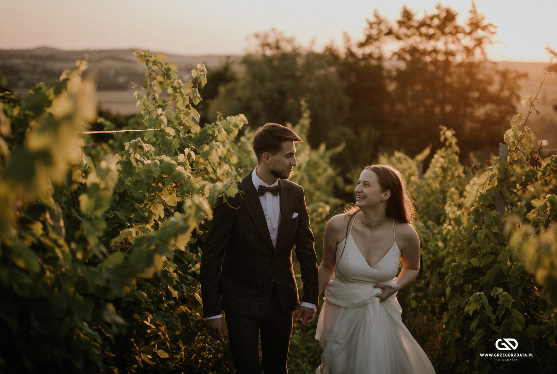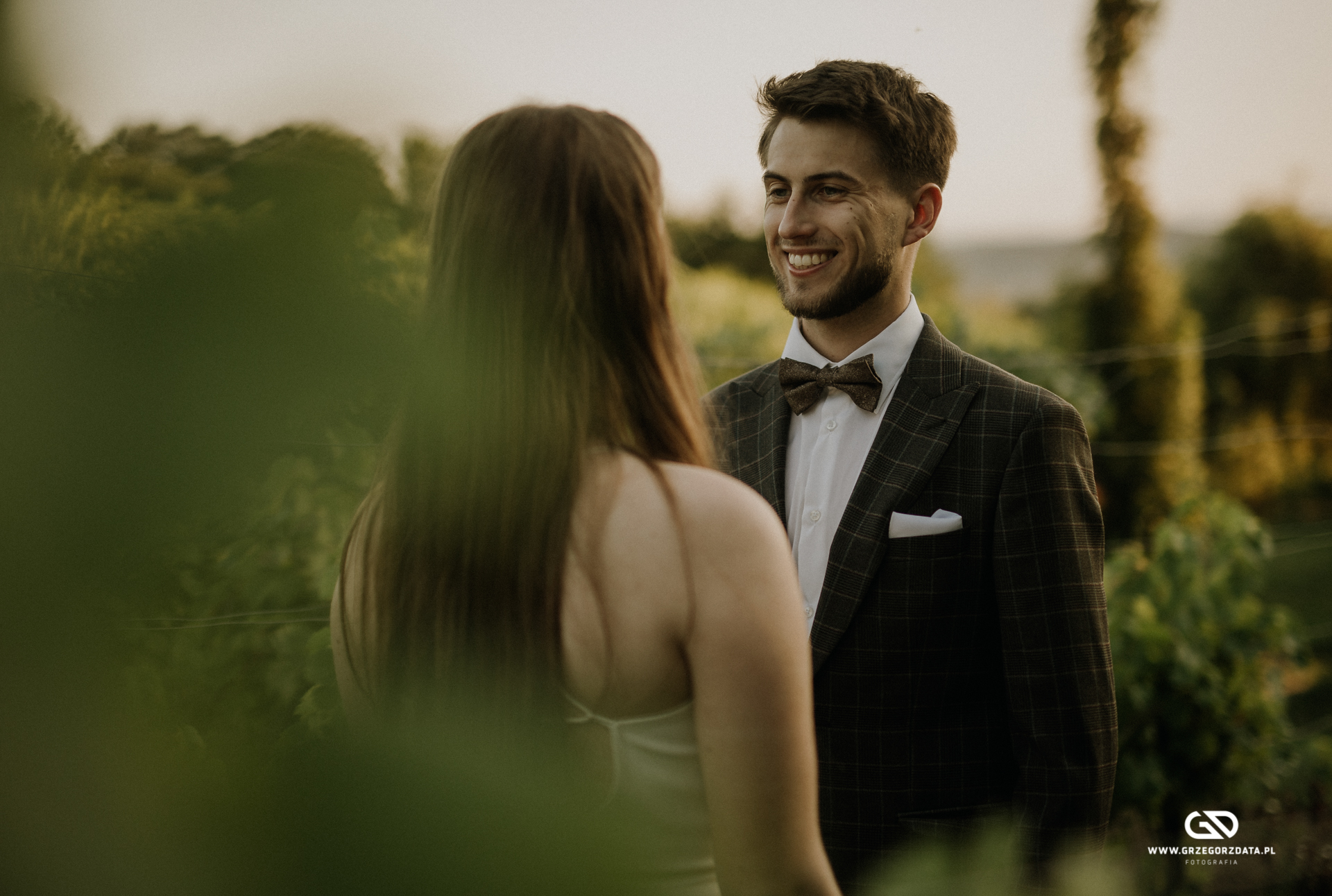 Wesele to jednak nie był koniec mojej przygody z Zuzanną i Mikołajem, bo kilkanaście dni później wyskoczyliśmy do romantycznej winnicy na kolejną sesję. Zachodzące słońce, wspaniałe otoczenie, pełna miłości para – trudno o bardziej idealne warunki do pracy!