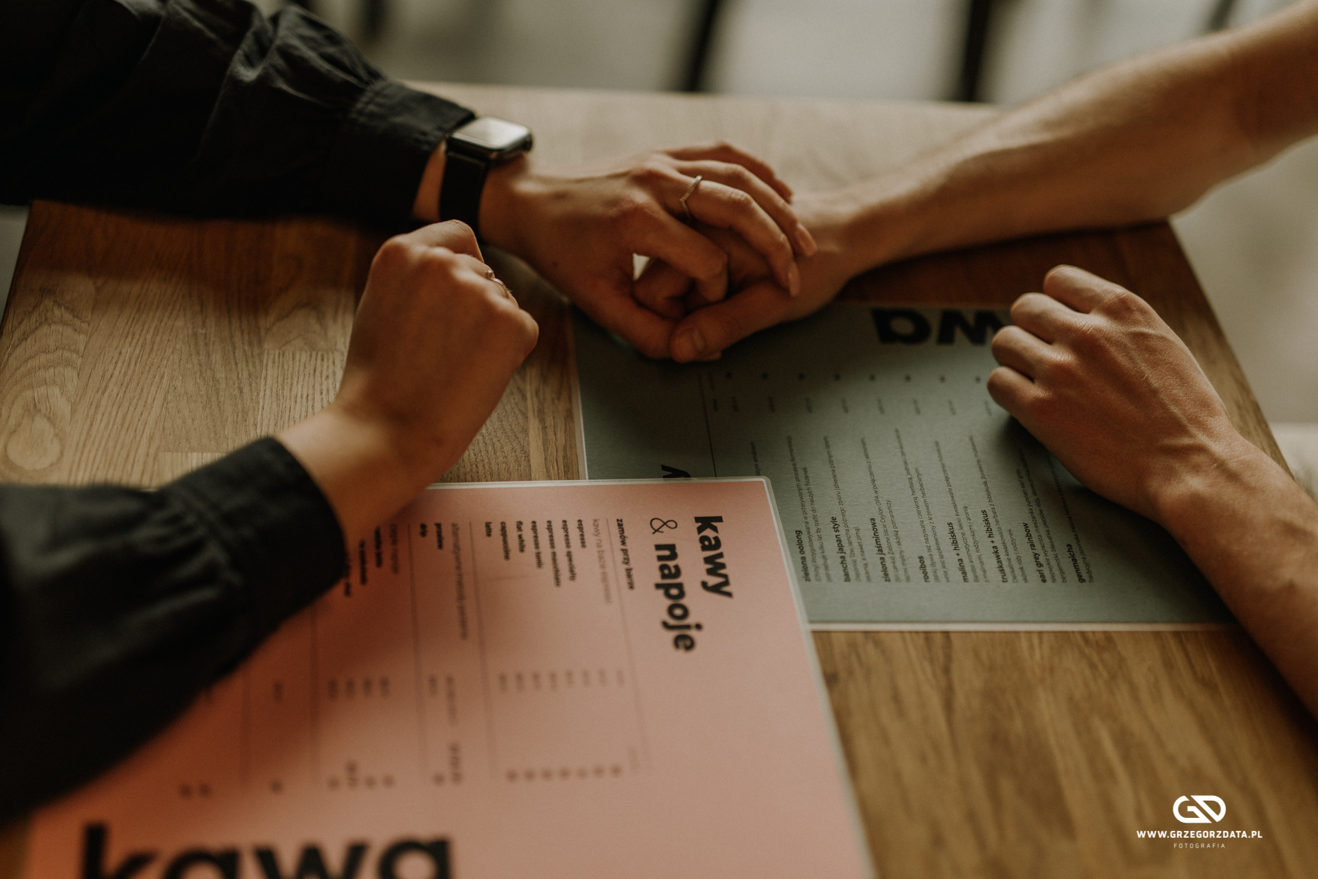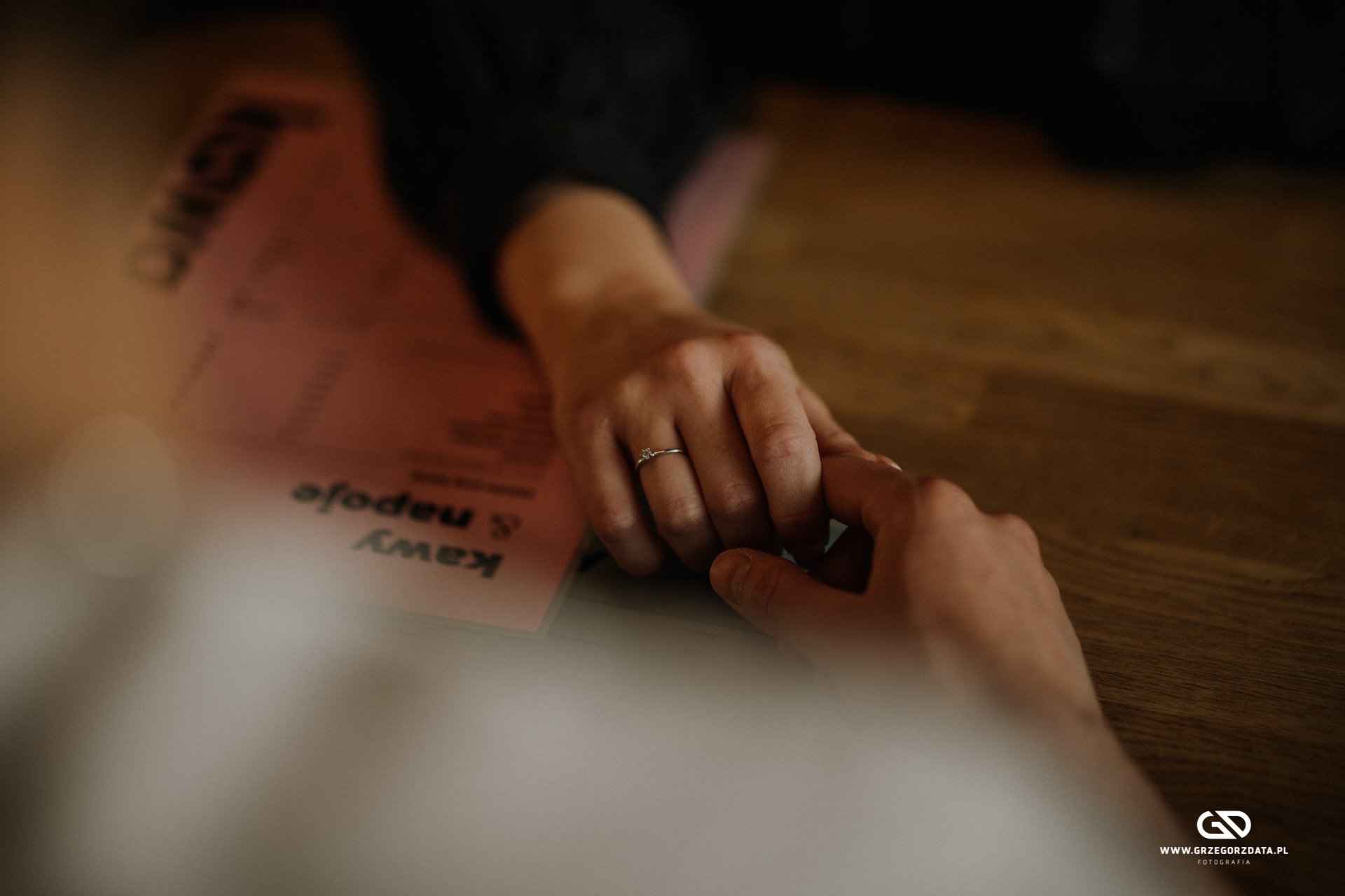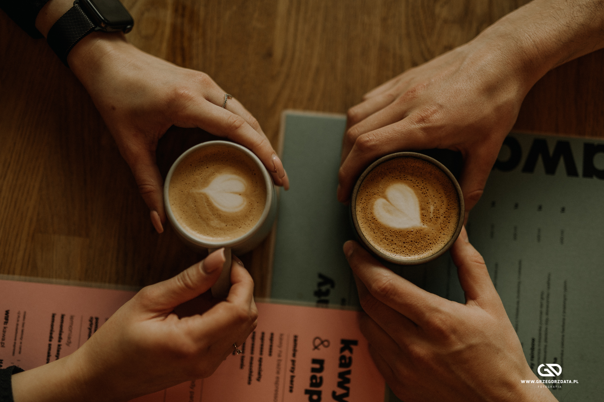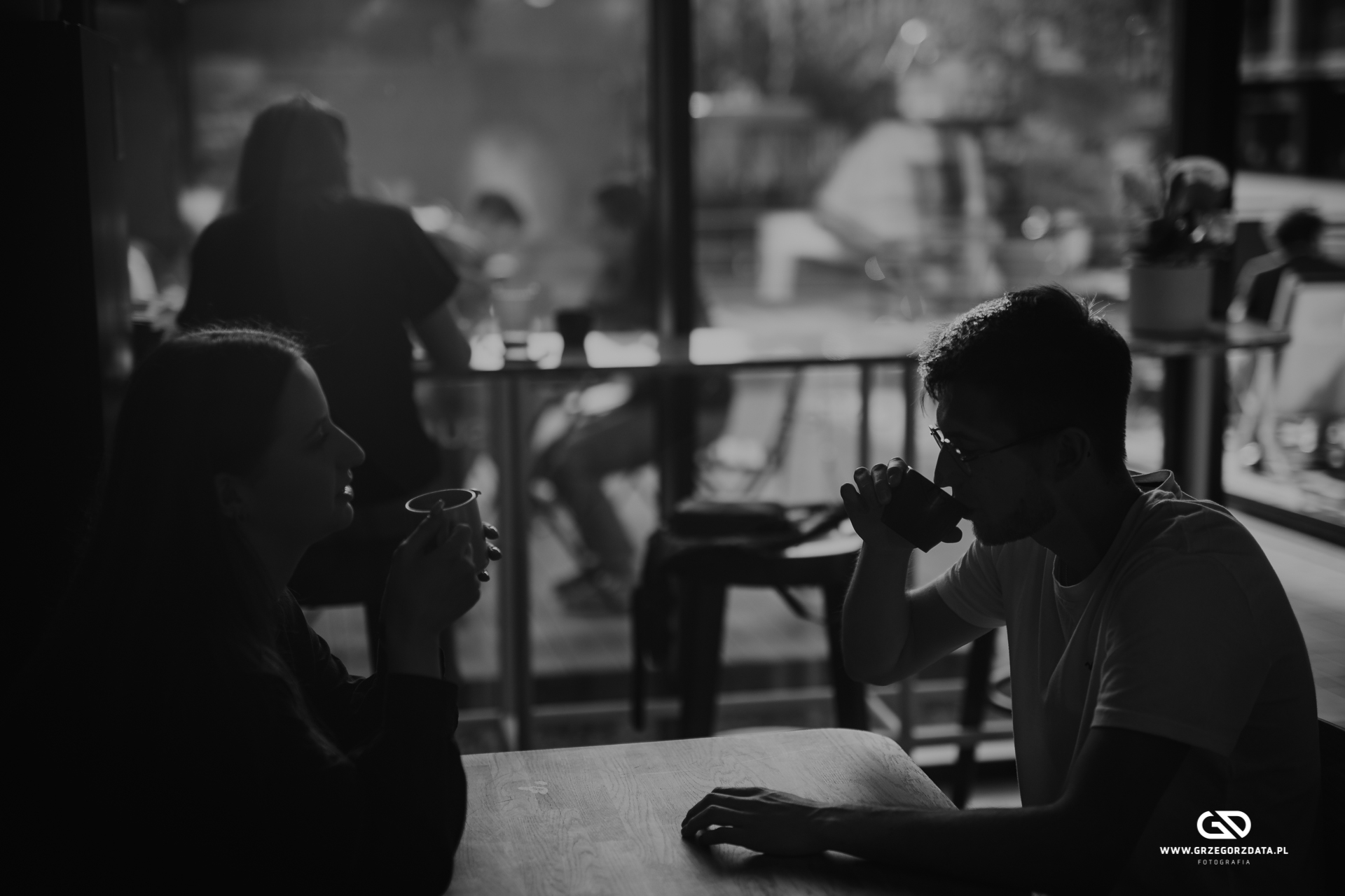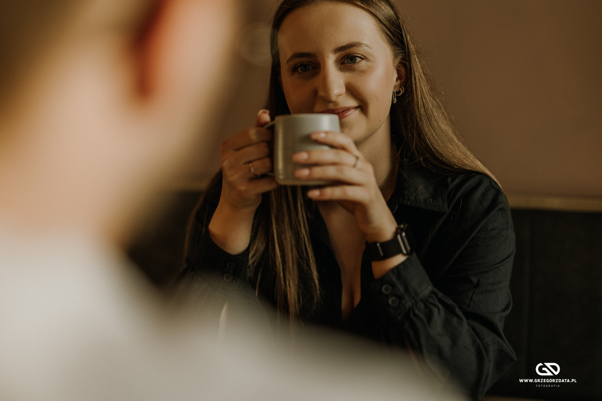 Przyjazna, a także klimatyczna aura tego miejsca, ożywiła wyobraźnie. Zachwycający zapach kawowych ziaren, bliskość i czułość, to w takiej scenerii powstały pierwsze zdjęcia sesji narzeczeńskiej.