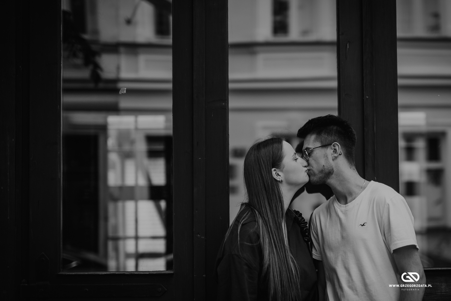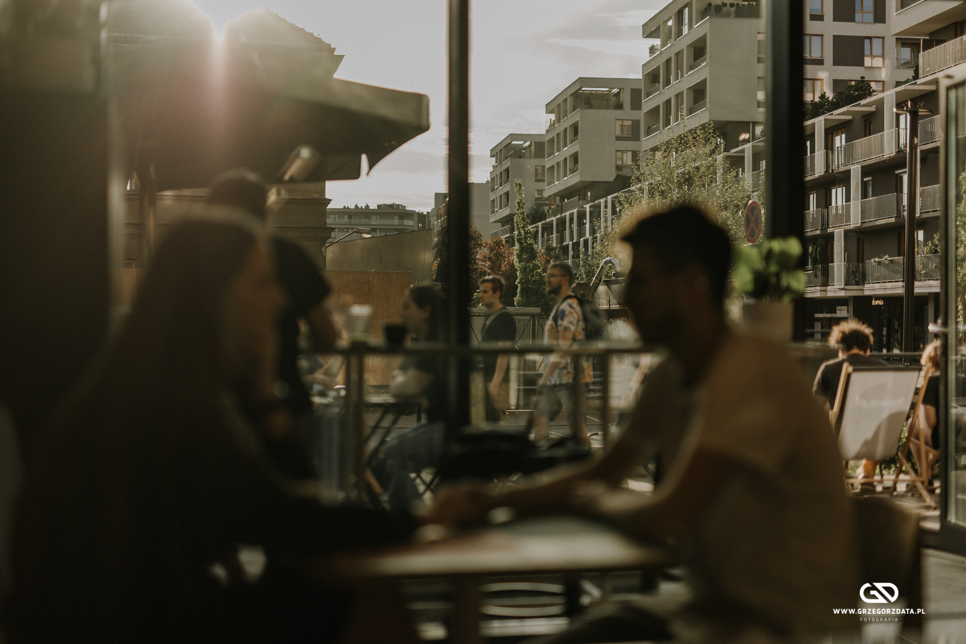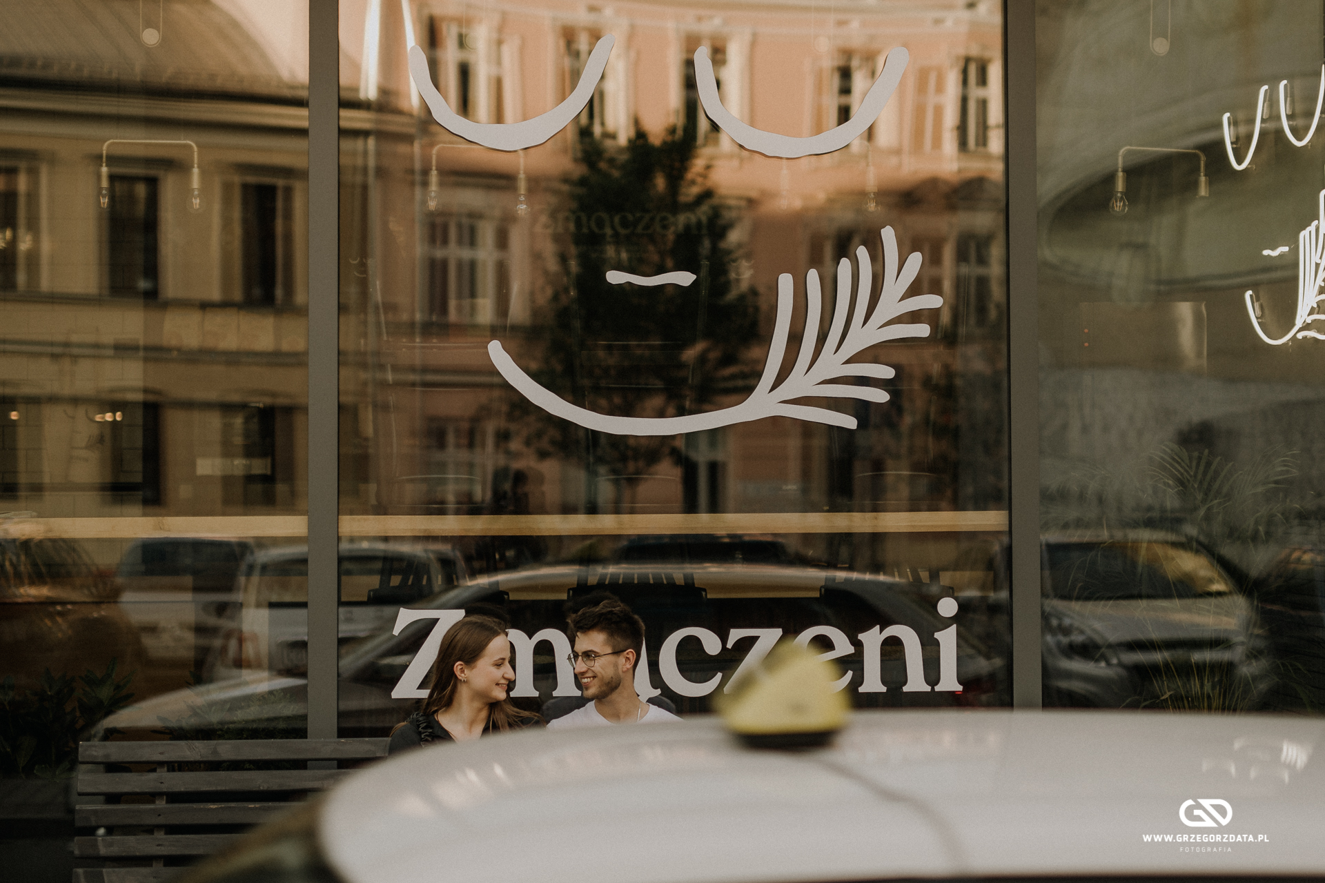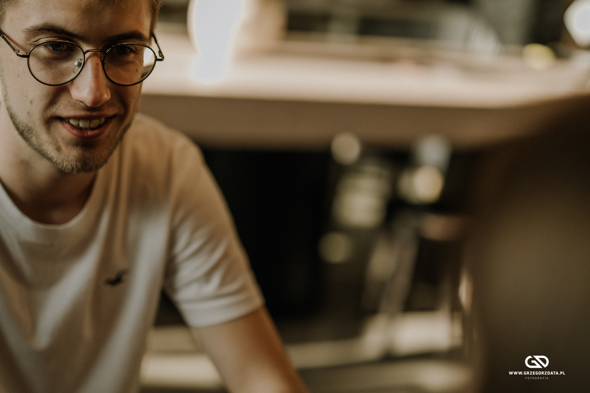 Nasza wspólna przygoda rozpoczęła się od wymiany kilku szybkich maili. Wzorowy kontakt zaowocował współpracą. Spotkaliśmy się podczas sesji w kawa – Romanowicza w Krakowie. To wyjątkowa kawiarnia, obok której trudno przejść obojętnie i ulubione miejsce fotografowanej pary, czyli pozytywnie zakręconych, a także pełnych nieszablonowych pomysłów ludzi.