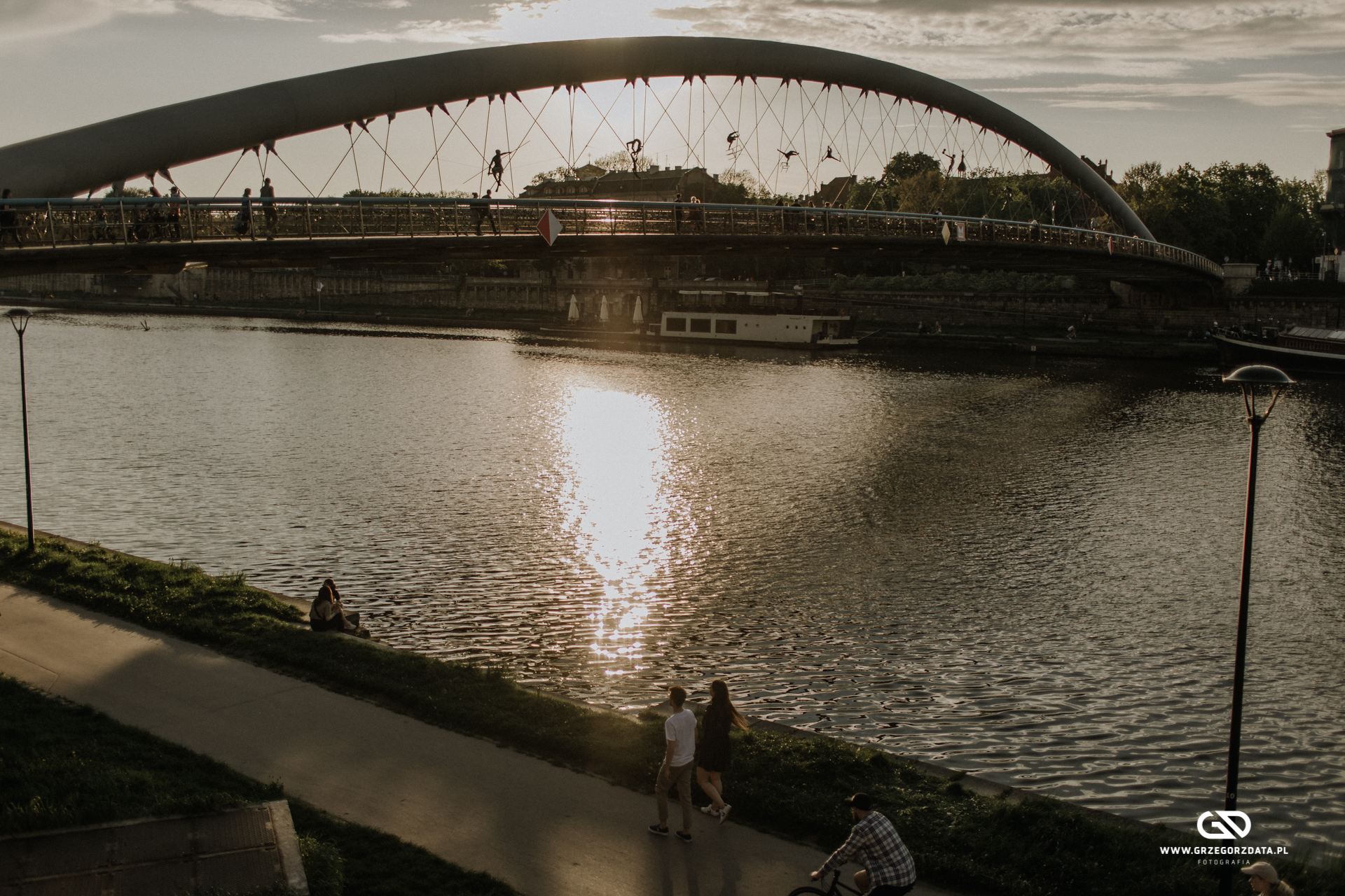 Spacer po kładce Ojca Bernatka skąpanej w magicznym blasku słońca to zdecydowanie jedna z najbardziej romantycznych chwil podczas wykonywania zdjęć. Co było dalej? Ulica Mostowa otworzyła przed nami efektowne, fotograficzne możliwości, a ulica Józefa artystyczne – graficzne wrażenia. Podążając ponownie w stronę Kazimierza, odetchnęliśmy na krótką chwilę przy pubie mlecznym wśród starej, nastrojowej zabudowy. Dookoła czuć było klimat tradycyjnego, beztroskiego podwórka, a dzięki radosnej muzyce i cieple zachodzącego słońca po raz kolejny uśmiech pojawił się na naszych twarzach wśród szyldów z tradycją na ulicy Szerokiej (w sercu Kazimierza). Zapraszam do obejrzeniu efektów, fotograf Tarnów, Kraków, Rzeszów cała Polska.